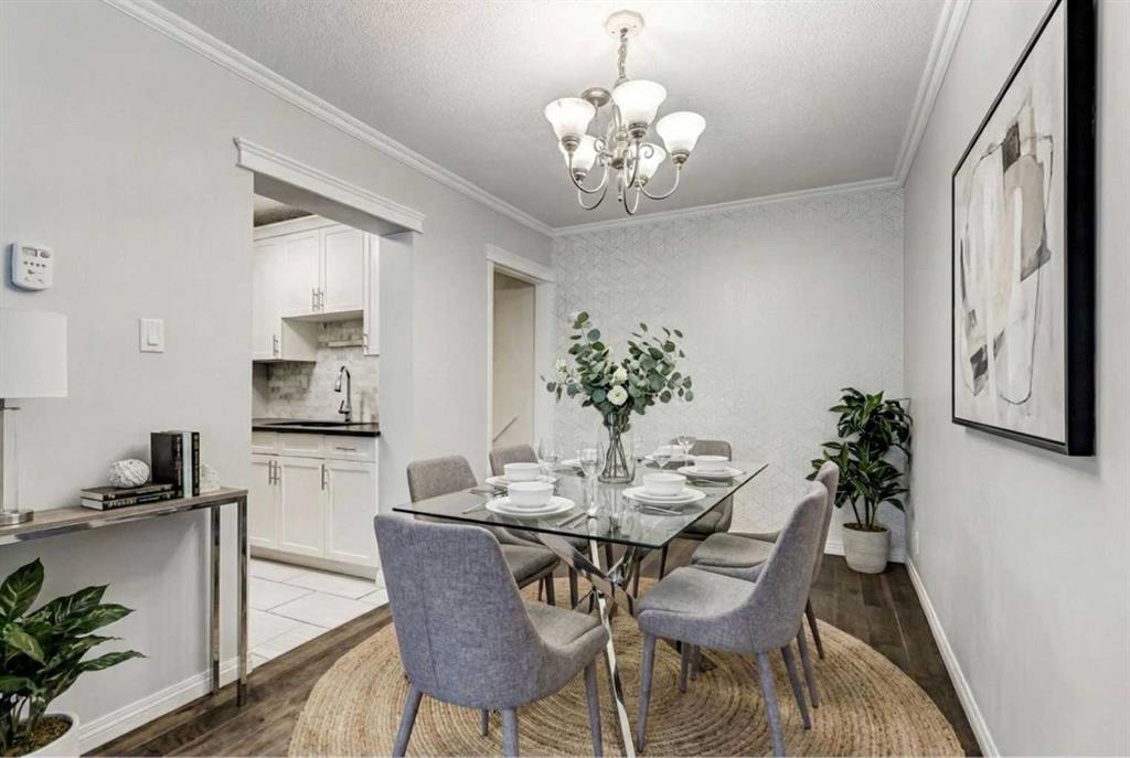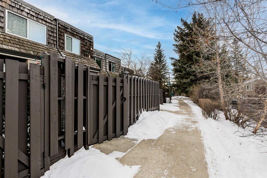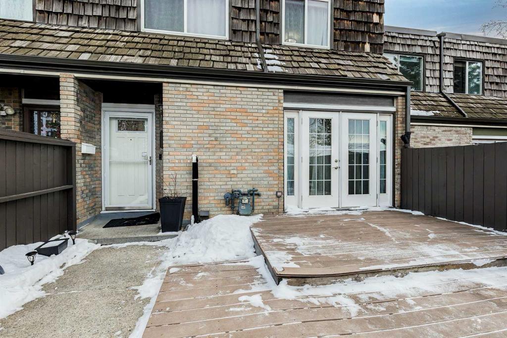OPEN HOUSE Sunday January 11th. Experience the perfect blend of privacy and urban convenience in this stylish townhome located in the highly coveted community of Acadia. Boasting over 1,300 sq. ft. of developed living space, this Highland Estates gem offers a cozy home with various updates just steps from top-tier amenities. The bright, open-concept main level features hardwood flooring and a kitchen complete with sleek quartz countertops, contemporary white cabinetry, stainless steel appliances and a modern tile backsplash. Adjacent is a dedicated dining room with stylish feature wall. The spacious living room flows seamlessly through elegant double French doors to a private, west-facing patio. Fully fenced and framed by mature trees, this sunny retreat with large composite deck is an ideal oasis for relaxing or secured play for kids. The second floor offers a spacious primary suite with a large walk-in closet, a well-appointed second bedroom, and a stylishly updated full bathroom. The finished lower level provides a flexible recreation room, perfect for a home office, gym, or theatre space, alongside a laundry room with ample storage solutions. Enjoy an unbeatable walk score with Heritage LRT Station, grocery stores, and local dining all within walking distance. With quick access to bike paths, recreation centres, and a short commute to downtown Calgary, this home has much to offer. Some photos have been virtually staged.