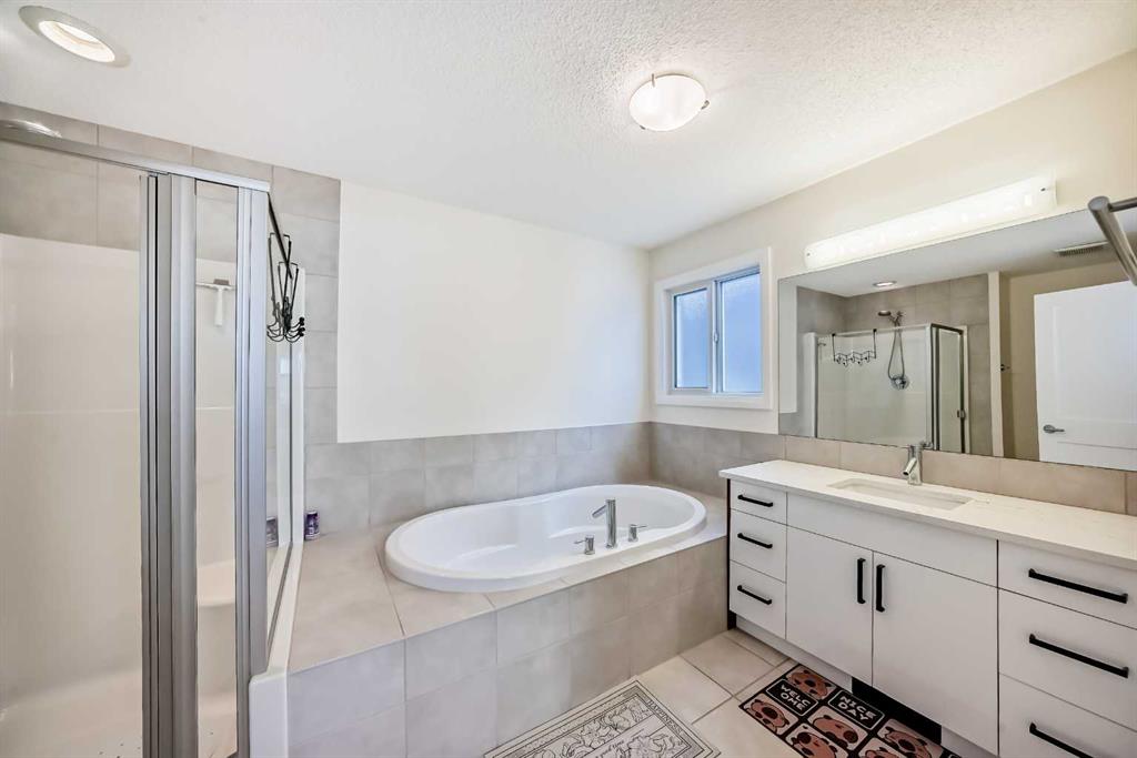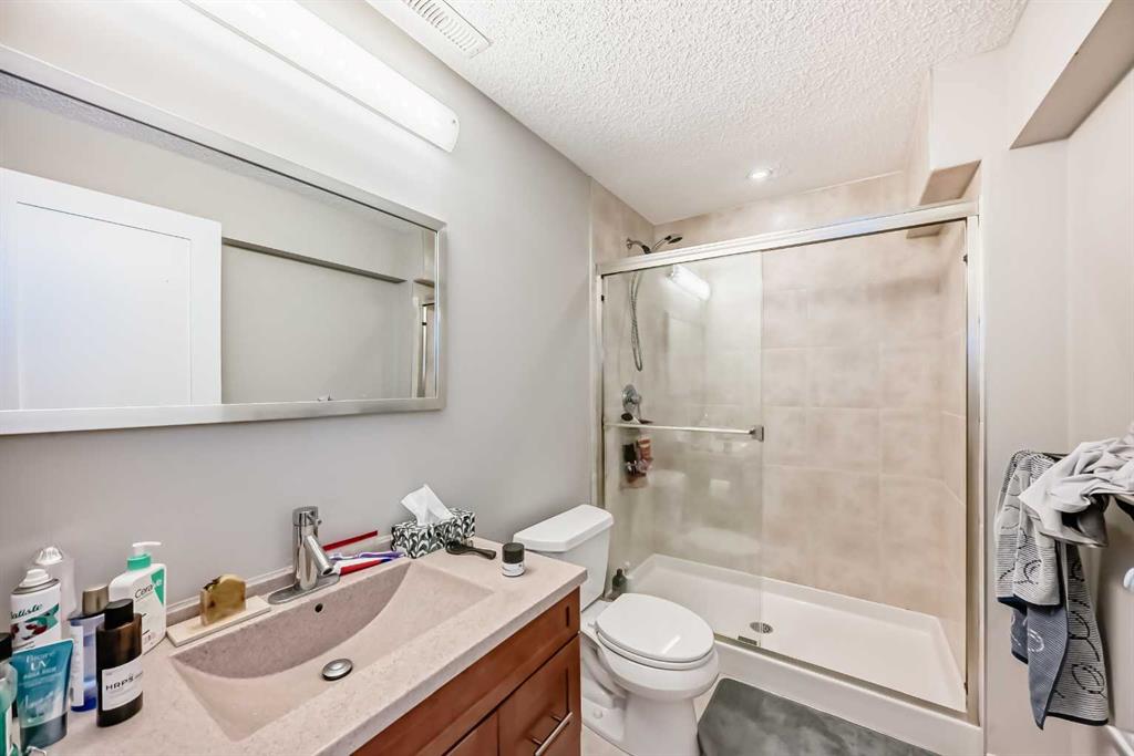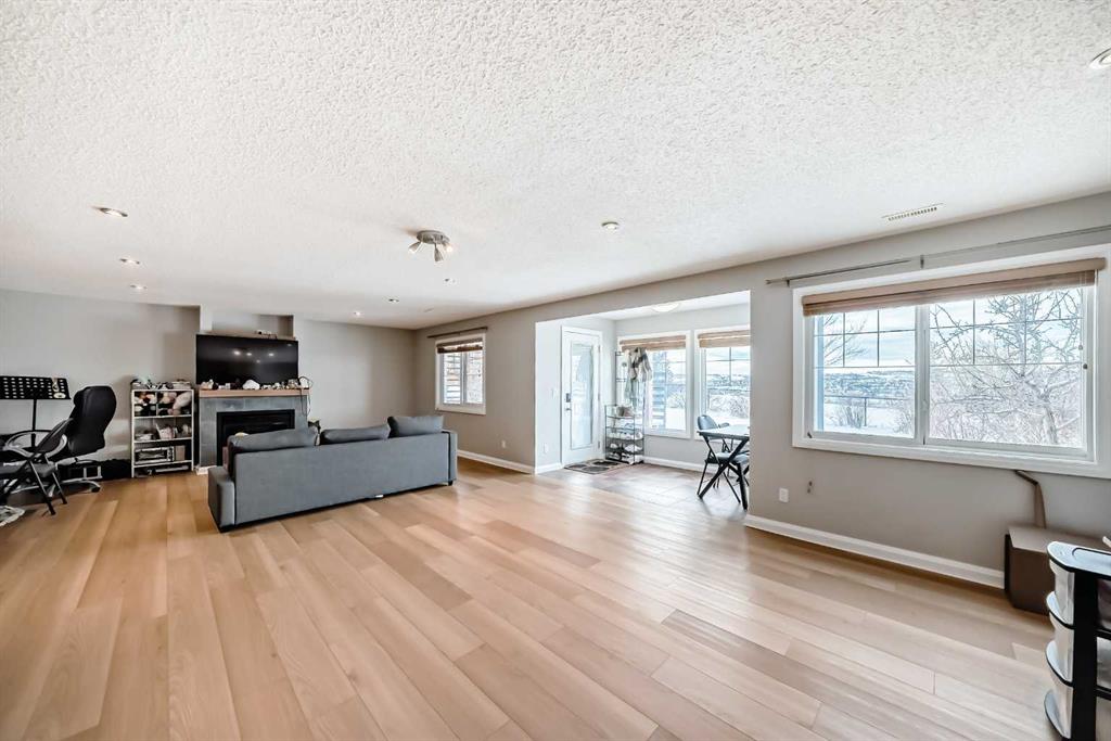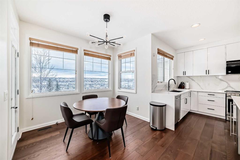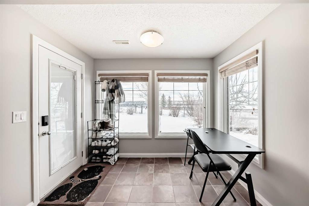 Features include two gas fireplaces, durable stucco exterior, new door locks and handles, water softener, and effortless access to Stoney Trail for commuting.