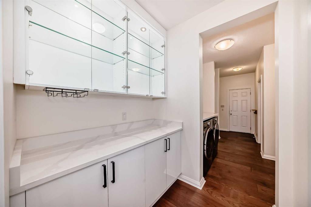 The chef’s kitchen features quartz countertops, updated cabinetry and backsplash, a walk-through pantry with direct garage access, and a new Bosch dishwasher (2022). Additional upgrades include Samsung washer and dryer (2023), fresh paint, engineered hardwood flooring throughout both floors, and fireplace marble wall to the ceiling. Bathrooms on the main and upper level are all newly painted and with new granite counter tops.