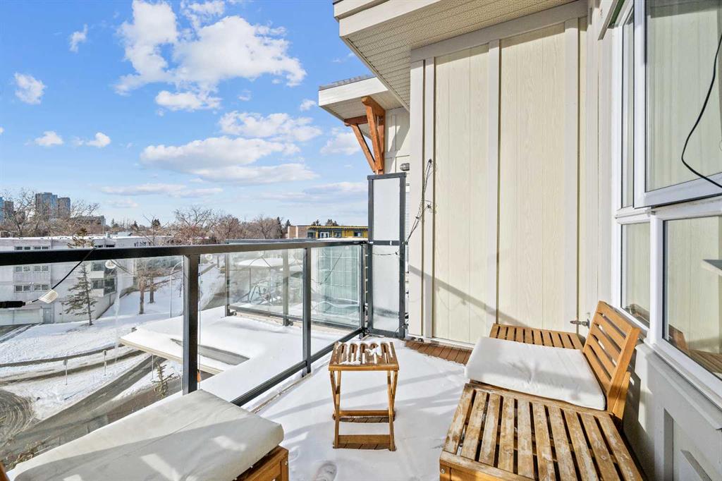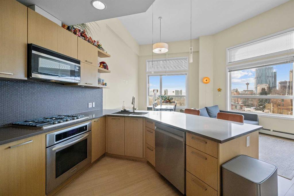 | OPEN HOUSE SUNDAY, JANUARY 4, 1:00 PM - 4:00 PM | EXCEPTIONAL VALUE | 2 TITLED PARKING SPOTS SIDE BE SIDE | FURNITURES INCLUDES DINING TABLE SET, COUCH, LIVING ROOM RUG, TV BENCH, TV WALL MOUNT, PORTABLE A/C, ALL BALCONY FURNITURES, WASHROOM STORAGE CABINET, 2 BARSTOOL CHAIRS, & DINING ROOM SHELF | 2024 DISHWASHER & 2024 WASHER & DRYER | Perched atop the hill between Bridgeland and Renfrew, this southwest-facing penthouse offers sweeping downtown city views through dramatic 13 foot ceilings. A rare highlight, the home includes two titled parking stalls, an exceptional feature for the building. Meticulously maintained, the unit showcases stainless steel appliances, elegant quartz countertops, full tub to ceiling tile in the bathroom, and 2023 carpet in both the bedroom and walk through closet.
