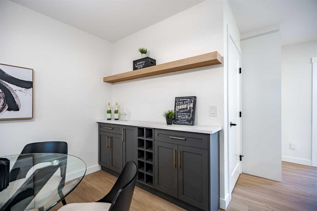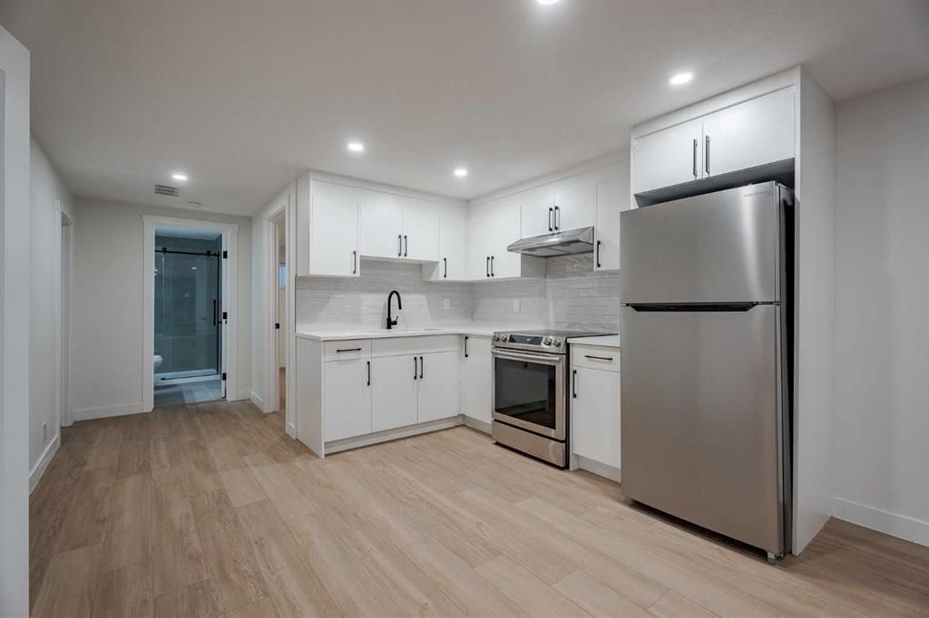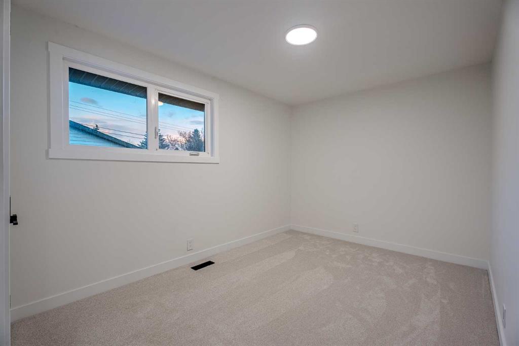 | LEGAL BASEMENT SUITE | SEPARATE LAUNDRY & ENTRY | EXTENSIVELY RENOVATED | OVERSIZED GARAGE | RV PARKING | If a home could make an impression, this one surely would. Welcome to this fully reimagined bungalow in Huntington Hills, where every detail has been thoughtfully updated and nothing left untouched. Featuring a NEW roof, siding, furnace, water tank, double-pane windows, doors, trims, flooring, cabinetry, and more. Located steps from the Huntington Hills Community Centre and playgrounds, and minutes from major shopping at Beddington Towne Centre and Deerfoot City, this property combines modern living with everyday convenience. From the street, you’ll love the home’s stunning curb appeal — board and batten siding, warm wood accents, custom lighting, and a fully landscaped yard create a timeless, modern look. Inside, a formal mudroom with chevron-tiled floors and custom shaker built-ins welcomes you in style. The open-concept main floor features warm LVP flooring throughout. The living room features a custom-tiled fireplace with wood mantle, and a large window filling the space with natural light. The dining area is complete with a statement chandelier and dry bar, ideal for a coffee or wine setup. At the heart of the home lies the chef-inspired kitchen, showcasing ample shaker cabinetry, a textured island with waterfall quartz, built-in pantry, and high-end stainless steel appliances. A patio door provides direct access to the backyard. Down the hall, a stylish 3-piece bathroom and separate laundry closet with a new washer/dryer add convenience. The primary suite offers space for a king bed, a feature wall, custom walk-in closet, and a private 3-piece ensuite with glass shower. Two additional bedrooms complete the main level. The LEGAL basement suite is equally impressive, with a private rear entrance, mudroom, large family room with 2-piece bath, and French doors leading to the living quarters. The suite includes a spacious living area with entertainment wall and fireplace, a kitchenette with new stainless steel appliances, a 3-piece bath, and two large bedrooms—a perfect mortgage helper or rental opportunity. Outside, enjoy a fully landscaped yard, a large deck for summer BBQs, and an oversized double garage with epoxy flooring—ideal for car enthusiasts or added storage. This one-of-a-kind property blends style, functionality, and income potential in one stunning package. Book your showing today and prepare to fall in love!