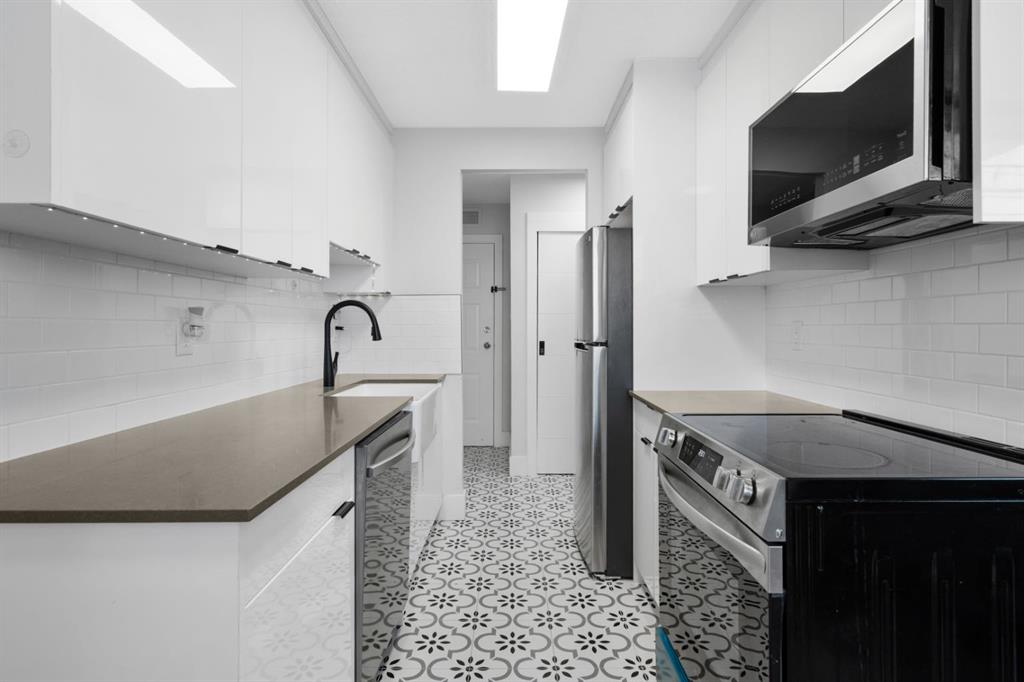 Both bedrooms are generously sized with plenty of room for comfort and relaxation. The updated 4-piece bathroom features modern finishes and a clean, timeless design. Additional highlights include convenient in-unit laundry and an assigned parking stall.