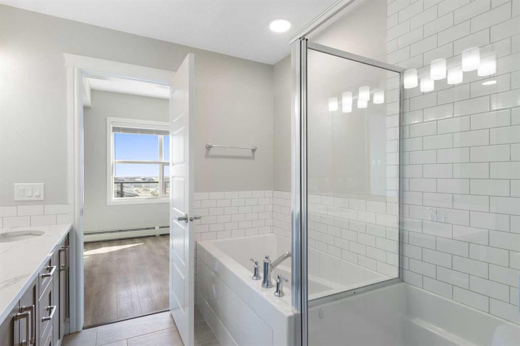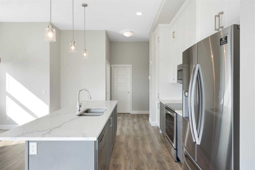 YOU DON’T WANT TO MISS THIS! Discover upscale urban living in this rare top-floor, corner unit in the heart of Seton—one of Calgary’s most vibrant and amenity-rich communities. Boasting nearly 11-foot ceilings, this 2-bedroom, 2-bathroom home feels open and airy, flooding with natural light from its expansive corner windows. The modern floor plan is designed for both comfort and entertaining. A spacious kitchen showcases stainless steel appliances, quartz countertops, sleek cabinetry, and a large island, perfect for cooking or gathering with friends. High-end laminate flooring throughout ties the space together with a warm, stylish finish. The primary suite includes a generous walk-in closet and a private ensuite for your own retreat, while the second bedroom features a cheater ensuite, ideal for family or guests. Practicality meets luxury with TWO titled underground parking stalls—a rare find that ensures year-round comfort and convenience. Even better, this home comes with not just one, but TWO storage lockers, giving you extra space for seasonal items, sports equipment, or household overflow. With rising storage rental costs in Calgary, this added value translates directly into ongoing savings and peace of mind. Seton is known as Calgary’s “downtown of the south,” offering everything you need right at your doorstep. Enjoy trendy restaurants and bars, coffee shops, and everyday essentials just steps away. Meet friends for brunch at Red’s Diner, catch a movie, or take advantage of quick access to South Health Campus. With shopping, fitness facilities, and an energetic community vibe, you’ll love the lifestyle this location provides. This is more than a home—it’s a complete lifestyle upgrade. Don’t miss your chance to own this exceptional top-floor corner unit in Seton!