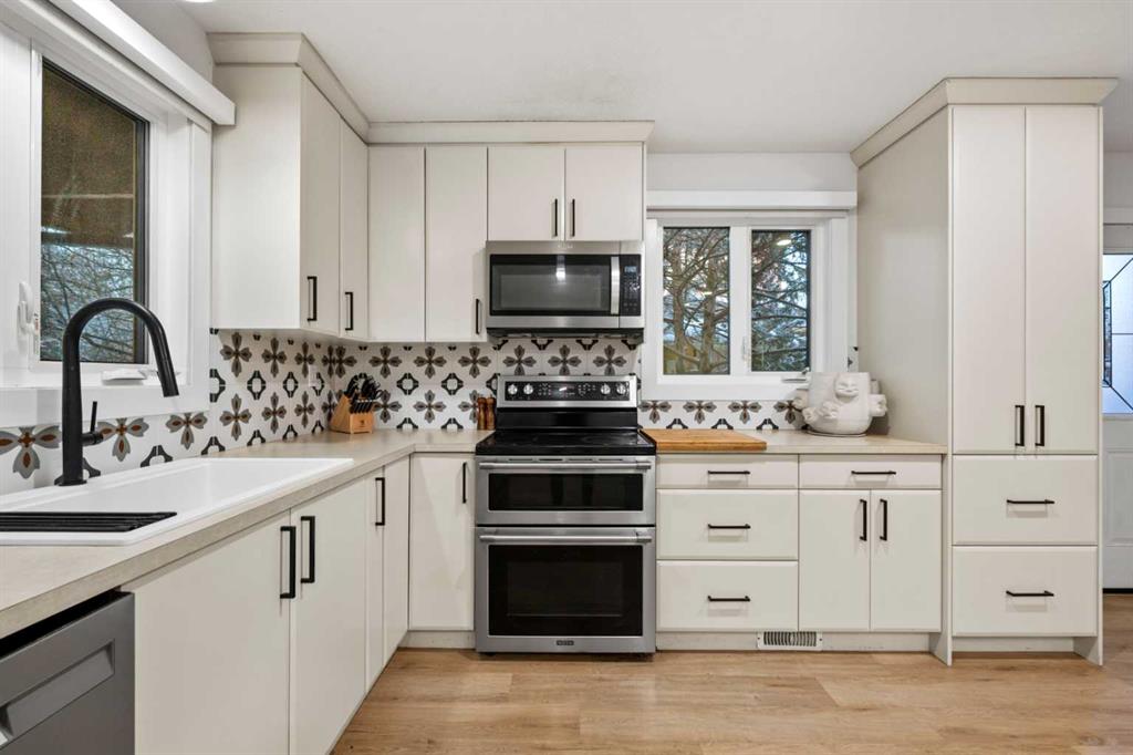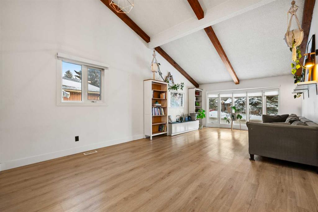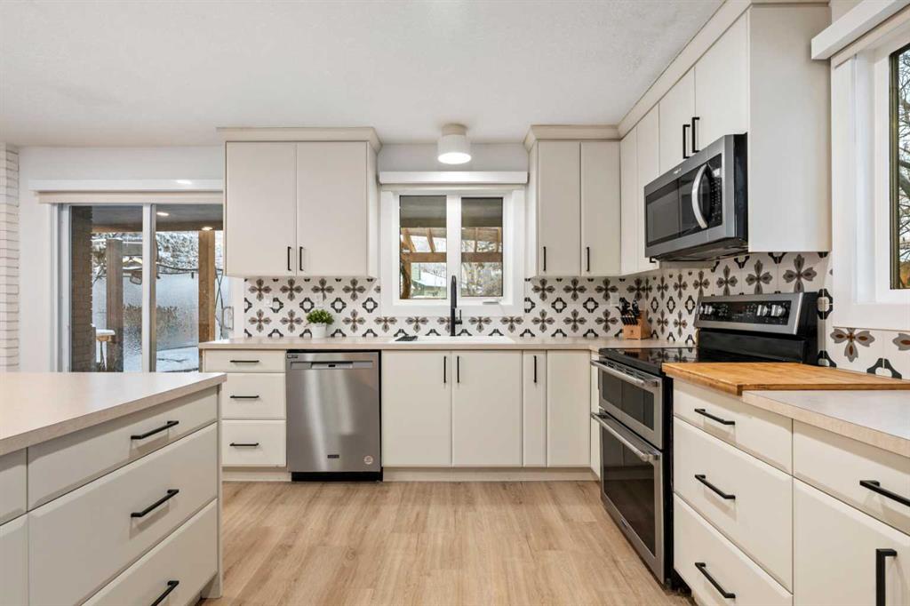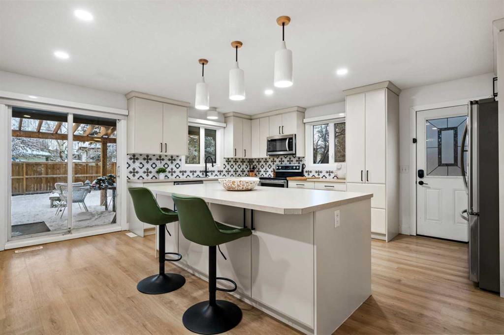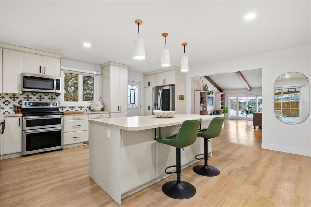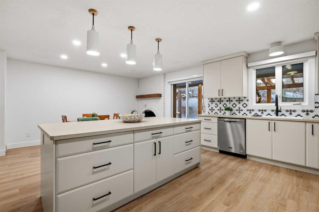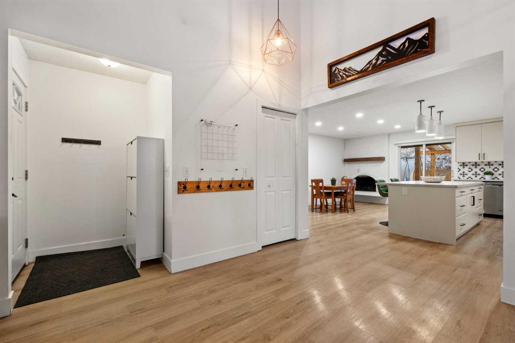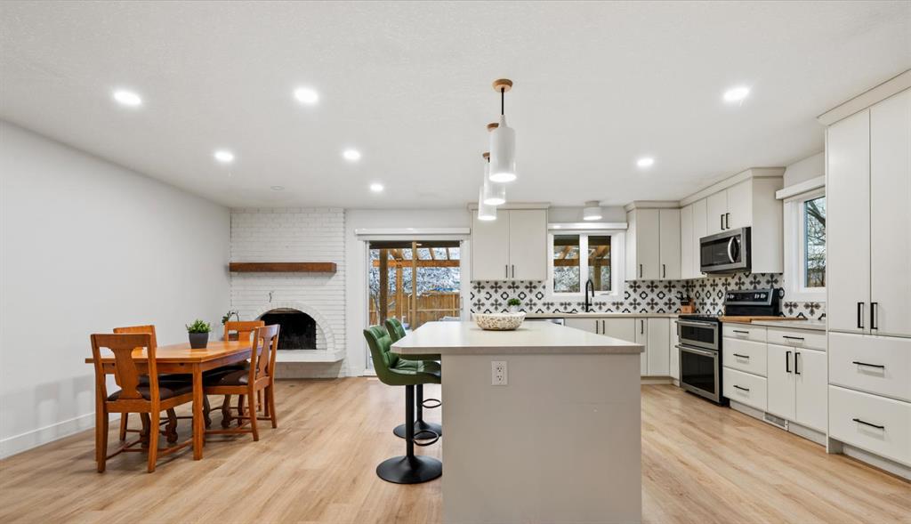 Welcome to this bright and beautifully updated bungalow in the heart of Deer Run, just steps from the incredible pathways and natural beauty of Fish Creek Park. Vaulted ceilings and an inviting open layout create a warm, airy feel throughout the main floor. The thoughtfully renovated open-concept kitchen features a large island, generous pantry space, and flows seamlessly into the living and formal dining areas and is perfect for everyday living and entertaining. Cozy up by the wood-burning fireplace or enjoy hosting family and friends in this welcoming space.