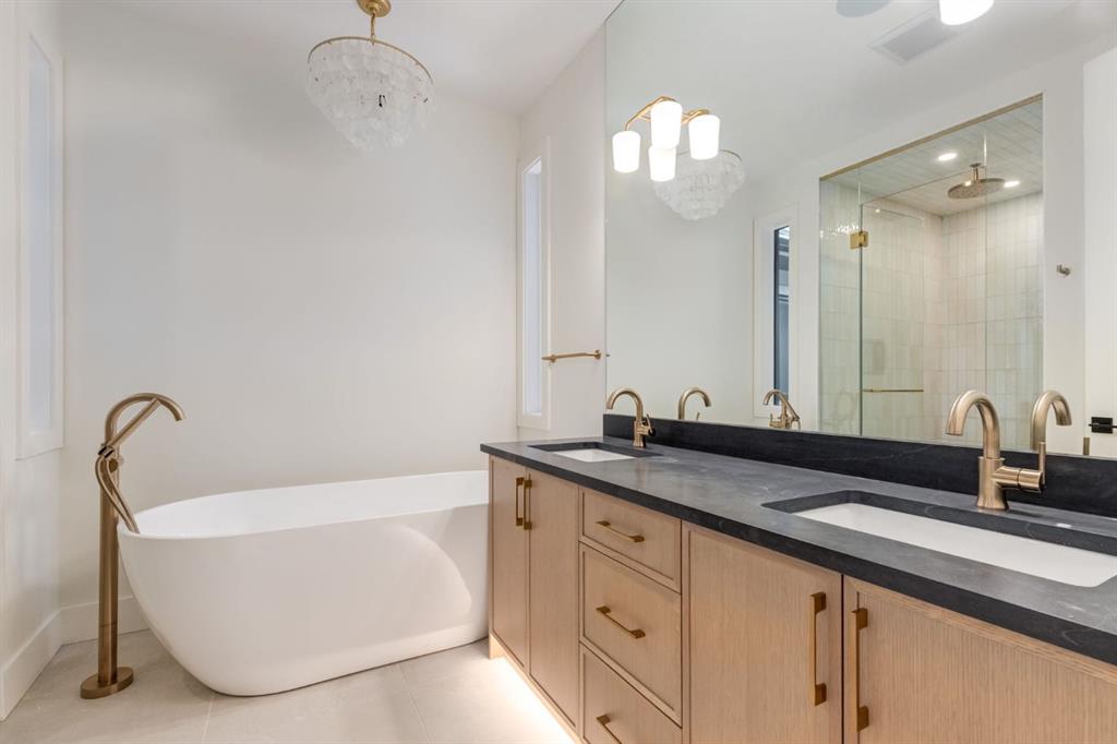 Upstairs, the primary ensuite offers a beautifully finished tub area and oversized shower, while laundry equipment is conveniently included. The fully finished basement provides additional living space and offers flexibility, with the option to convert into a suite if desired.