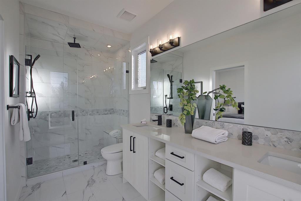 Upstairs, the home boasts two generously sized en-suite bedrooms, each thoughtfully designed for comfort and privacy. The primary suite is bathed in warm natural light thanks to it's large windows and desirable south-facing exposure, offering a serene retreat to start and end your day.