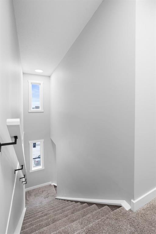 Welcome to this elegant brand-new 3-storey townhome with double attached garage, offering 4 bedrooms and 3.5 bathrooms in the desirable community of Redstone. Designed with upscale modern finishes, this home features quartz countertops, full-height glossy cabinetry, stainless steel appliances, soft-close drawers and cabinets, stacked front-load washer & dryer, and energy-efficient high-performance windows. A rare main-floor studio bedroom with wet bar and 4-pc ensuite provides an ideal private space for elderly family members, guests, or independent living. The open-concept second level showcases a chef-inspired kitchen with large island, pantry, dedicated dining area, home office/den with frosted French doors, and an expansive living room opening to an east-facing balcony, lighting, and privacy screen. Upper level includes a spacious primary suite with walk-in closet and ensuite, two additional bedrooms, full bath, and upper-floor laundry. Low condo fees, central greenspace courtyard, visitor parking, and quick access to Stoney Trail complete this exceptional offering. **Photos are of similar unit in the complex, all from the same floor plan, exterior & interior colors and layout may differ. Photos with furniture are virtually staged. Floor plans are attached in the supplements for this unit.