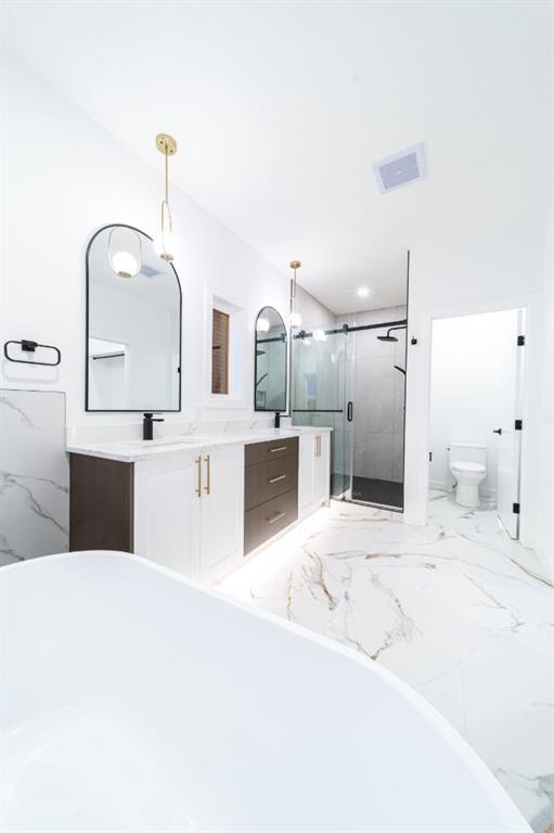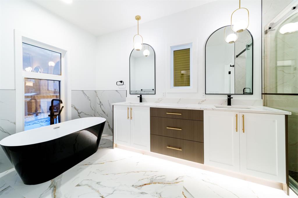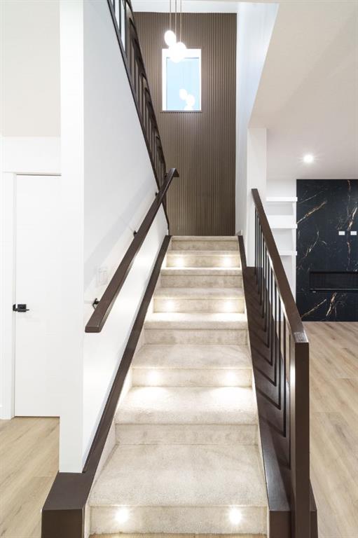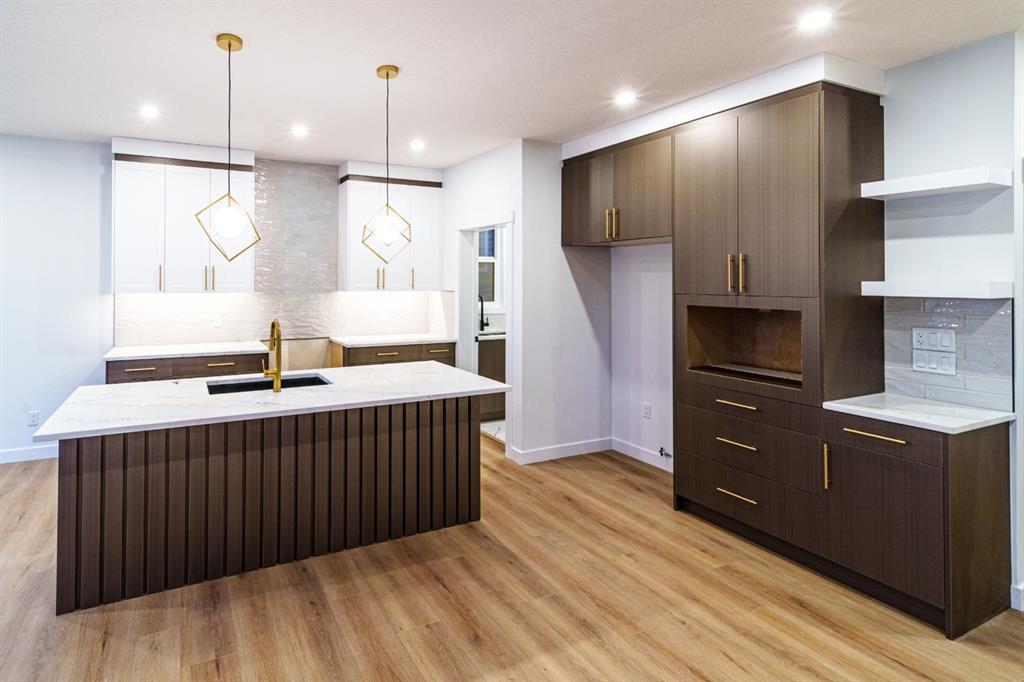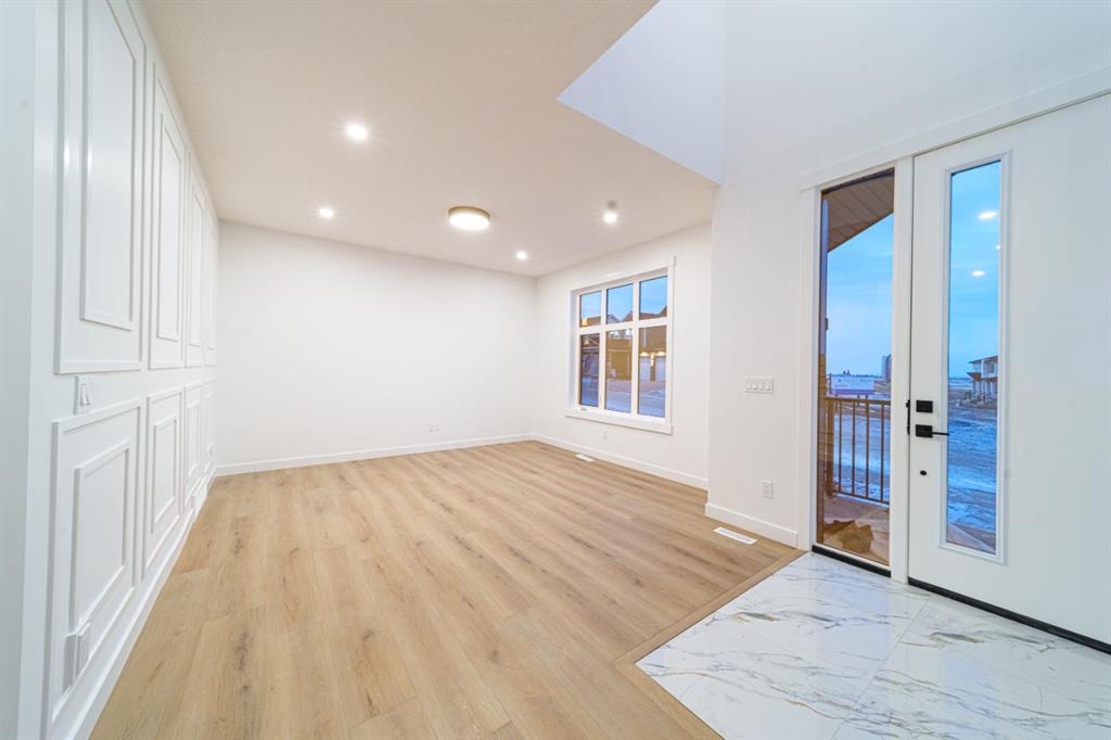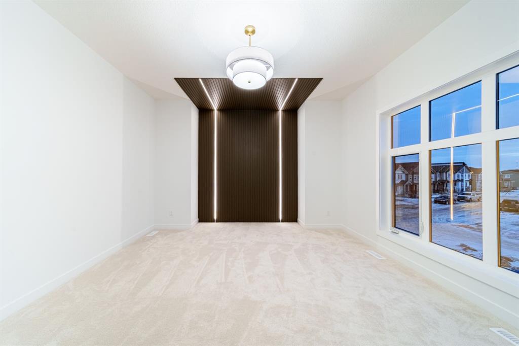 Built by Exquisite Homes The residence features 3 spacious bedrooms and 2.5 elegantly designed bathrooms, highlighted by exquisite finishes such as stunning Maple details, slim shaker-style cabinetry with plywood boxes, sleek black exterior dual-pane windows, high-end lighting, and durable wide plank LVP flooring. We offer the flexibility to provide full finishes upon request. The main floor boasts an open concept design/open to below that seamlessly connects the kitchen, dining nook, and great room, ideal for modern living and entertaining. The kitchen features a large island with quartz countertops and upgraded lighting fixtures, creating a stylish and functional space. A cozy montigo gas fireplace adds warmth and charm to the great room. The main floor also includes a convenient spice kitchen, a study room, a mudroom, and 9-foot ceilings that enhance the feeling of spaciousness. Large windows flood the space with natural light, enhancing the airy atmosphere. Outside, you'll find a triple-car detached garage, a private front deck, and acrylic stucco throughout the exterior with stone accents. On the second floor, enjoy the grandeur of 9-foot ceilings throughout, including in the spacious bonus room with an open-to-below concept that adds to the home’s luxurious feel. The master suite features a 5-piece custom ensuite with custom tiled shower and a generous walk-in closet, while the second bedroom includes its own walk-in closet. The third bedroom, along with an upper-floor laundry room with built in cabinets, provides additional convenience. Each bedroom is enhanced with elegant tray ceilings, adding a touch of sophistication. The undeveloped basement offers a wealth of potential, featuring rough-ins and a side entrance. It can be customized based on your preferences, allowing you to tailor the space to suit your needs.
