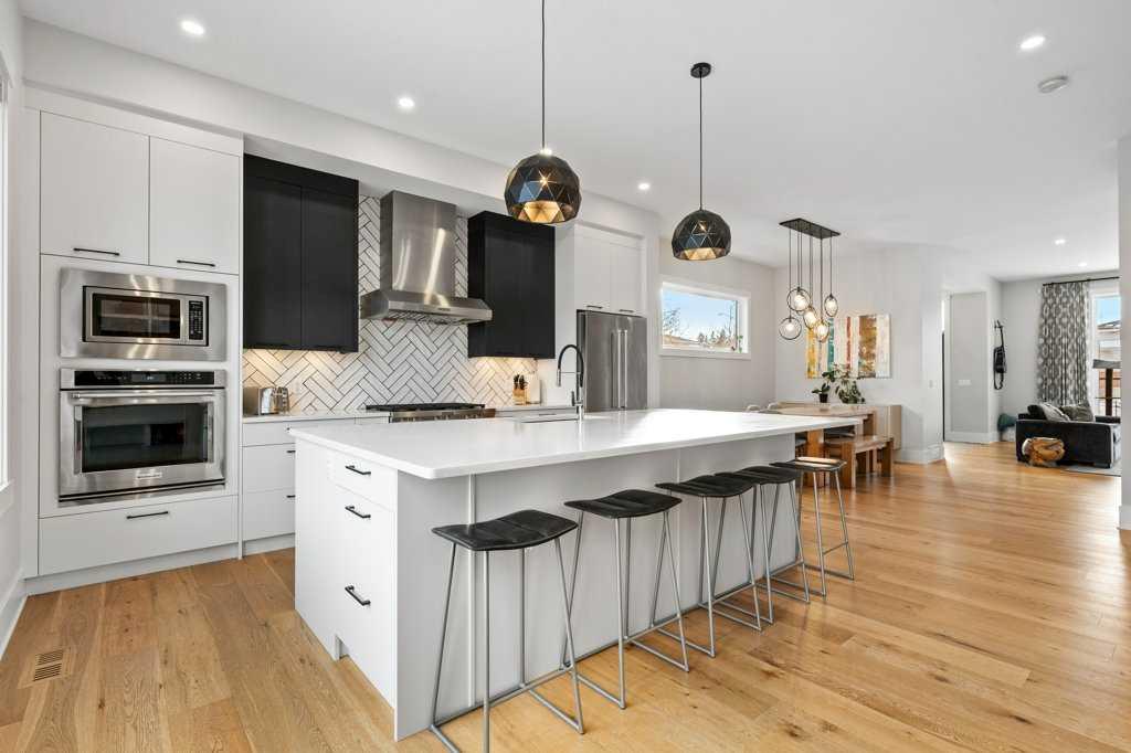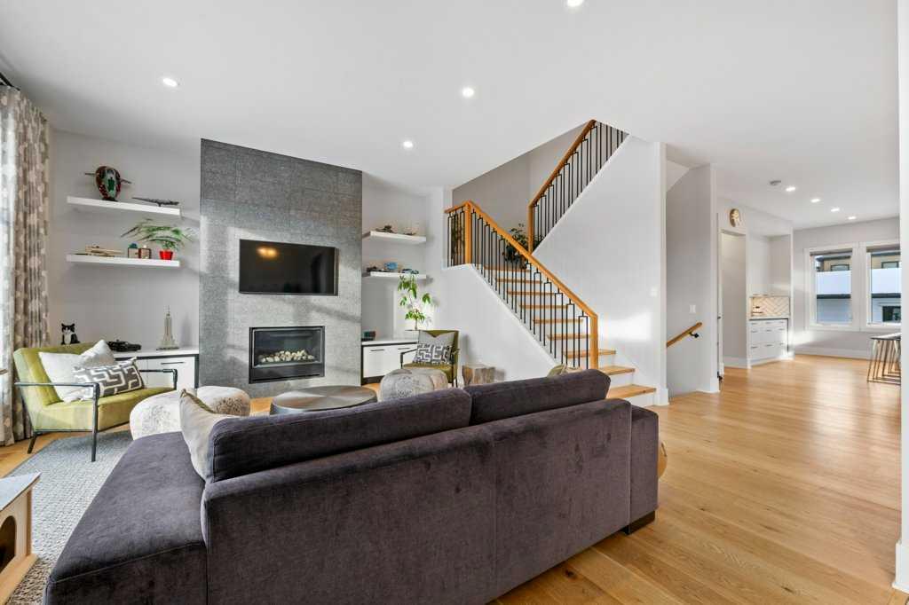 Stunning modern farmhouse located on a quiet street in the heart of the inner-city community of Renfrew. Custom built on a rare 60-foot lot with a 26-foot-wide footprint, this home offers exceptional space and functionality—ideal for growing families. The open-concept main floor is flooded with natural light and showcases 10-foot ceilings, wide-plank engineered oak flooring, solid core doors, custom railings, and a striking gas fireplace with floor-to-ceiling tile and built-in cabinetry from your family size front foyer into the West facing lifestyle room, the perfect start to this impressive plan.