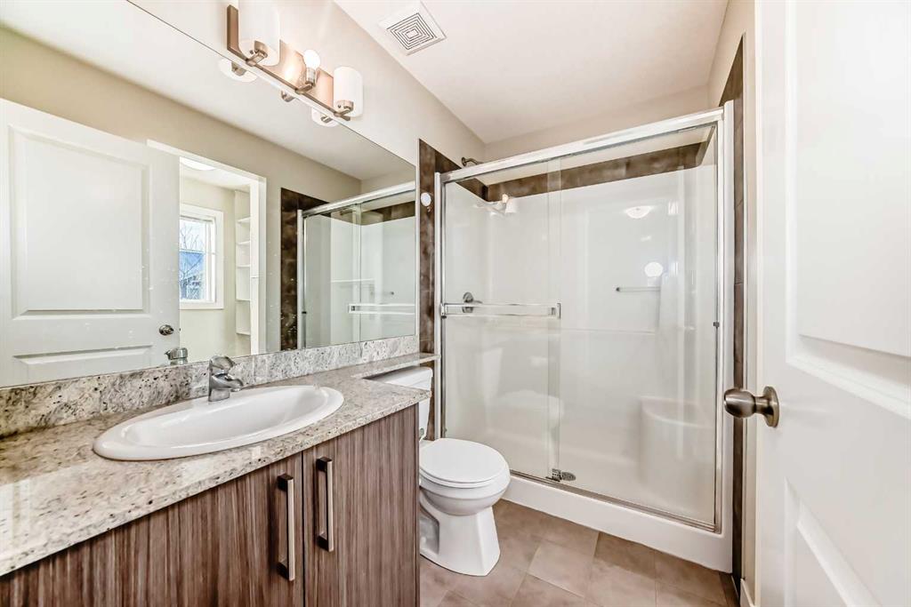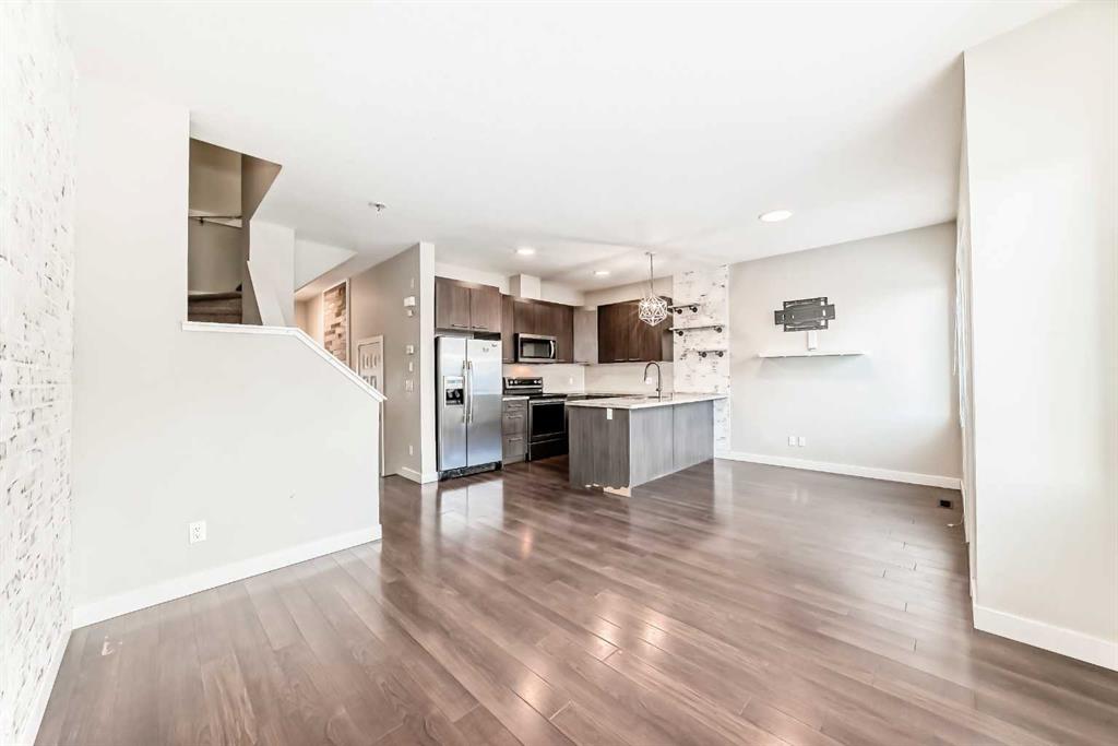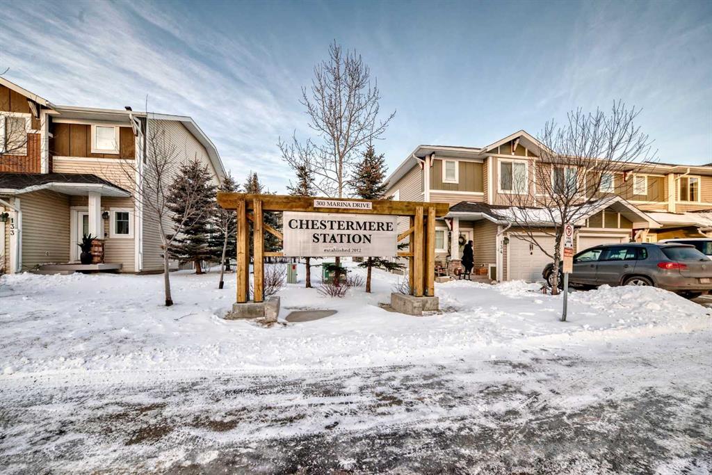 PERFECT LOCATION! Welcome to a beautifully appointed two-storey townhouse offering the perfect blend of comfort, style and an unbeatable location. Imagine stepping out your door and being just minutes from grocery stores, cafés, restaurants, banks, and the stunning Chestermere Lake—this home truly places everything you need within easy walking distance. Featuring over 1,500 sq. ft. of thoughtfully designed living space, this home includes 3 spacious bedrooms, 2.5 bathrooms and an attached single garage. The main floor showcases a bright open-concept layout, ideal for everyday living and entertaining with a generous living area, a dining space that opens onto your private deck and a modern kitchen complete with stainless steel appliances and elegant granite countertops. A convenient two-piece powder room completes this level. Upstairs, you will find two well-sized bedrooms, a full bathroom, and a spacious primary retreat featuring its own private ensuite. The upper-level laundry adds everyday convenience. The finished basement offers a cozy recreation room with quality finishes and built-in speakers along with plenty of additional storage. Step outside to a fully fenced backyard backing onto green space, perfect for relaxing or entertaining on the professionally finished deck equipped with a gas line for your BBQ. Meticulously maintained and move-in ready, this home delivers exceptional value in a prime location. A rare opportunity to enjoy low-maintenance living in one of Chestermere’s most walkable and desirable areas—come visit for personal experience!