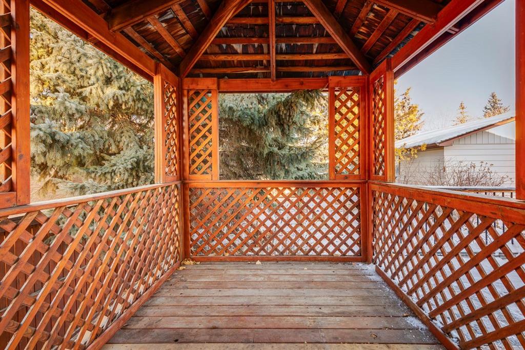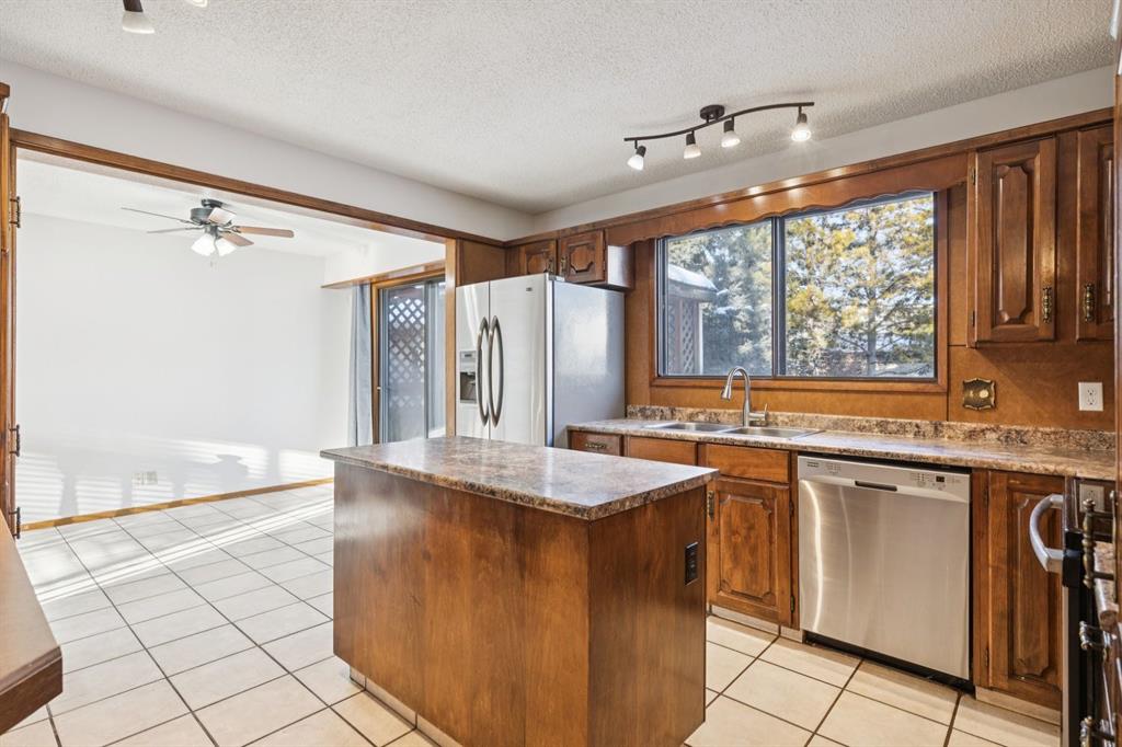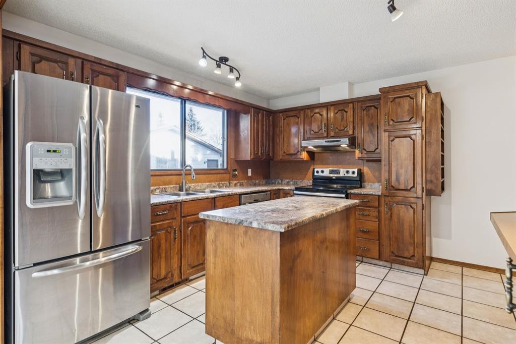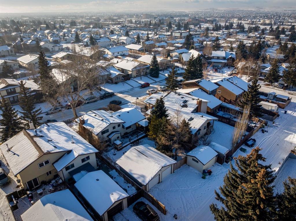 Welcome to #9 Jensen Crescent in Airdrie, a truly special, original-owner family home nestled on a quiet, low-traffic street in one of Airdrie’s most established and family-friendly neighborhoods. Homes like this rarely come available, offering an exceptional combination of location, space, privacy, and long-term pride of ownership. This fully finished 4-level split offers over 2,200 sq ft of developed living space, thoughtfully designed to accommodate growing families or multi-generational living. With 4 bedrooms and 2.5 bathrooms, there’s plenty of room for everyone to spread out while still enjoying warm, connected living spaces. Large windows allow natural light to flow throughout, while the home’s “great bones” provide an excellent opportunity to personalize or update over time. The third-level walkout offers separate exterior access, adding flexibility for a home office, teenage retreat, or potential future income helper (subject to approvals). The living area is anchored by a stunning floor-to-ceiling wood-burning brick fireplace and wood wainscoting, creating a cozy atmosphere perfect for Alberta winters. Additional highlights include a cold room for storage, a central vacuum system, and all major appliances included. Step outside and discover your own private backyard oasis. The mature, fully fenced yard is beautiful, offering exceptional privacy. Enjoy summer days surrounded by abundant raspberry bushes, ample space, and room to entertain or relax on your full-size deck. The property also boasts RV parking, a storage shed, and plenty of additional parking spaces. Car enthusiasts and hobbyists will appreciate the oversized double detached garage with rear lane access, adding both convenience and functionality. New shingles on the house provide peace of mind for years to come. Location is truly outstanding — situated in the highly sought-after Tri-School Zone, with schools just steps away, making daily routines effortless. You're also within walking distance to downtown Airdrie amenities, including shopping, dining, parks, and services. With its fantastic curb appeal framed by a lush hedge line, family-focused layout, and unbeatable location, this home offers a rare opportunity to own a lovingly maintained home in the heart of Airdrie. A perfect blend of comfort, character, and long-term value — this is one you won't want to miss.