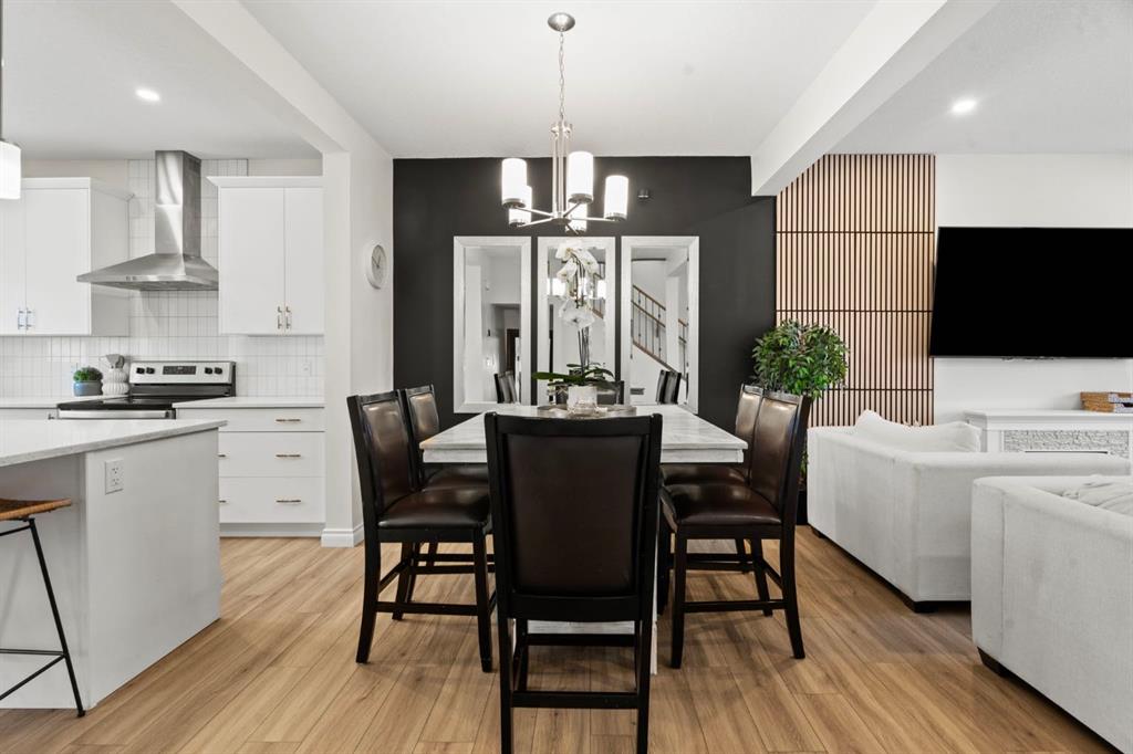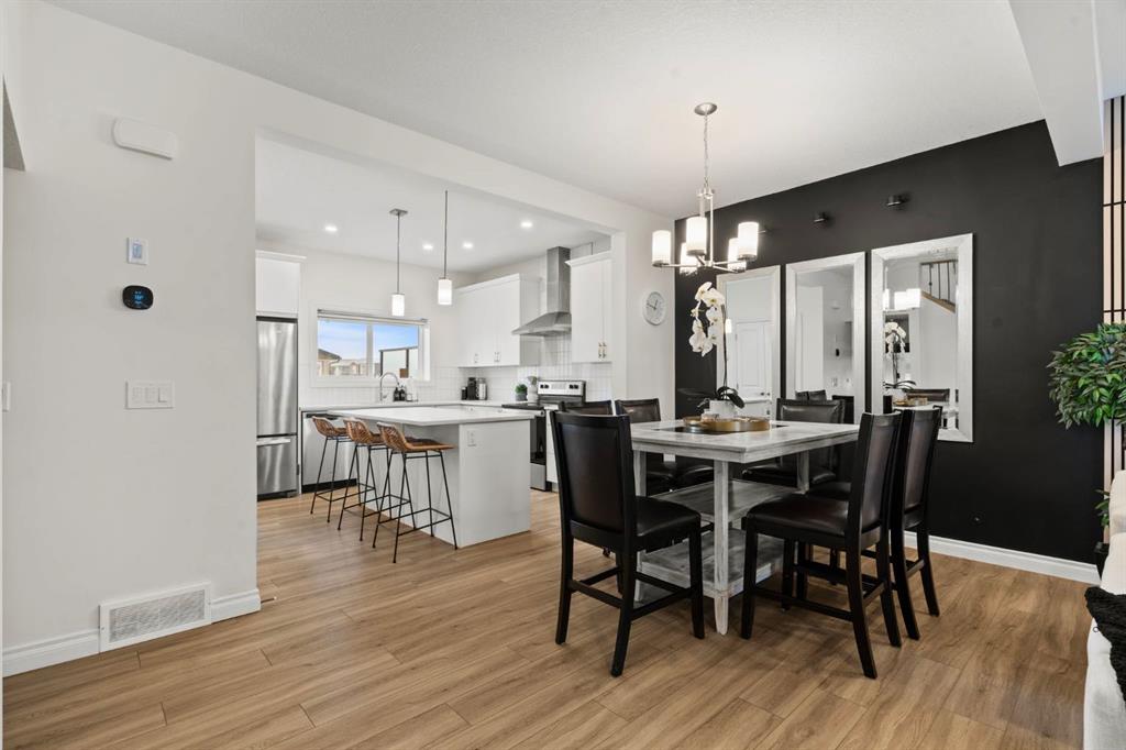 Welcome to this beautifully maintained 2-storey duplex in the heart of Cochrane, offering modern finishes, including smart technology with controls for lights, heat and door locks that can be controlled through your phone. As well as an Alexa doorbell. Thoughtful upgrades, and exceptional versatility in a neighbourhood loved for its proximity to schools, daycares, parks, and everyday amenities. The main level welcomes you with a bright, open-concept layout highlighted by vinyl plank flooring, recessed lighting, and stylish feature accents that add warmth and contemporary appeal. The inviting living room has large windows that flood the space with natural light creating an ideal setting for both everyday living and entertaining. At the heart of the home is the stunning kitchen, thoughtfully designed with quartz countertops, stainless steel appliances, crisp white cabinetry, and a large centre island with seating. Pendant lighting and a clean tile backsplash complete the space, while the adjacent dining area provides ample room for family meals and gatherings. A convenient main-floor powder room completes this level. Upstairs, you’ll find three well-sized bedrooms, including a serene primary retreat featuring a walk-in closet and private 4-piece ensuite. Two additional bedrooms are served by a second 4-piece bathroom, creating a functional and family-friendly layout. The upper level also includes convenient laundry located near the bedrooms and a thoughtfully designed built-in desk/workstation, perfect for homework, remote work, or creative use. The fully finished basement adds incredible flexibility and value, offering a spacious recreation area ideal for a home gym, media room, play space, or studio. This level also features a bedroom and bathroom, making it perfect for guests, teens, or extended family. Custom built-in storage and modern finishes complete this well-designed lower level. Additional highlights include central air conditioning for year-round comfort and a thoughtfully planned layout with 1,486 sq. ft. of above-grade living space, plus an additional 660.27 sq. ft. in the professionally developed basement. Situated in a welcoming Cochrane community close to parks, schools, daycares, and local amenities, plus enjoy, an outdoor pump track, skate park, and outdoor rink within a 5 min walk of the home. This home offers the perfect balance of style, comfort, and location ideal for families, first-time buyers, or anyone looking to enjoy small-town living with modern conveniences. Don't miss your chance to see this one today. Quick possession is available.