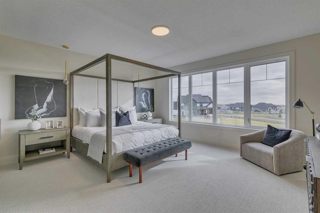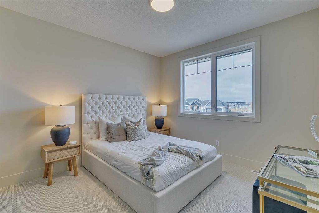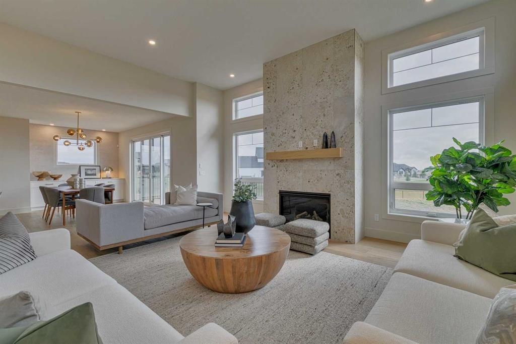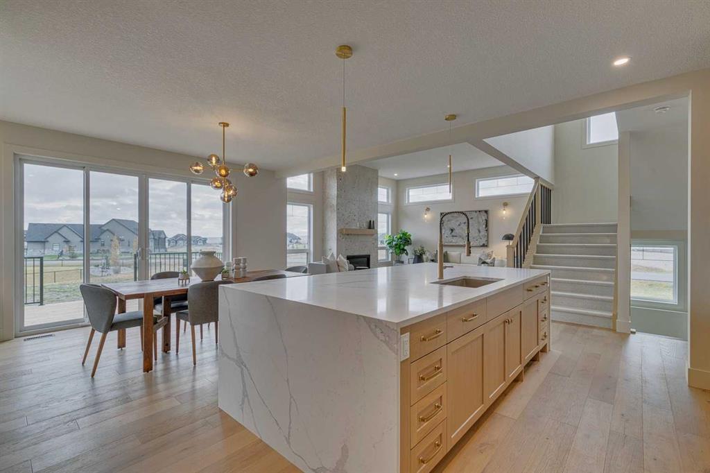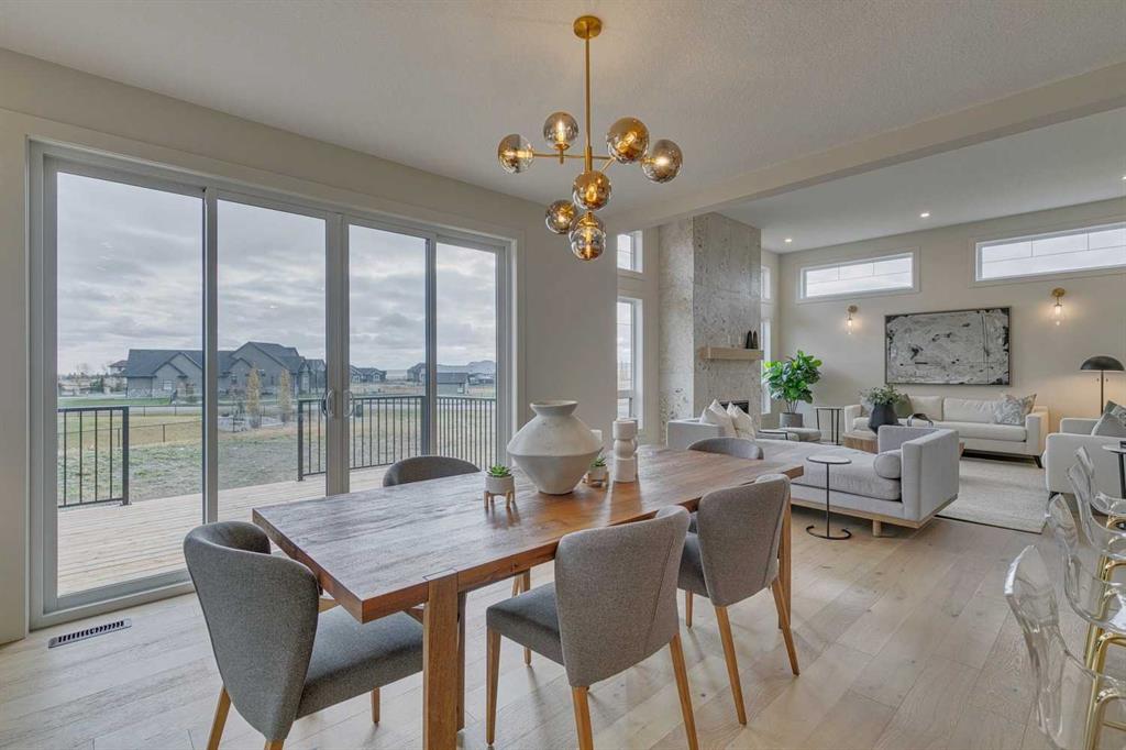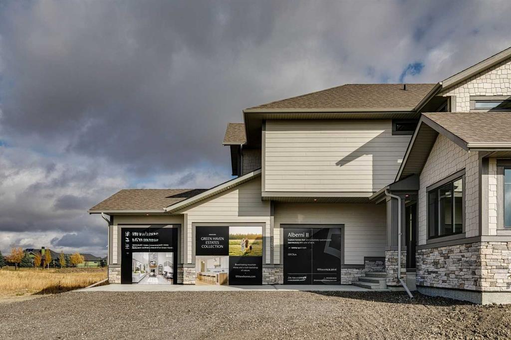 This "Alberni" Show Home is one of Fifth Avenue Homes most popular plans! A traditional two-storey offering a total of 4,148 sq.ft. of luxury living space including professional basement development! The great room features a gas fireplace and 20' ceiling, adjoining dining area with a sliding door to the 14'x17' deck (with BBQ gas line) and access to the large yard. Dream kitchen with built-in fridge, oversized island & 4 stool breakfast bar, Quartz countertops and a walk-through butler’s pantry. Completing the main floor is the front den, a 2 piece bathroom and mudroom with direct access into the garage. The upper level has the perfect room count: an oversized primary suite with a spa-style 5 piece ensuite and walk-in closet, 2 additional bedrooms, 5 piece bathroom and laundry room! The lower level is developed with a family room featuring a gas fireplace, glass wine cellar and wet bar, home gym, 4 piece bathroom, hobby/craft room and mechanical room. Awesome oversized triple attached garage with additional storage or room for a workshop. This home has many upgrades including engineered hardwood, custom tile, closet organizers & wood shelves, Hardie board siding and 30 year shingles. Full Builder and New Home Warranties. Green Haven Estates is located minutes east of Okotoks offering peaceful country living! Less than 30 minutes to the South Campus Hospital and Calgary’s amenities too! Early 2026 possession available.