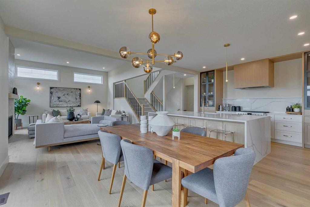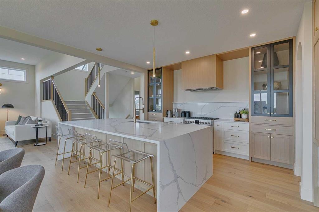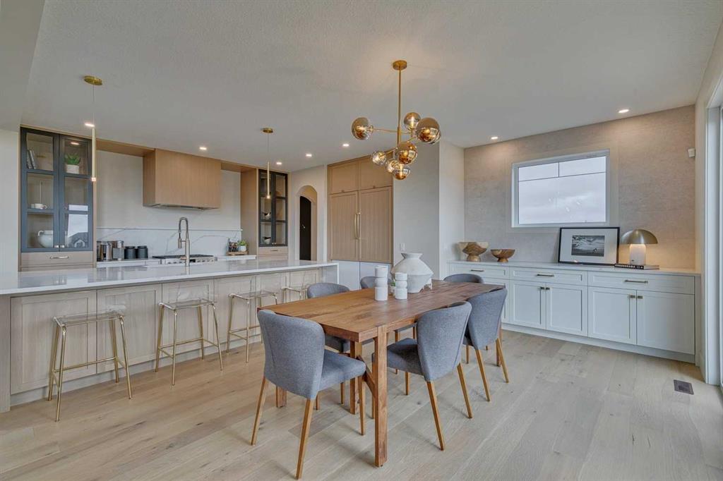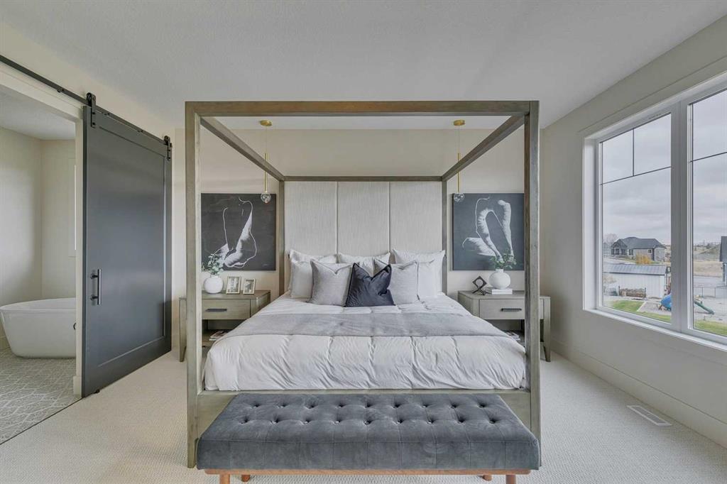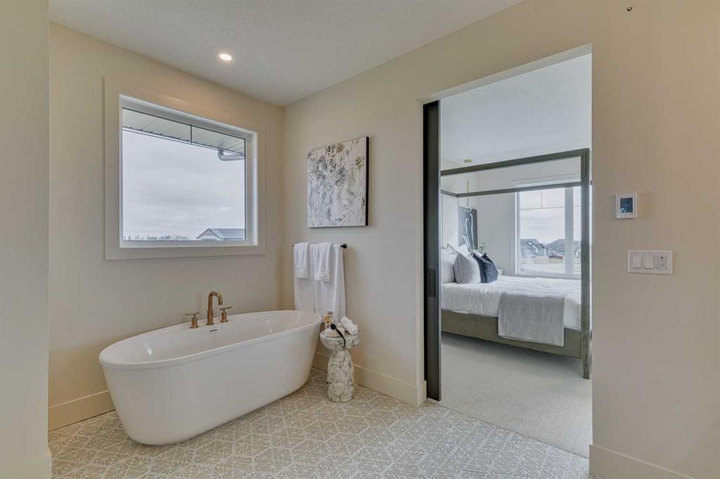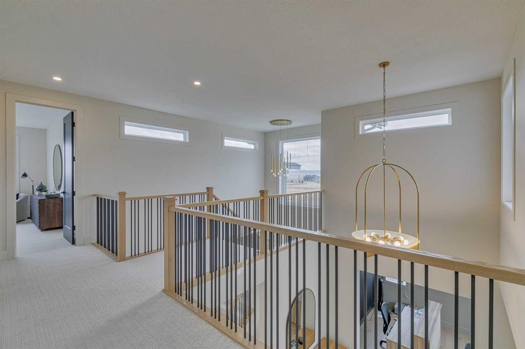 This "Alberni" Show Home is one of Fifth Avenue Homes most popular plans! A traditional two-storey offering a total of 4,148 sq.ft. of luxury living space including professional basement development! The great room features a gas fireplace and 20' ceiling, adjoining dining area with a sliding door to the 14'x17' deck (with BBQ gas line) and access to the large yard. Dream kitchen with built-in fridge, oversized island & 4 stool breakfast bar, Quartz countertops and a walk-through butler’s pantry. Completing the main floor is the front den, a 2 piece bathroom and mudroom with direct access into the garage. The upper level has the perfect room count: an oversized primary suite with a spa-style 5 piece ensuite and walk-in closet, 2 additional bedrooms, 5 piece bathroom and laundry room! The lower level is developed with a family room featuring a gas fireplace, glass wine cellar and wet bar, home gym, 4 piece bathroom, hobby/craft room and mechanical room. Awesome oversized triple attached garage with additional storage or room for a workshop. This home has many upgrades including engineered hardwood, custom tile, closet organizers & wood shelves, Hardie board siding and 30 year shingles. Full Builder and New Home Warranties. Green Haven Estates is located minutes east of Okotoks offering peaceful country living! Less than 30 minutes to the South Campus Hospital and Calgary’s amenities too! Early 2026 possession available.