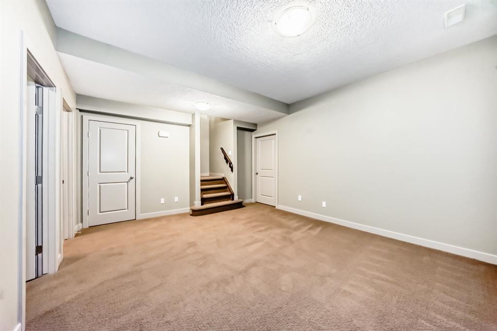 Welcome to a truly exceptional opportunity in the desirable community of Cougar Ridge. This well-located complex, situated near Old Banff Coach Road, features this unique end unit within a highly sought-after 4-plex building. This townhome offers an expansive 2,365+ square feet of meticulously maintained living space, complete with 3 bedrooms and 3.5 bathrooms. The main level showcases elegant hardwood flooring throughout the living and dining areas. The kitchen and all baths have been upgraded with stylish granite countertops. The home boasts brand new, high-end Samsung and LG appliances (refrigerator, microwave, electric stove, and dishwasher). The upper floor features two spacious bedrooms with freshly replaced carpeting, plus a versatile hardwood-floored loft area. The basement is fully and professionally developed, adding significant value and living space with a large family room, a third bedroom, and a 4-piece bathroom. Ample storage space is also available. Enjoy the convenience of an attached single-car garage and an additional dedicated parking stall right in front of the unit. Its excellent location provides easy access to downtown and public transit, making it ideal for the commuter.