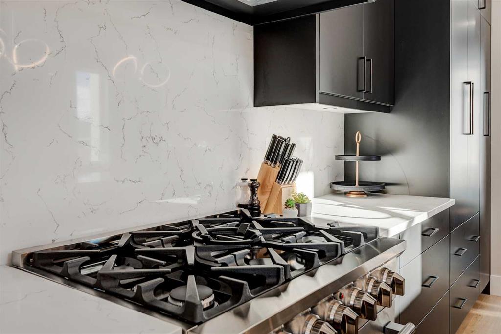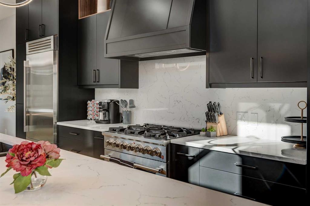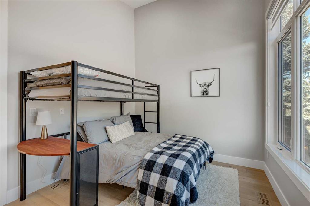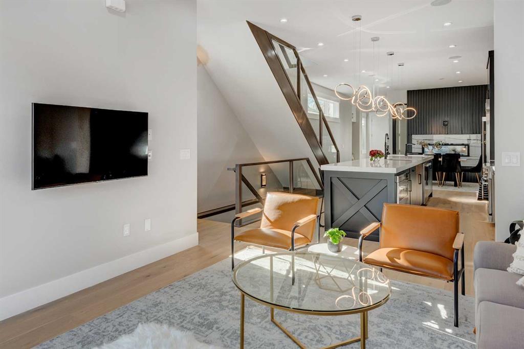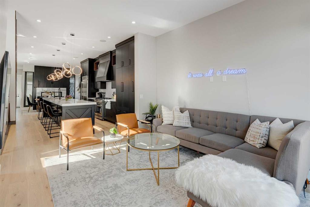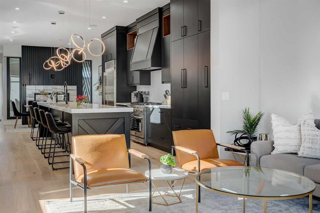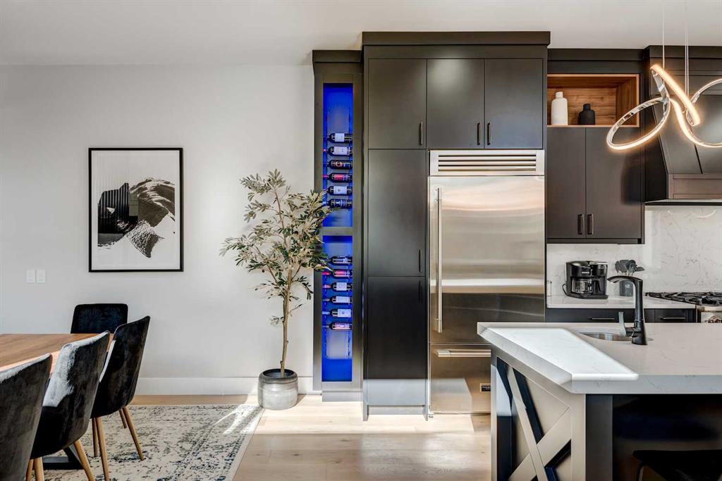 An exceptional opportunity to own a fully finished detached infill offering 3,178 sqft of refined living space, currently operating as a successful Airbnb and offered fully furnished with all décor and contents included—a truly turnkey investment or effortless move-in opportunity. Designed with striking contemporary style and everyday functionality, this home impresses from the moment you arrive. The main level features an open, light-filled layout ideal for entertaining and daily living. A private main-floor office showcases a statement feature wall and elegant dual-sided fireplace, creating an inspiring work-from-home space. The heart of the home is the chef’s kitchen, complete with an oversized island and prep sink, premium stainless-steel appliances, gas stove, custom hood fan, and counter-depth refrigerator. Adjacent to the kitchen, the dining area is highlighted by a built-in wine display and offers ample space for hosting memorable gatherings. The inviting living room flows seamlessly to the outdoor retreat. Upstairs, enjoy a versatile bonus lounge, three well-appointed bedrooms, and a dedicated laundry room. The primary suite is a true sanctuary, featuring a generous walk-in closet and a spa-inspired five-piece ensuite with heated tile floors, glass-enclosed shower with body jets and dual shower heads (steam-ready), soaker tub, and a refined barn-door entry. Secondary bedrooms include custom wardrobes and share a beautifully finished four-piece bathroom. The bonus room, complete with a wet bar and beverage fridge, can easily convert into an additional bedroom or flexible living space. The fully developed basement rivals the upper levels with a spacious entertainment area featuring a custom wet bar and built-in media unit, perfect for hosting. A dedicated home gym with mirrored walls and luxury vinyl flooring, a large guest bedroom, and a full bathroom complete this level. Step outside to a private backyard oasis designed for year-round enjoyment, highlighted by a luxurious hot tub, ideal for both personal use and short-term rental appeal. Built with meticulous attention to detail, this home includes air conditioning, in-floor heating, and a central vacuum system. Located in the desirable inner-city community of Shaganappi, close to parks, schools, amenities, and the Shaganappi Point CTrain, and within the catchment for Western Canada High School, this property offers a rare blend of luxury living, income potential, and turnkey convenience. Book your private showing today.