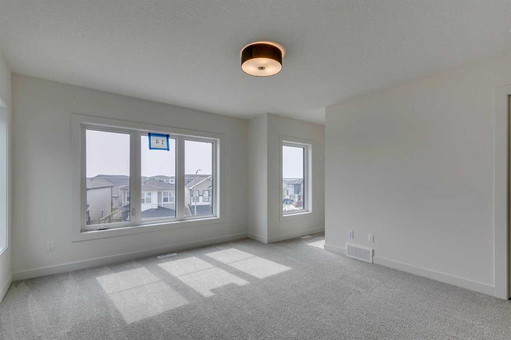 Unbeatable value! Come see for yourself! The “Alden” is one of Fifth Avenue Homes’ most popular floor plans. This 3 storey, tri-plex style end unit townhome has over 1,700 sqft of luxury living space & a double attached rear garage with direct access into the home. The entry level has a spacious mudroom, 2 pc bath, flex room, which is perfect for a home office or gym & mechanical. The main floor, with an excellent, open plan, features a huge great room with 10x8 balcony, dream kitchen highlighted by an oversized, 5-stool breakfast bar island, Quartz countertops & custom tile backsplash, adjoining dining area, walk-in study & 2 pc bath. The upper level offers a 4 pc bath, laundry, spacious bedroom with walk-in closet & a gorgeous primary suite with walk-in closet, 4 pc ensuite (double basin vanity & 5’ step-in shower closet). High-end plumbing & lighting fixtures throughout! Fifth Avenue Homes is well known for above standard finishings & attention to detail both in design & workmanship. This listing has just been completed & is ready for occupancy – pick your possession & move right in. GST included in sale price. Low condo fees of $299/month for landscaping, snow & trash removal - Builder is offering FREE condo fees for TWO years and will cover all monthly condo fees for 24 months starting the first month following the possession date. Payment details to be determined at time of an offer. The Cottages are situated in the heart of Belvedere & just minutes to all the amenities in East Hills Plaza (Costco, movie theatre, shops & restaurants), close to future CBE elementary school site & 10 minutes to downtown on the Max Purple transit. Belvedere offers a wonderful family lifestyle with parks, natural wetlands and pathways. Book a showing with your Realtor today!