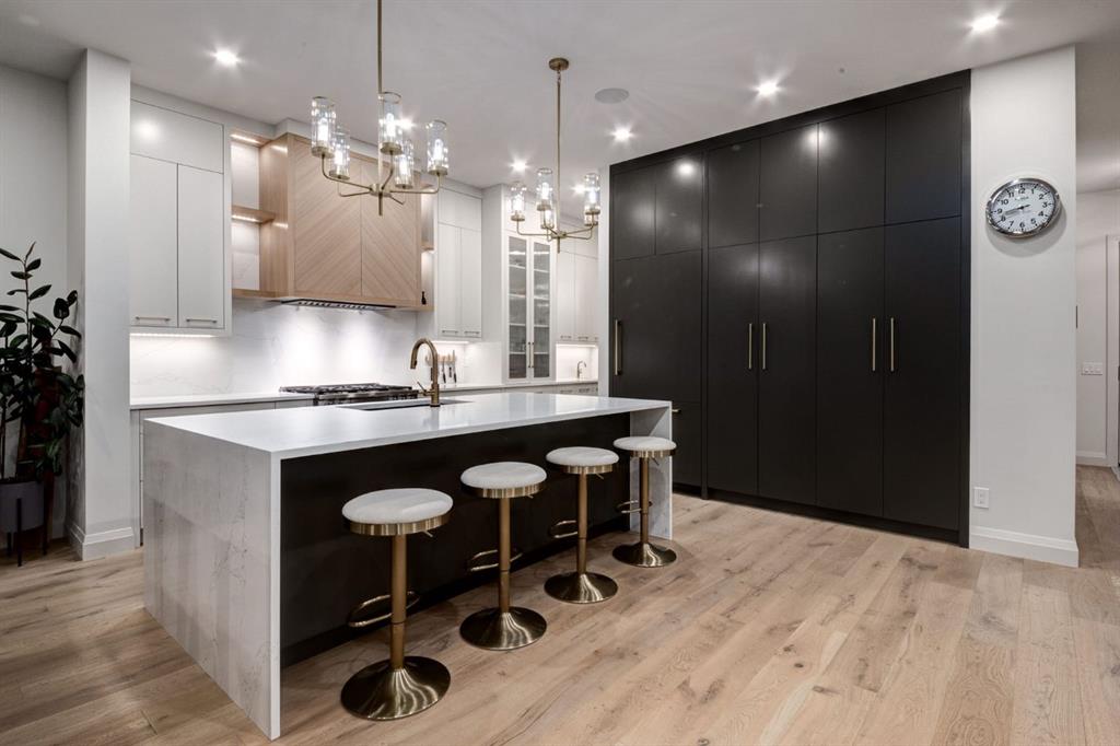 Experience the pinnacle of luxury living in this exceptional "ELLE Decor" residence by Willix Developments, where unparalleled craftsmanship meets timeless design. Boasting over 4,000 square feet of meticulously developed living space, this sophisticated home is perfectly positioned on a generous lot with a sunny, south-facing backyard, offering privacy, elegance, and space for outdoor entertaining or relaxation. A detached, heated triple garage adds convenience, while the vibrant heart of Marda Loop, with its eclectic shops, cafés, and cultural offerings is just a short stroll away, blending urban lifestyle with the tranquility of a private retreat. From the moment you enter, the home impresses with its soaring ceilings on all three levels, extensive exterior brick detailing, and a thoughtfully designed floor plan. Natural light pours through large windows, highlighting every detail of the refined interior, from designer light fixtures and striking wallpaper accents to exquisite millwork, tile detailing, and wide-plank white oak hardwood floors. The seamless flow of the living spaces creates an inviting atmosphere, ideal for both everyday family life and sophisticated entertaining. The chef-inspired kitchen is a statement of modern luxury, featuring a full Miele appliance package, sleek custom cabinetry with ample storage, quartz countertops and backsplash, and a generous center island perfect for meal preparation or casual gatherings. Adjacent spaces flow effortlessly into the dining and living areas, anchored by a gas fireplace framed by custom-designed built-ins that create warmth and intimacy. The private primary suite is a true sanctuary, complete with a spa-inspired steam shower, a spacious dressing area, and a coveted makeup area. Three additional bedrooms are generously proportioned, providing comfort for family or guests. For productivity and wellness, the home offers a main-level office and a lower-level gym, along with a temperature-controlled glass wine display for the discerning collector. Radiant in-floor heating in the basement ensures comfort year-round, while thoughtful touches throughout emphasize quality and attention to detail. This residence is more than just a home - it is a lifestyle. Imagine relaxing on the sunny patio, or walking to nearby cafés, boutique shops, and local entertainment. Excellent schools, parks, and a community center are all within easy reach, making this location ideal for families seeking convenience without compromising sophistication. The combination of indoor luxury and outdoor living creates a perfect harmony that caters to both relaxation and vibrant social living. Every aspect of this home reflects refinement, quality, and attention to detail, providing an unmatched living experience in one of the city’s most desirable locations. From morning coffee in the kitchen to evening gatherings by the fireplace, every day is elevated by the thoughtful design, premium finishes, and enviable lifestyle this property affords.