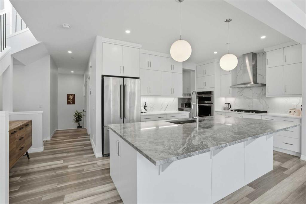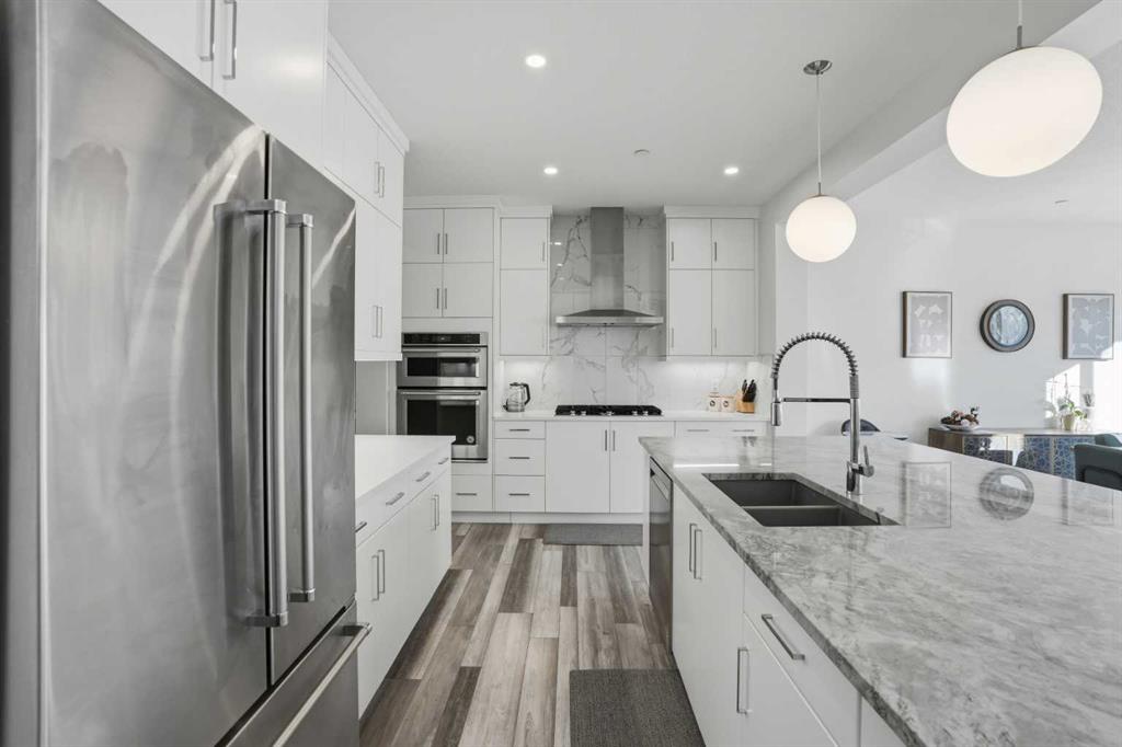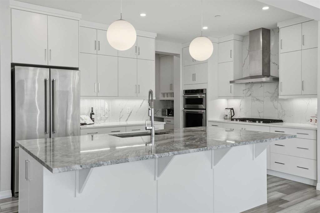 Luxury Living | 3 Beds | 2.5 Baths | 2,619 SqFt | Gorgeous Modern Finishes | Expansive Living Space | Chef's Kitchen | Sparkling Quartz Countertops | Gas Cooktop | Built-in Stainless Steel Appliances | Spacious Kitchen Island with Barstool Seating | Walk-through Pantry | Mud Room | Main Level Office | High Ceilings | Electric Fireplace | 2 Furnaces, 1 with Central AC | SMART Lighting & Garage Control | Large Windows | Great Natural Light | 3 Upper Level Bedrooms | Upper Level Family Room & Laundry | 12 Solar Panels | Unfinished Basement with Future Potential | Fully Fenced Backyard | Rear Deck | Great Lawn | Double Attached Garage | Sanjha Punjab Nearby. Welcome home to your stunning 2-storey family home boasting 2,619 SqFt throughout the main & upper levels with an additional 1,088 SqFt in the unfinished basement. This home has spectacular modern finishes that shine throughout. Open the front door to a foyer with great walk-in closet for an organized space. Step into the main level where you'll find a home office & a welcoming open floor plan kitchen, dining & living area great for entertaining. The kitchen is outfitted with full height cabinets, a gas cooktop, stainless steel appliances, sparkling quartz countertops & a grand centre island with barstool seating. The kitchen has a walkthrough pantry that leads to the mud room connecting your interior garage to the rest of the home. The dining & living rooms are full of natural light as they are framed with sliding glass doors & large windows that overlook the backyard. The sliding glass doors off the dining room make an easy transition of indoor/outdoor living in the warm summer months! This leads to the deck & lawn waiting for your favourite outdoor furniture. The living room is modern & comfortable; a stunning floor to ceiling marbled tile accent wall frames an electric fireplace. The main level is complete with a 2pc powder room. Upstairs holds 3 grandiose bedrooms, 2 bathrooms, a family room & laundry room. The primary bedroom is a personal oasis with plush carpet flooring, a private 5pc ensuite bath & walk-in closet. The ensuite has a deep soaking tub, double vanities, a makeup vanity, walk-in shower & private washing closet. The walk-in closet connects to the laundry room making it extremely accessible to you. Located in the middle of the upper level is the family room; this comfortable space separates the primary bedroom from the 2 additional bedrooms. Bedrooms 2 & 3 are both a great size & share the 5pc bath which has a pocket door separating the double vanity area from the washing area making it multi-person use. Downstairs, the basement is untouched meaning you can develop this space to fit your family's needs! Having 12 Solar Panels is both eco and cost friendly. The popular Livingston Hub is only 3 blocks away providing your family with great year round entertainment and activities! The double attached garage & driveway give you ample parking. Hurry & book a showing at this incredible home today!