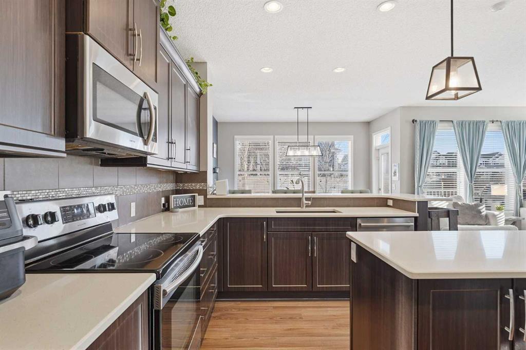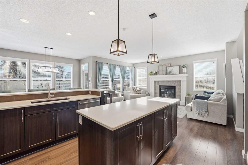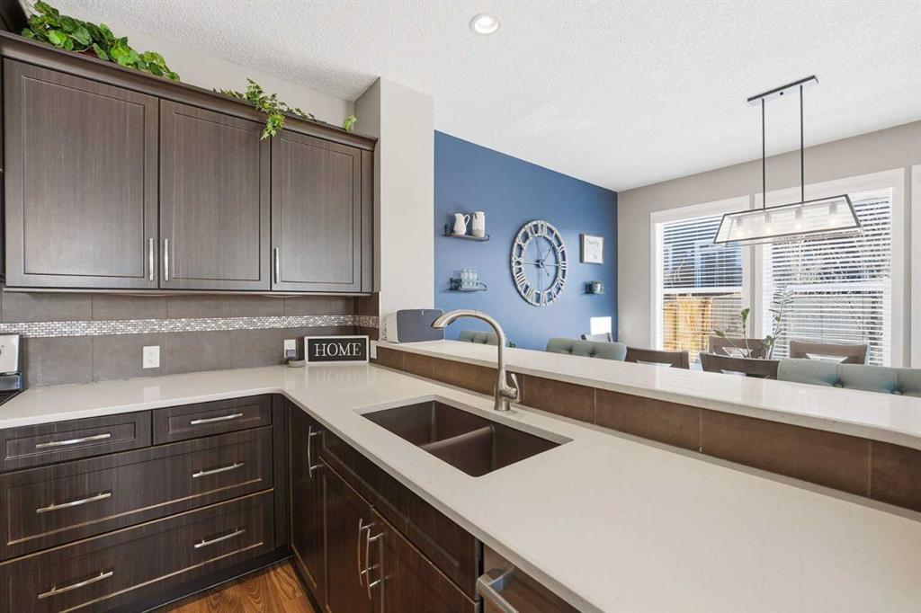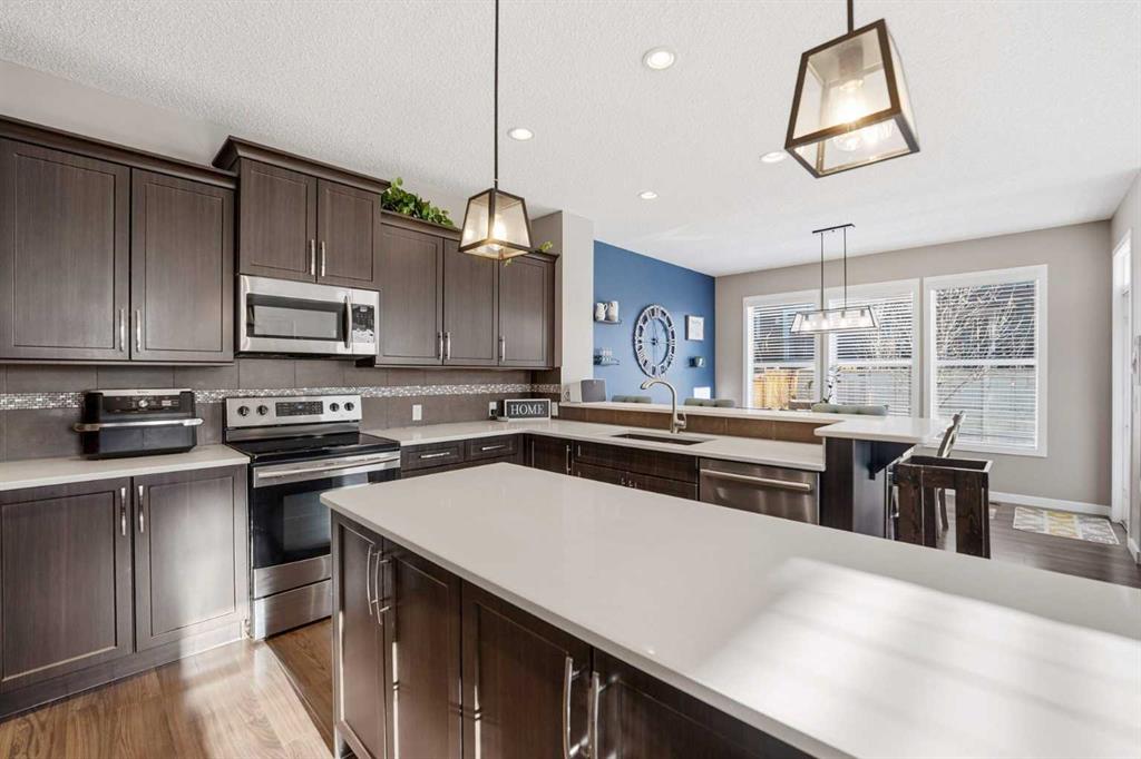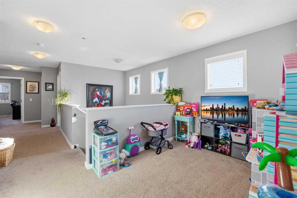 "Welcome Home" to this wonderful family designed home with plenty of room for a growing family, where style meets comfort in nearly 2300 sq ft of beautifully finished living space. Tucked away in Kings Heights on a quiet street just steps from the spectacular Kings Heights Pond and walking paths. In one of Airdrie's most popular communities, this home is just minutes to shopping, restaurants, medical care, schools, and has easy access to the Airdrie South Overpass, Calgary, and the Airport. This corner house features a double attached garage, ample street parking and a backyard that enjoys plenty of sun throughout the day. The main floor layout easily lends itself to entertaining and relaxing. The upper level features a serene retreat in the primary bedroom, 2 more good-sized bedrooms, a laundry room and an awesome space where you can take a break and relax. Don't forget the open and sunny play area on the upper floor. With modern upgrades, refreshed finished, and adaptable living space in the partially finished basement, this home delivers a comfortable, convenient and elevated everyday lifestyle.