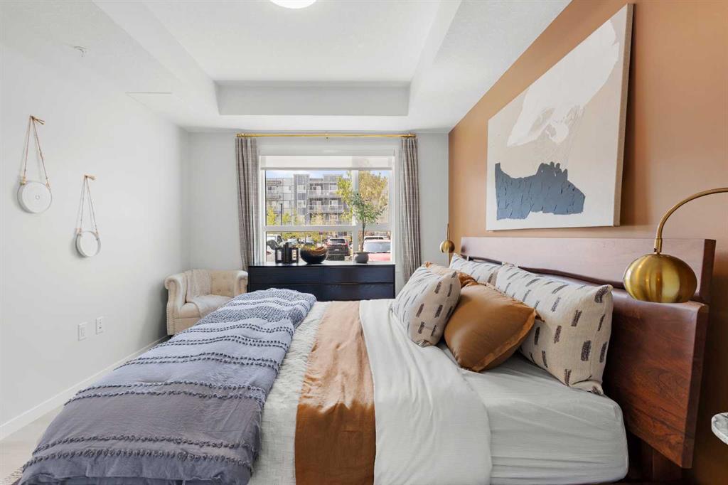 Welcome to 80 Carrington Plaza NW — a former Cedarglen show home offering elevated design, premium upgrades, and outstanding long-term value. This 1,283 sq ft main-floor condo features 3 bedrooms and 2 full bathrooms, combining refined finishes with a highly functional layout ideal for both discerning homeowners and savvy investors. The open-concept living space is anchored by a stylish fireplace and flows seamlessly into a designer kitchen complete with built-in appliances, upgraded cabinetry, a pantry, and a built-in wine fridge—features that elevate everyday living while enhancing rental desirability. As a former show home, this unit stands apart with thoughtful details, timeless finishes, and a level of quality rarely found in condo living. The primary suite offers a walk-in closet and private 4-piece ensuite, while two additional bedrooms provide flexibility for guests, home office use, or family living.