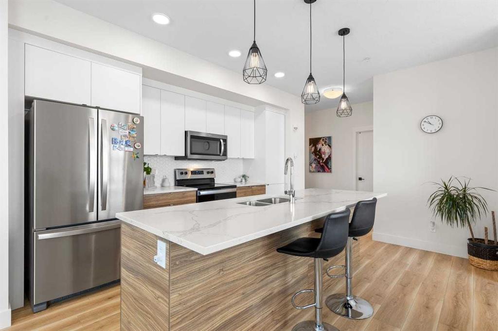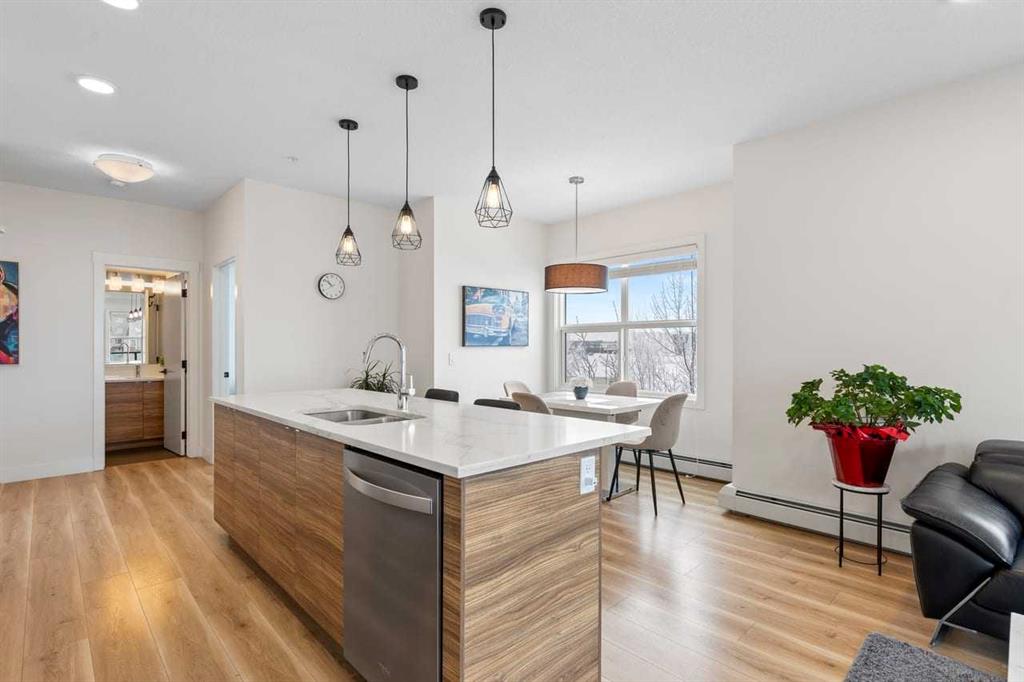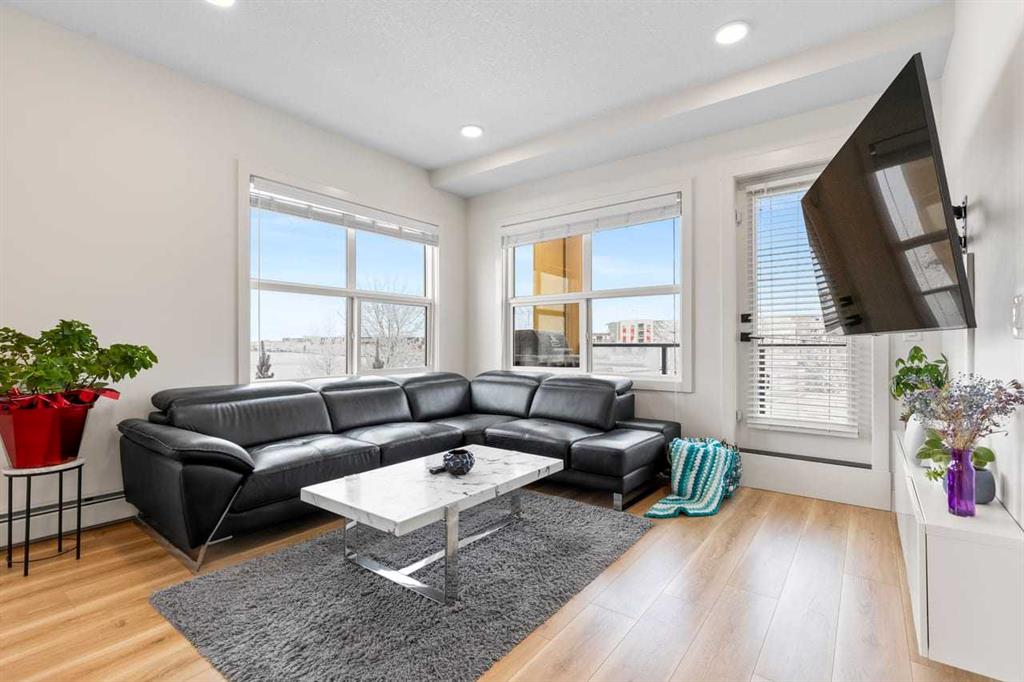 DISCOVER THS BRIGHT, WELL-MAINTAINED, OPEN-CONCEPT, CORNER CONDO LOCATED IN THE COMMUNITY OF SETON boasting modern finishes, 9-foot ceilings, and expansive natural light from large windows. The spacious layout centers around a bright dining area and a convenient kitchen layout featuring a LARGE CENTRAL ISLAND, STYLISH CABINETS, QUARTZ COUNTERTOPS, and STAINLESS STEEL APPLIANCES... perfect for everyday meals or entertaining guests. Retreat to the comfortable primary bedroom, complete with a walk-in closet and a luxurious 5-PIECE ENSUITE. This unit also includes a second 4 piece bathroom, ensuring comfort and convenience for guests or roommates. Step outside to a LARGE BALCONY that extends your living space outdoors, while the convenience of UNDERGROUND TITLED PARKING and a TITLED STORAGE LOCKER adds practical appeal. Located in excellent community of Seton, you’ll be walking distance to essential amenities including South Health Campus, JCS High School, YMCA, Superstore, Cineplex, banks, restaurants, and professional services, with quick and easy access to Deerfoot Trail for commuting and exploring the area. DON'T MISS THE OPPORTUNITY to own this bright, modern home that blends comfort, style, and an unbeatable location. BOOK YOUR SHOWING TODAY!