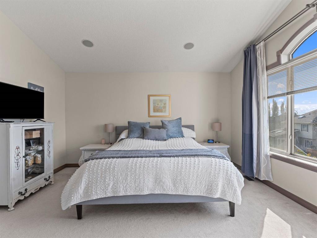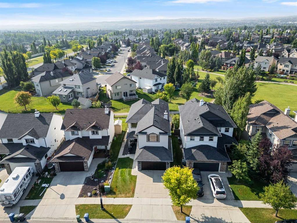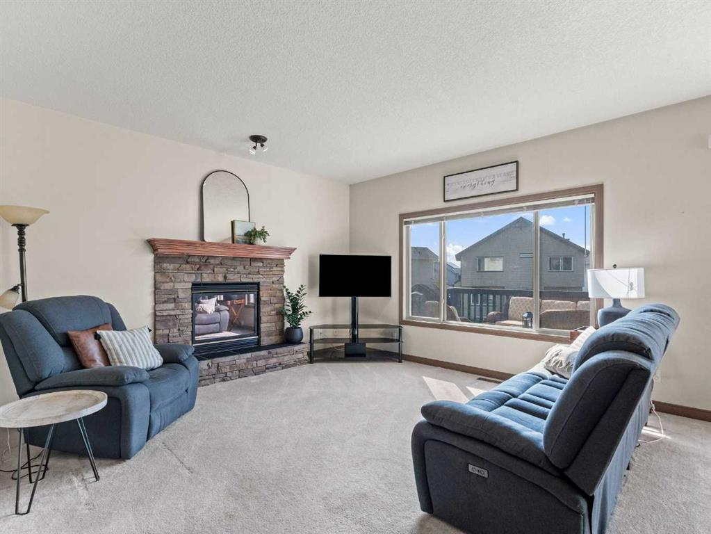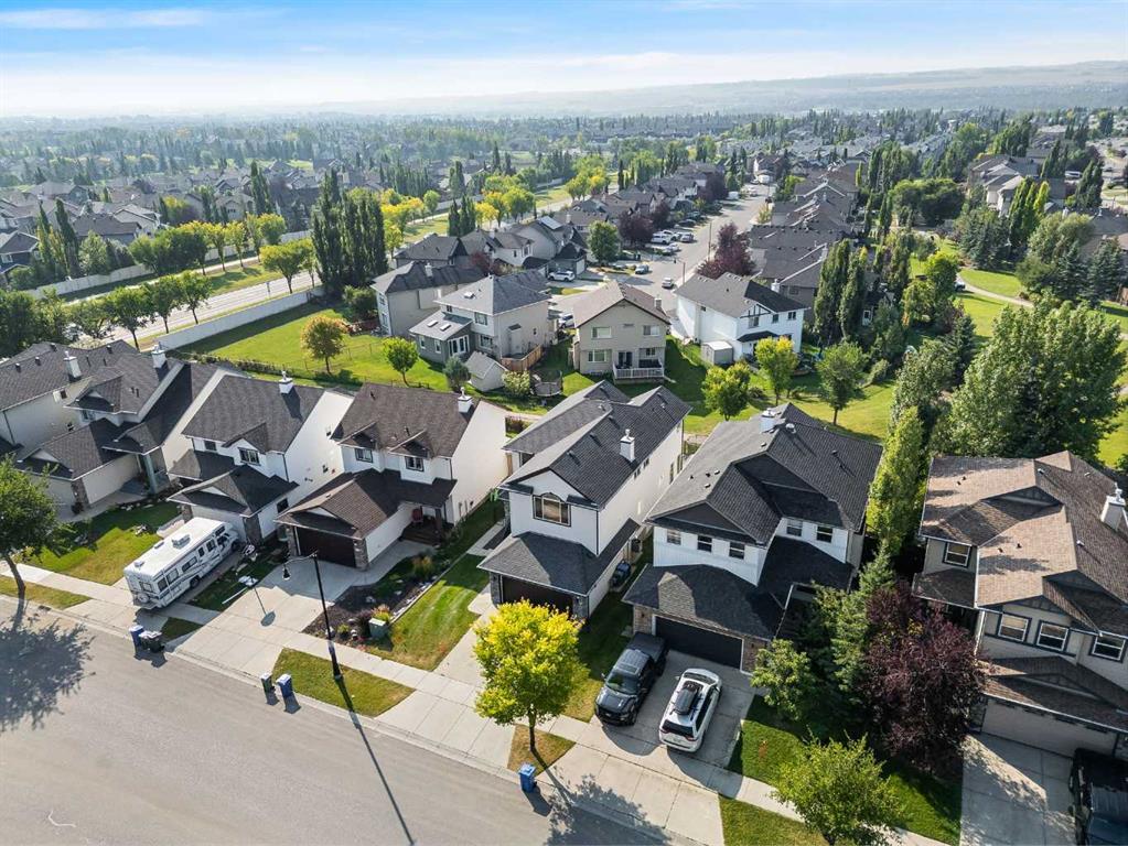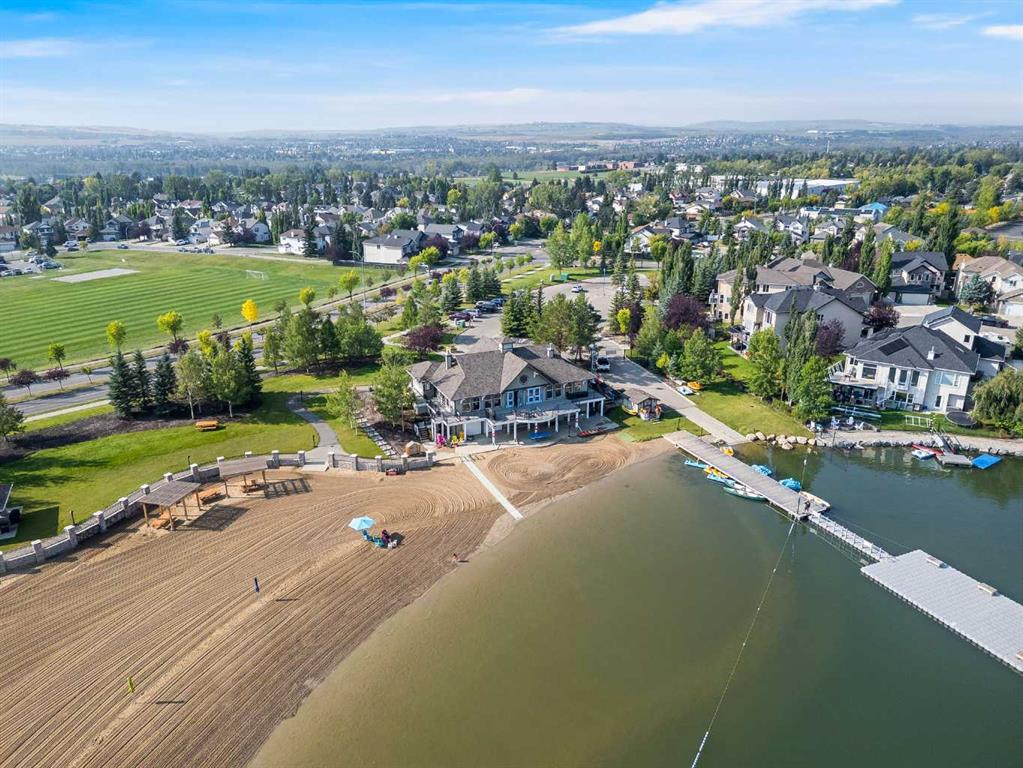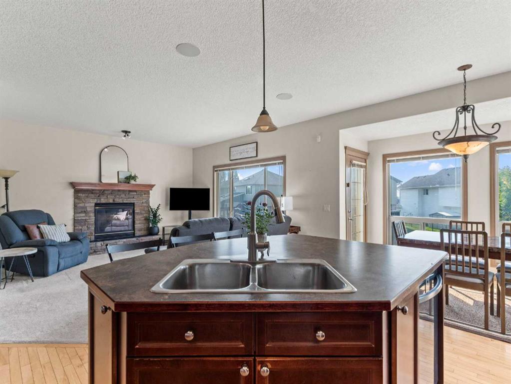 Welcome to this fully finished walkout 2-storey offering over 3,000 sq ft of living space designed for both comfort and lifestyle. Complete with air conditioning, a large garage, and a setting that backs onto greenspace and walking paths with mountain views and a park nearby, this home truly has it all. You’ll also enjoy exclusive lake access with year-round activities—swimming, fishing, paddle boarding, volleyball, basketball, and barbecues in the summer, plus skating in the winter. Add in a great school district and quick access to Calgary, just 15 minutes to South Calgary, and the location checks every box. Inside, you’re greeted by a grand entrance, where the main floor features 9-ft ceilings and hardwood flooring. A front office makes working from home easy, while the open living area offers a gas fireplace and large windows for natural light. The kitchen showcases a big island, dark stainless appliances, and flows to the dining area with access to a back deck where you can enjoy the greenbelt behind you. Upstairs you’ll find a vaulted bonus room and three bedrooms, including a large primary suite with mountain views, a walk-in closet, and a spa inspired ensuite with a jetted tub, walk-in shower, and dual sinks. The fully developed basement adds even more living space with a big bedroom, full bathroom with shower, a wet bar with cabinets, and a large open rec space that walks out to the backyard. This home blends lifestyle, location, and family-friendly features in one complete package. Call your favourite Realtor to book your private showing—homes like this don’t last long!