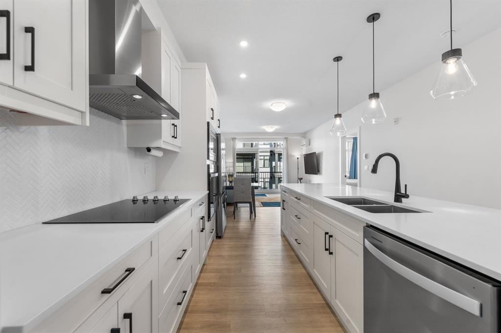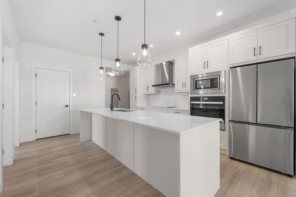 Located in Sage Hill, this third-floor corner unit at #316, 40 Sage Hill Walk NW is more than just a condo; it’s a home designed for connection, comfort, and lifestyle. Step inside to a bright and thoughtfully designed open-concept layout, where natural light pours through large windows. The heart of the home is the chef-inspired kitchen, featuring crisp white cabinetry, quartz countertops, a subway tile backsplash, stainless steel appliances, and a generous island with seating. Perfect for morning coffee or gathering with friends, this kitchen blends style and functionality.