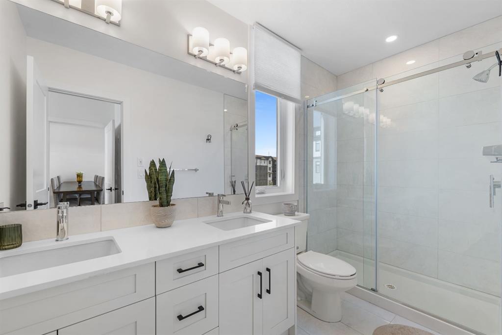 Unwind in the spacious primary suite, complete with a walk-through closet featuring upgraded built-in dressers and a 4-piece ensuite with modern finishes and a glass-enclosed shower. A second full bedroom and bathroom provide flexibility for family, guests, or a dedicated home office. With in-suite laundry and plenty of storage, every detail has been carefully considered for everyday ease.