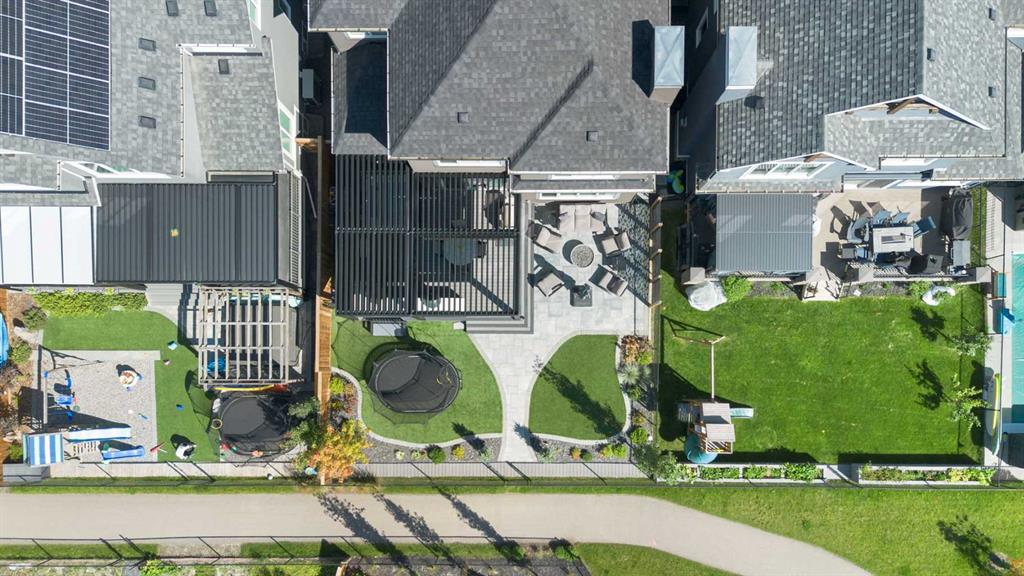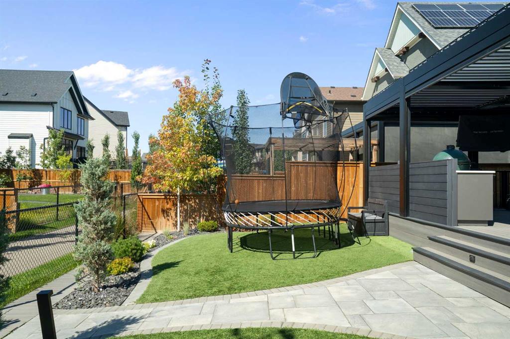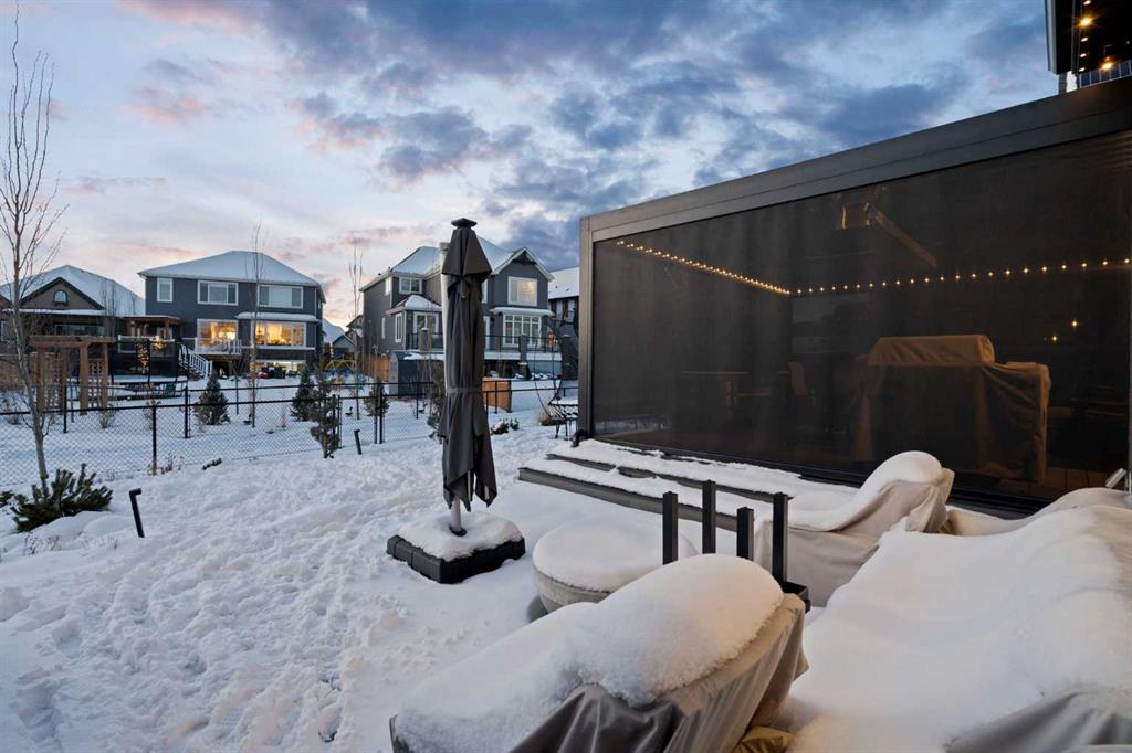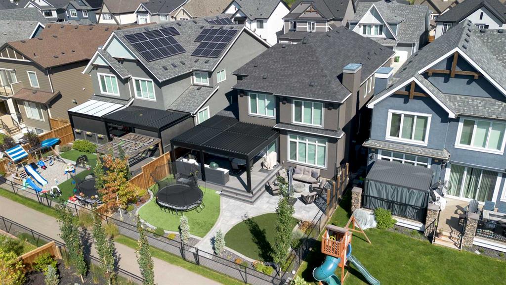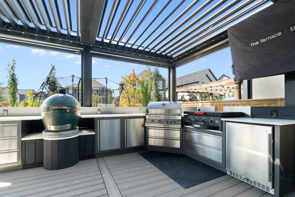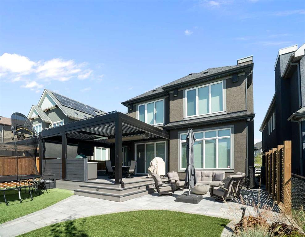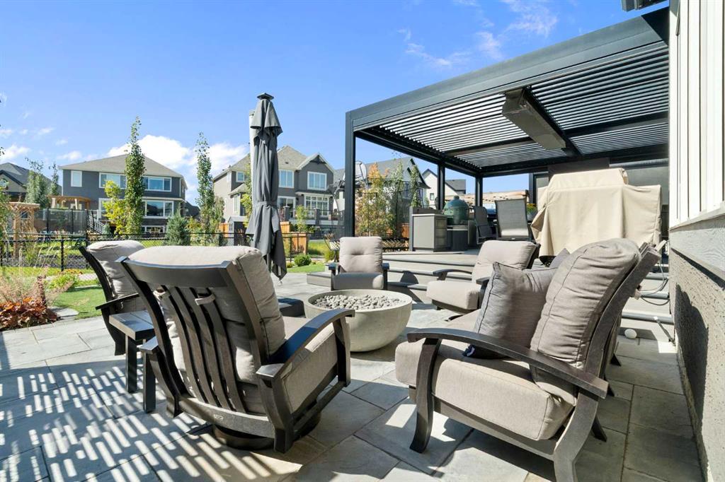 Welcome to a rare opportunity to own a truly ONE-OF-A-KIND luxury residence in Calgary’s premier lake community of Mahogany. Tucked away on a quiet cul-de-sac and backing directly onto green space with access to a semi-private dock, this exceptional home delivers an unparalleled blend of privacy, convenience, and resort-style living with quick in-and-out neighbourhood access. Set on a west-facing lot, the backyard is nothing short of spectacular — a private, resort-inspired oasis designed for both everyday enjoyment and unforgettable entertaining. A custom-built composite deck is crowned with a Suncoast retractable roof and screens, allowing you to control sunlight, shade, and privacy with ease. Outdoor living is elevated with a Hot Springs salt-water hot tub, a fully equipped outdoor kitchen featuring a BBQ and Blackstone grill, and a separate flagstone patio centered around a built-in round fire bowl. Low-maintenance artificial turf and generous gathering spaces complete a backyard that truly stands alone in design and functionality. Inside, the main level is anchored by a show-stopping chef’s kitchen with a massive granite island, premium Miele appliances, and a walk-in pantry with extensive custom cabinetry and shelving. The open-concept living and dining areas flow effortlessly, highlighted by a striking stone gas fireplace and expansive windows that flood the home with natural light. A custom mudroom with built-in benches and storage, along with a perfectly placed home office, complete the main floor with style and practicality. Upstairs, the vaulted-ceiling bonus room with faux wood beams creates instant visual impact and a welcoming family retreat. All three bedrooms are generously sized, complemented by convenient upper-level laundry. The primary suite is a sanctuary, featuring a large walk-in closet with built-ins and a spa-inspired ensuite showcasing dual vanities, a glass-enclosed shower, in-floor heat, and a luxurious soaker tub — your own private escape. The fully developed basement extends the home’s versatility with a recreation room complete with screen and projector, full wet bar, a 4th bedroom, and a full bathroom — ideal for entertaining or hosting guests. The attention to detail continues in the triple attached garage, equipped with a Reznor heater, ProSlat wall storage system, and an epoxy-finished floor. Additional upgrades include central AC, a full security system with upgraded cameras, Lutron lighting with full home automation, Hunter Douglas automated blinds, gemstone exterior lighting, irrigation, a front-yard bubbler rock, and a complete home sound system. Mahogany is Calgary’s premier lake community, where residents enjoy the city’s largest freshwater lake, sandy beaches, and a stunning 74-acre natural wetland. From sunrise paddleboarding to evening strolls along 22 km of scenic pathways, year-round recreation, and family-friendly amenities, the lifestyle here is second to none. This is more than a home — it’s a lifestyle!