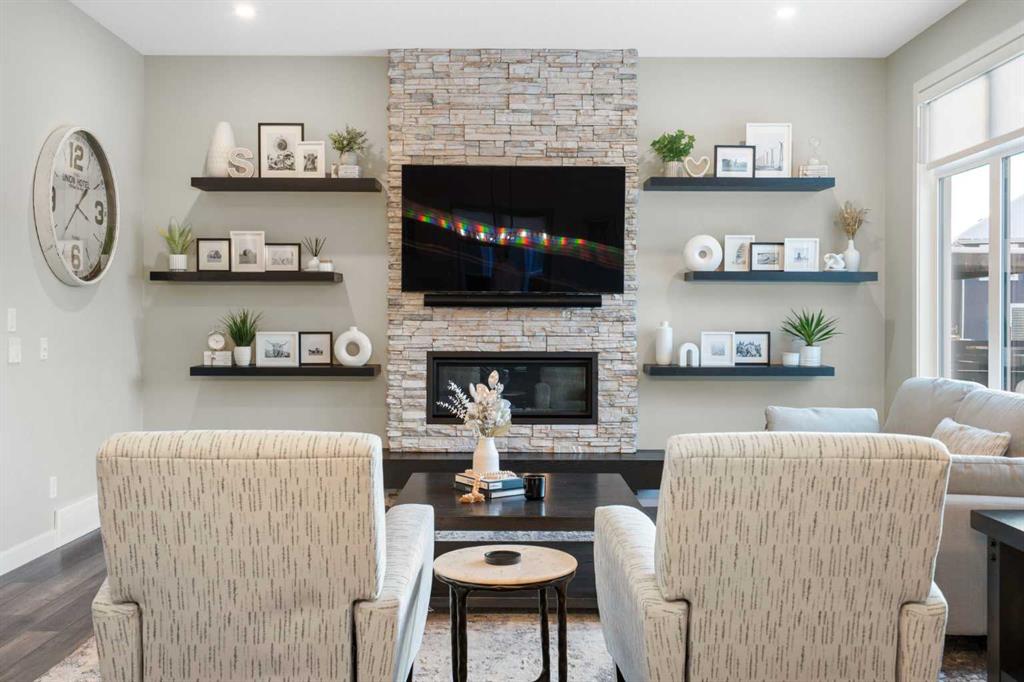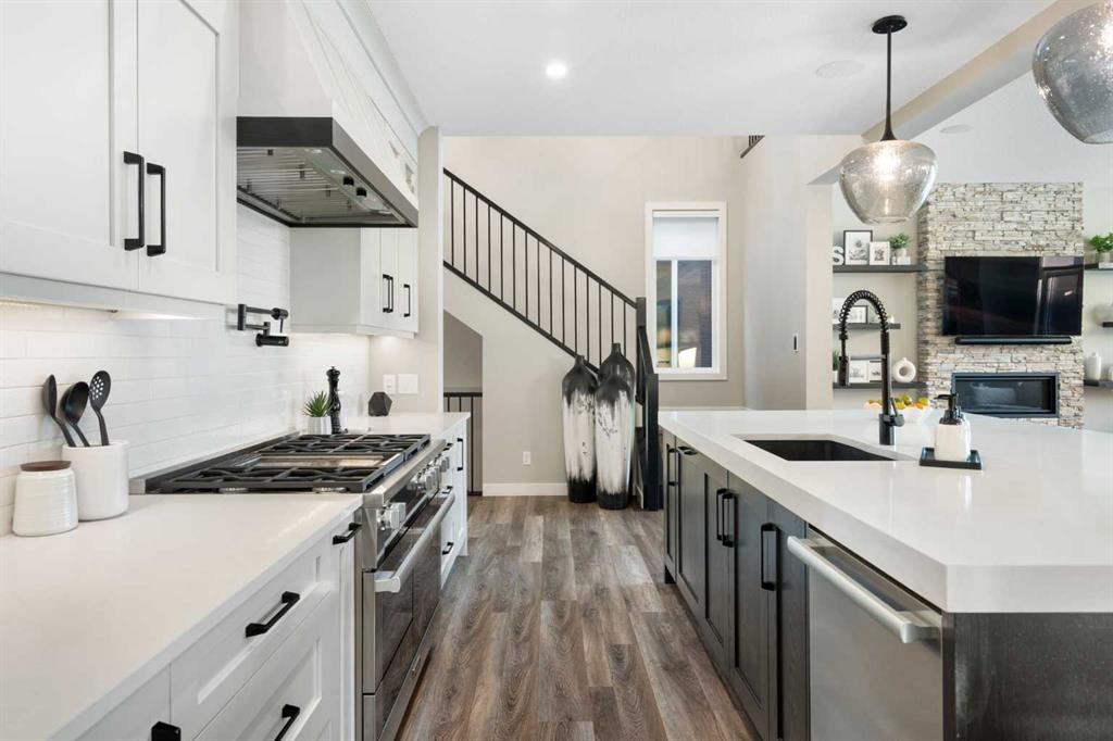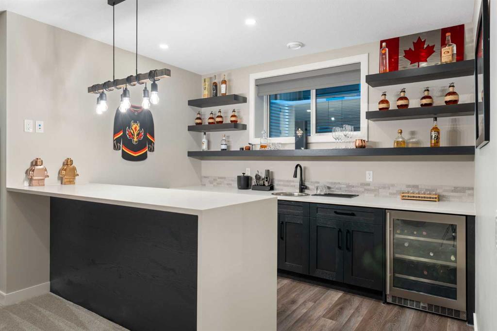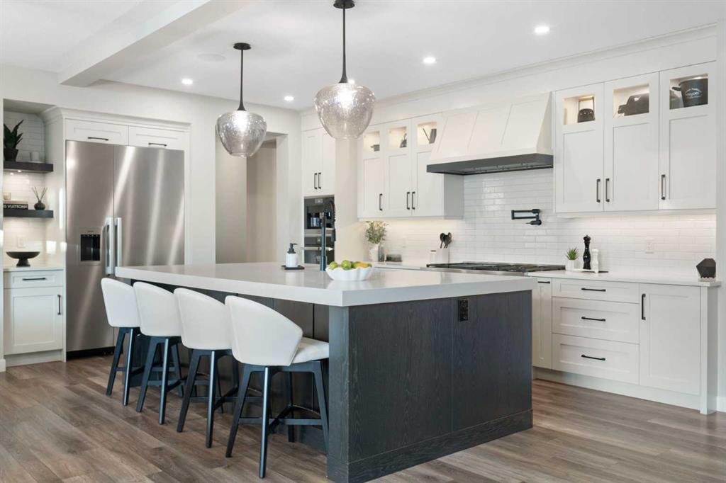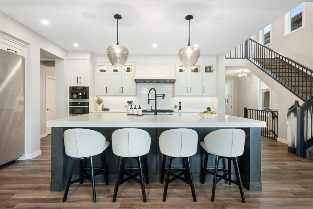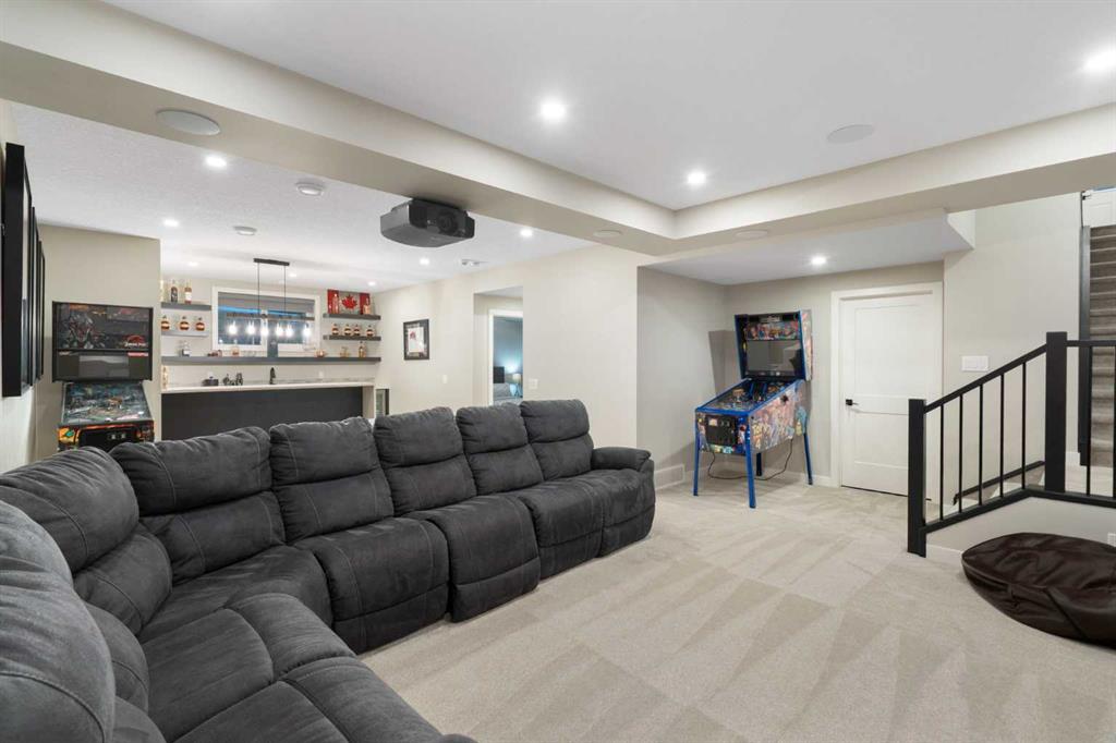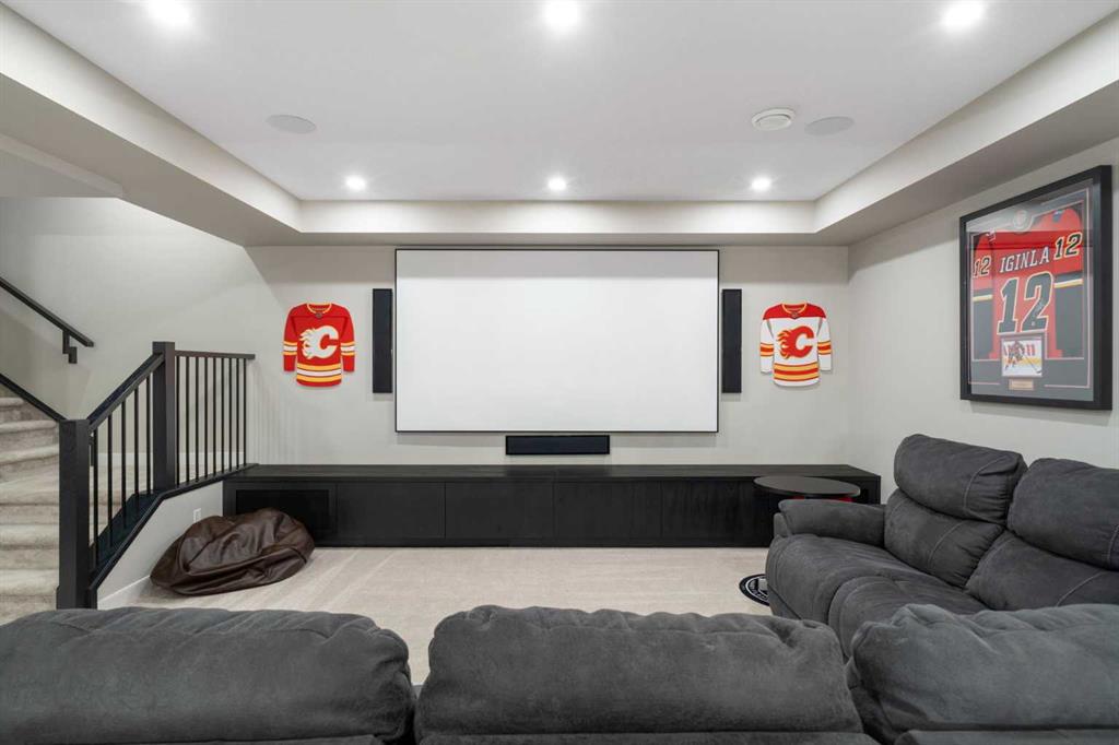 Welcome to a rare opportunity to own a truly ONE-OF-A-KIND luxury residence in Calgary’s premier lake community of Mahogany. Tucked away on a quiet cul-de-sac and backing directly onto green space with access to a semi-private dock, this exceptional home delivers an unparalleled blend of privacy, convenience, and resort-style living with quick in-and-out neighbourhood access. Set on a west-facing lot, the backyard is nothing short of spectacular — a private, resort-inspired oasis designed for both everyday enjoyment and unforgettable entertaining. A custom-built composite deck is crowned with a Suncoast retractable roof and screens, allowing you to control sunlight, shade, and privacy with ease. Outdoor living is elevated with a Hot Springs salt-water hot tub, a fully equipped outdoor kitchen featuring a BBQ and Blackstone grill, and a separate flagstone patio centered around a built-in round fire bowl. Low-maintenance artificial turf and generous gathering spaces complete a backyard that truly stands alone in design and functionality. Inside, the main level is anchored by a show-stopping chef’s kitchen with a massive granite island, premium Miele appliances, and a walk-in pantry with extensive custom cabinetry and shelving. The open-concept living and dining areas flow effortlessly, highlighted by a striking stone gas fireplace and expansive windows that flood the home with natural light. A custom mudroom with built-in benches and storage, along with a perfectly placed home office, complete the main floor with style and practicality. Upstairs, the vaulted-ceiling bonus room with faux wood beams creates instant visual impact and a welcoming family retreat. All three bedrooms are generously sized, complemented by convenient upper-level laundry. The primary suite is a sanctuary, featuring a large walk-in closet with built-ins and a spa-inspired ensuite showcasing dual vanities, a glass-enclosed shower, in-floor heat, and a luxurious soaker tub — your own private escape. The fully developed basement extends the home’s versatility with a recreation room complete with screen and projector, full wet bar, a 4th bedroom, and a full bathroom — ideal for entertaining or hosting guests. The attention to detail continues in the triple attached garage, equipped with a Reznor heater, ProSlat wall storage system, and an epoxy-finished floor. Additional upgrades include central AC, a full security system with upgraded cameras, Lutron lighting with full home automation, Hunter Douglas automated blinds, gemstone exterior lighting, irrigation, a front-yard bubbler rock, and a complete home sound system. Mahogany is Calgary’s premier lake community, where residents enjoy the city’s largest freshwater lake, sandy beaches, and a stunning 74-acre natural wetland. From sunrise paddleboarding to evening strolls along 22 km of scenic pathways, year-round recreation, and family-friendly amenities, the lifestyle here is second to none. This is more than a home — it’s a lifestyle!