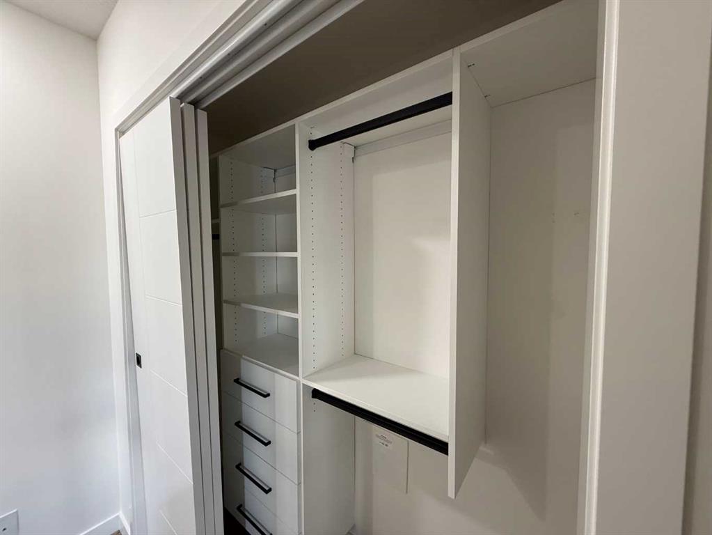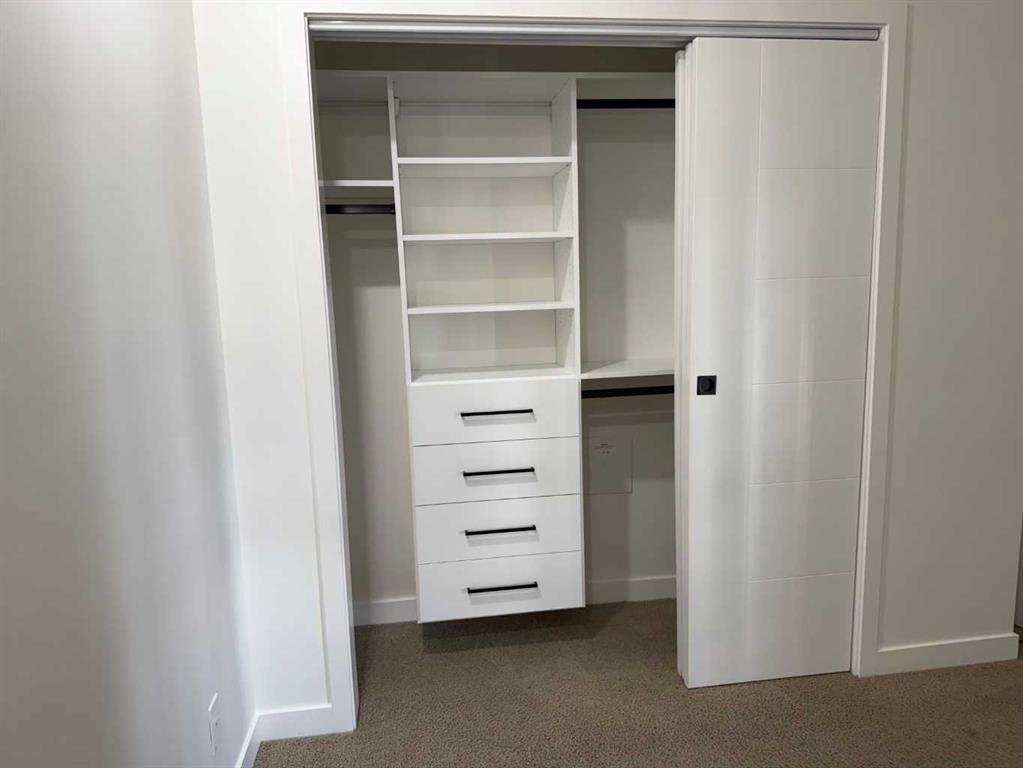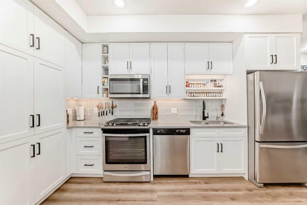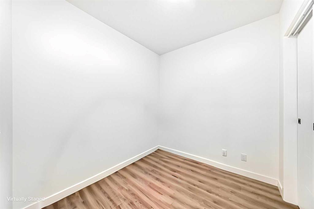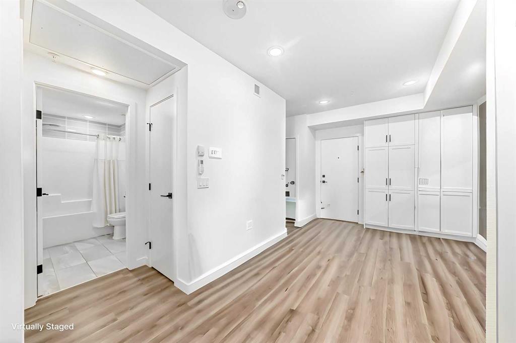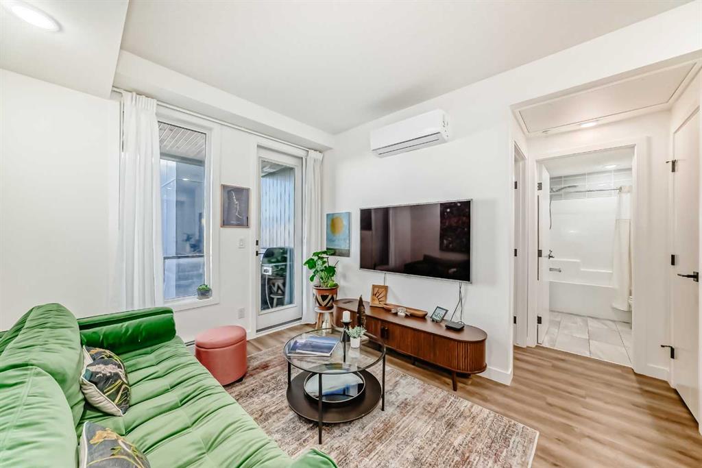 Welcome to this gorgeous 1 bed/1 bath + den unit in the heart of the University District! The unit features an open concept living space w/9' ceilings, luxury vinyl plank throughout the living space and loads of light through the large windows. The kitchen/dining features gorgeous white cabinetry, quartz counters, gas range, stainless appliances and enough space for a farm style table. The living area is great for entertaining, with mini split AC for the summer and walks out to a good sized balcony with extra storage & gas line for your BBQ., perfect for al fresco dinners The good sized primary bedroom has room for a king sized bed and amazing closet fitted with California Closet built ins. The den/office is great for those who work or study from home & also feature closet built ins. The bright 4 piece bath & in unit laundry complete the property. As well, there is one titled parking spot and an assigned storage unit, underground visitor parking, bike storage & car wash. The August in University District features a warm contemporary lobby and large common room w/kitchen, perfect for celebrating with family & friends. The building is ideally located next to the Alt Hotel by Le Germaine & Charcut restaurant, one block from the Children's Hospital, just blocks from U of C, and a quick walk to Save On, Cineplex cinemas, fitness centres, and many more restaurants & services. As well, it's close to the Bow River, Bowness Park, the Calgary Farmers Market and Winsport., and an easy jaunt out to the mountains. Book your showing today!