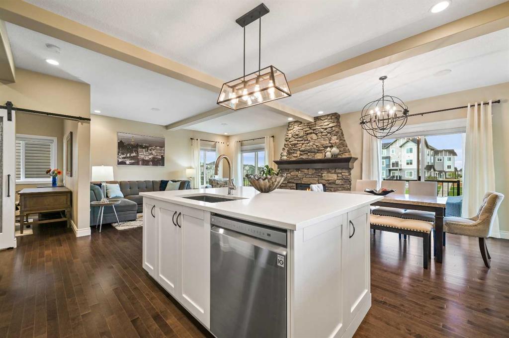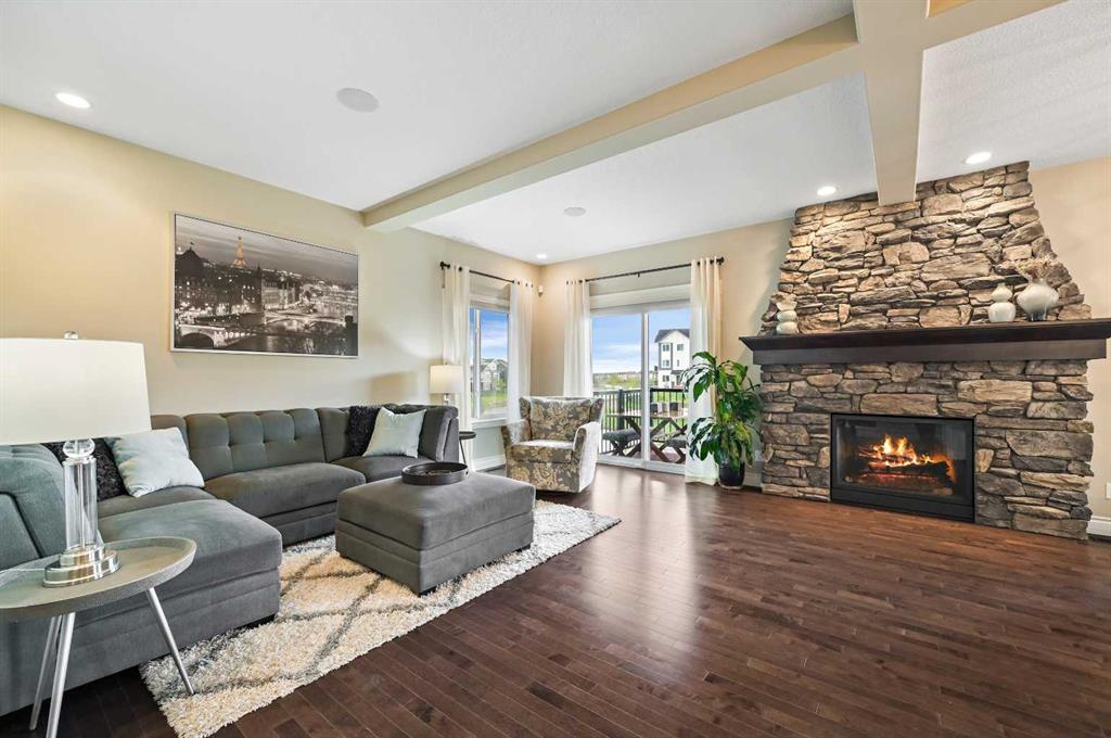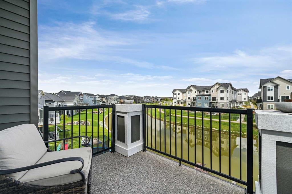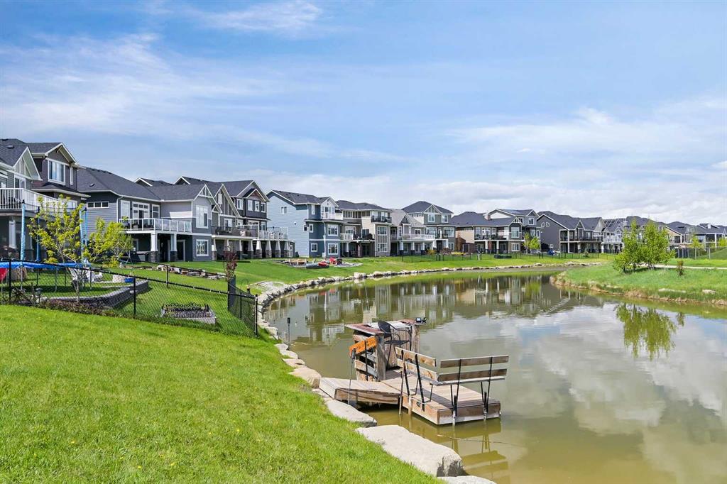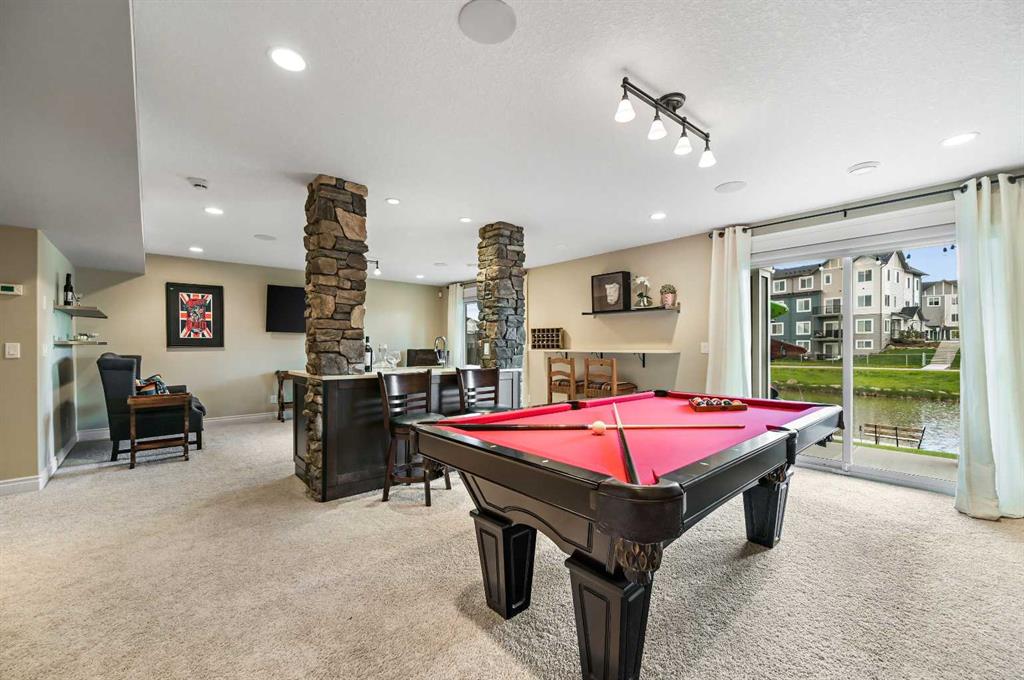 OPEN HOUSE Sat Jan 10th from 12pm - 2pm. Welcome to this WATERFRONT home on an oversized 7,290 sq ft lot in Bayside Estates, offering one of the most sought-after lifestyles in Airdrie. Backing directly onto the Bayside canal with a private dock, this former McKee showhome (original owner, took possession in Nov 2018) delivers year-round enjoyment including SKATING ON YOUR OWN BACKYARD RINK, kayaking, and unobstructed water views from multiple levels to enjoy astounding sunsets and the northern lights. The main floor is thoughtfully designed with an open-concept layout, hardwood flooring throughout, and large windows that bring in abundant natural light. The living room features a floor-to-ceiling stone gas fireplace flowing seamlessly into the dining area overlooking the canal. The upgraded kitchen offers white cabinetry, stainless steel appliances (including a newer WiFi-enabled fridge), quartz countertops, and a generous food prep space. Also on the main floor is a large office, a functional garage entry with built-in seating and storage, a half bathroom, and a spacious balcony with two sets of sliding doors—an ideal spot to take in the waterfront setting. Upstairs you’ll find a large bonus room with a built-in desk, along with a spacious primary retreat overlooking the canal. The primary bedroom includes its own private balcony, a spa-inspired ensuite with a deep soaker tub, dual vanity, tiled shower, and a walk-in closet with custom built-in shelving. Two additional bedrooms are well-sized and conveniently located near the second full bathroom and upstairs laundry. The walkout basement adds excellent versatility with a large family room, pool table area, and custom bar complete with a wine fridge—well suited for entertaining, movie nights, or a home gym. The fourth bedroom includes a finished nook beneath the stairs, ideal for a children’s play area, along with another full bathroom. Mechanical features include a full built-in media system with speakers throughout, Sonos integration, and a boiler system providing in-floor heat in the basement. As a former showhome, the oversized heated garage is fully finished with in-floor heating, ceiling texture, lighting, built-in speakers, and an extended bay ideal for bikes, motorcycles, or workshop space. Additional highlights include Gemstone architectural exterior lighting, underground sprinklers, and a rare extra-wide waterfront lot. This is a well-maintained home offering a unique lifestyle in Airdrie that needs to be seen to be fully appreciated.