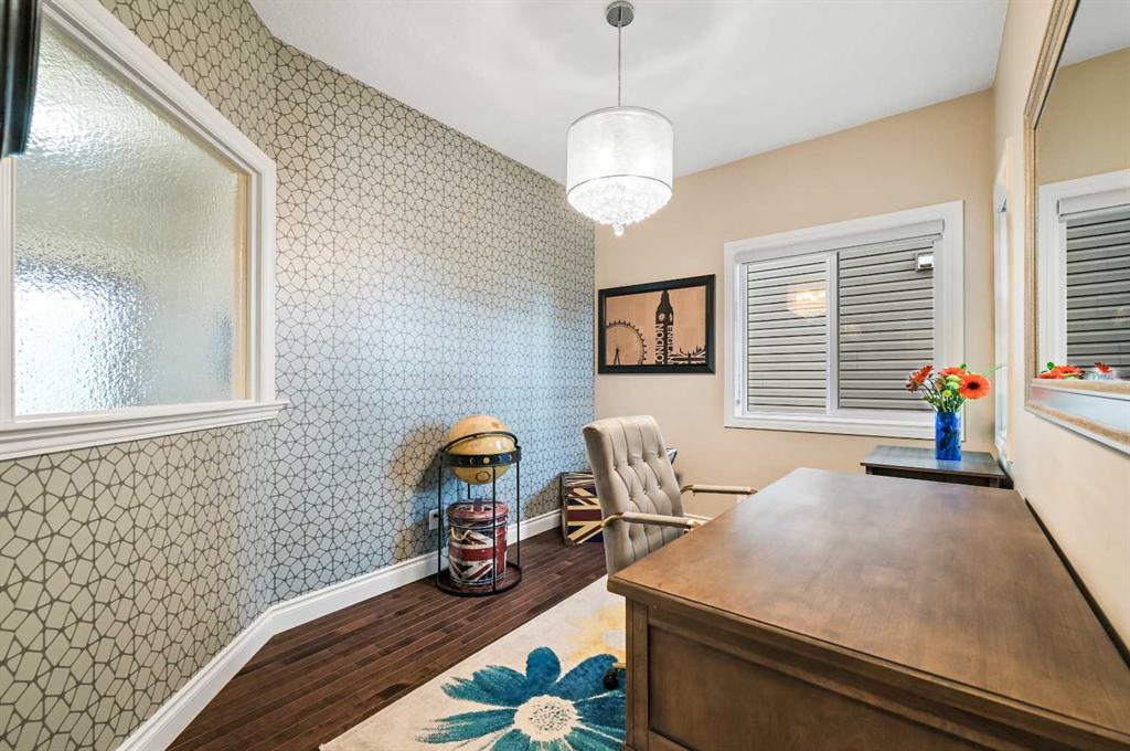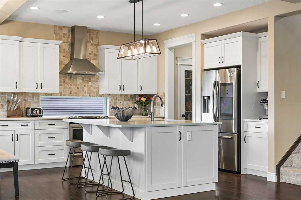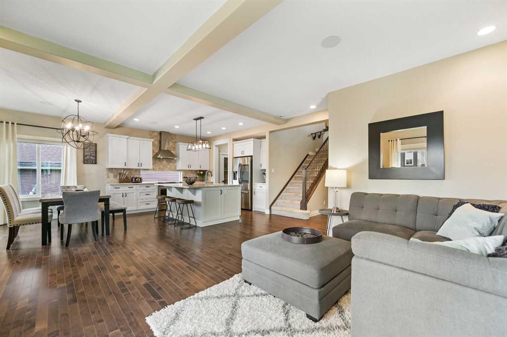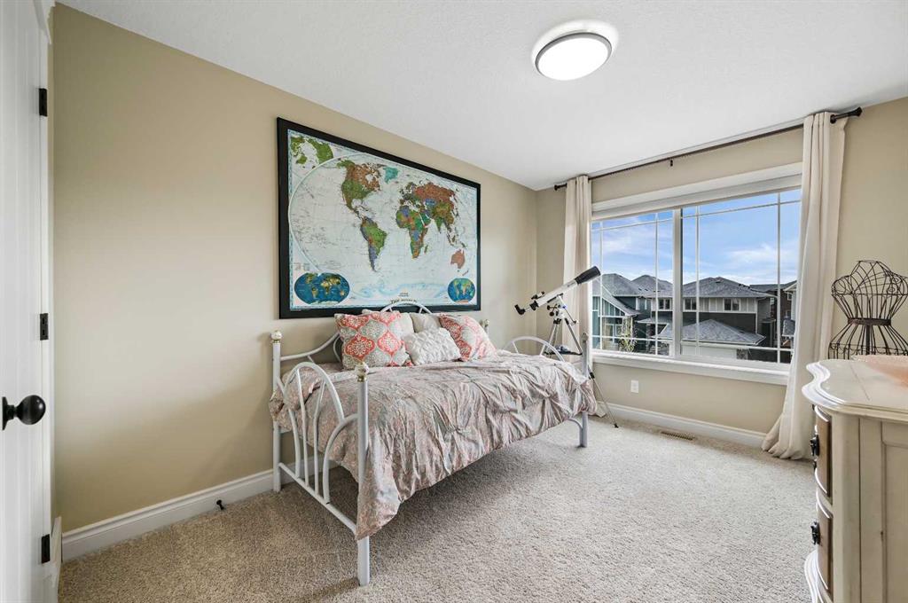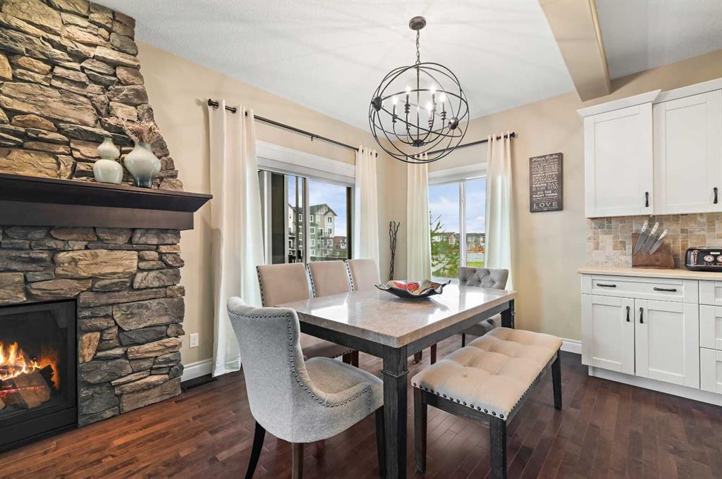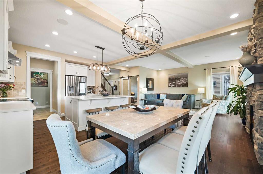 OPEN HOUSE Sat Jan 10th from 12pm - 2pm. Welcome to this WATERFRONT home on an oversized 7,290 sq ft lot in Bayside Estates, offering one of the most sought-after lifestyles in Airdrie. Backing directly onto the Bayside canal with a private dock, this former McKee showhome (original owner, took possession in Nov 2018) delivers year-round enjoyment including SKATING ON YOUR OWN BACKYARD RINK, kayaking, and unobstructed water views from multiple levels to enjoy astounding sunsets and the northern lights. The main floor is thoughtfully designed with an open-concept layout, hardwood flooring throughout, and large windows that bring in abundant natural light. The living room features a floor-to-ceiling stone gas fireplace flowing seamlessly into the dining area overlooking the canal. The upgraded kitchen offers white cabinetry, stainless steel appliances (including a newer WiFi-enabled fridge), quartz countertops, and a generous food prep space. Also on the main floor is a large office, a functional garage entry with built-in seating and storage, a half bathroom, and a spacious balcony with two sets of sliding doors—an ideal spot to take in the waterfront setting. Upstairs you’ll find a large bonus room with a built-in desk, along with a spacious primary retreat overlooking the canal. The primary bedroom includes its own private balcony, a spa-inspired ensuite with a deep soaker tub, dual vanity, tiled shower, and a walk-in closet with custom built-in shelving. Two additional bedrooms are well-sized and conveniently located near the second full bathroom and upstairs laundry. The walkout basement adds excellent versatility with a large family room, pool table area, and custom bar complete with a wine fridge—well suited for entertaining, movie nights, or a home gym. The fourth bedroom includes a finished nook beneath the stairs, ideal for a children’s play area, along with another full bathroom. Mechanical features include a full built-in media system with speakers throughout, Sonos integration, and a boiler system providing in-floor heat in the basement. As a former showhome, the oversized heated garage is fully finished with in-floor heating, ceiling texture, lighting, built-in speakers, and an extended bay ideal for bikes, motorcycles, or workshop space. Additional highlights include Gemstone architectural exterior lighting, underground sprinklers, and a rare extra-wide waterfront lot. This is a well-maintained home offering a unique lifestyle in Airdrie that needs to be seen to be fully appreciated.