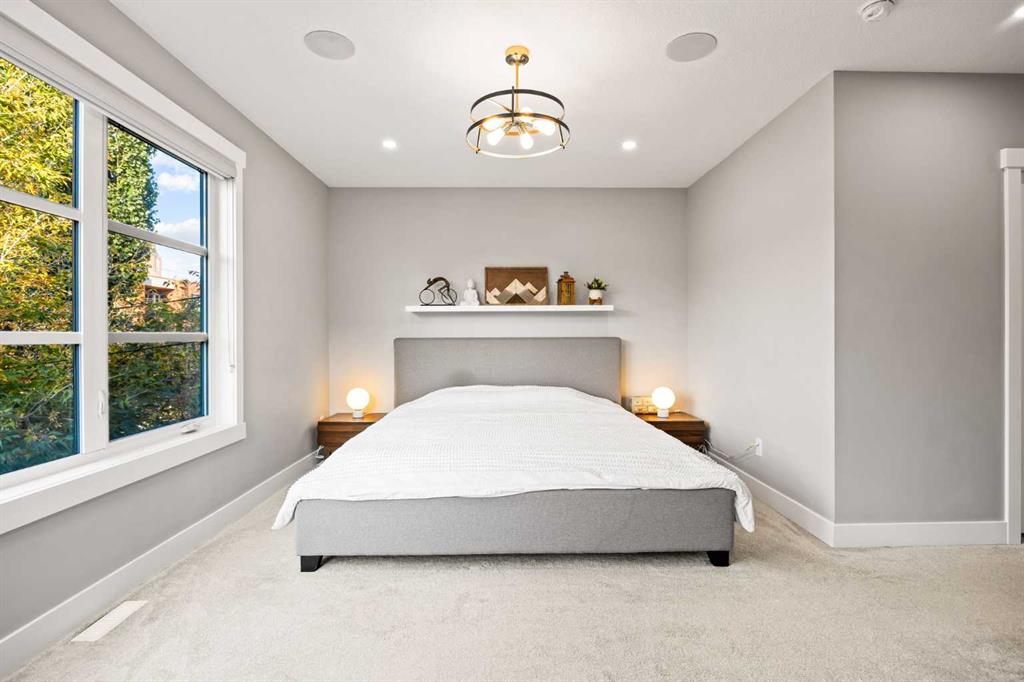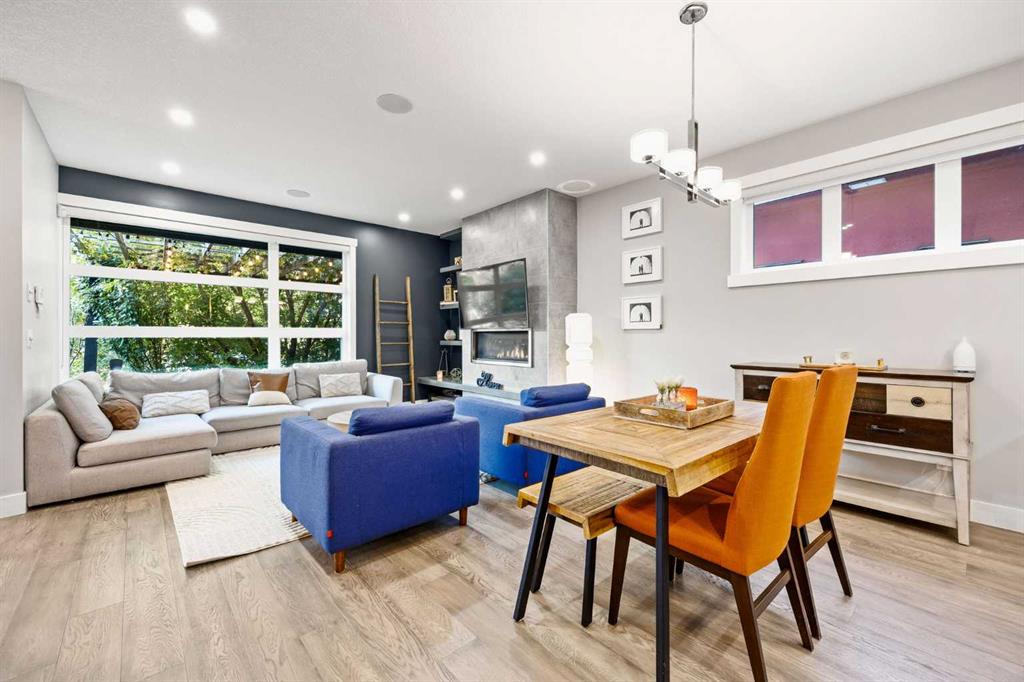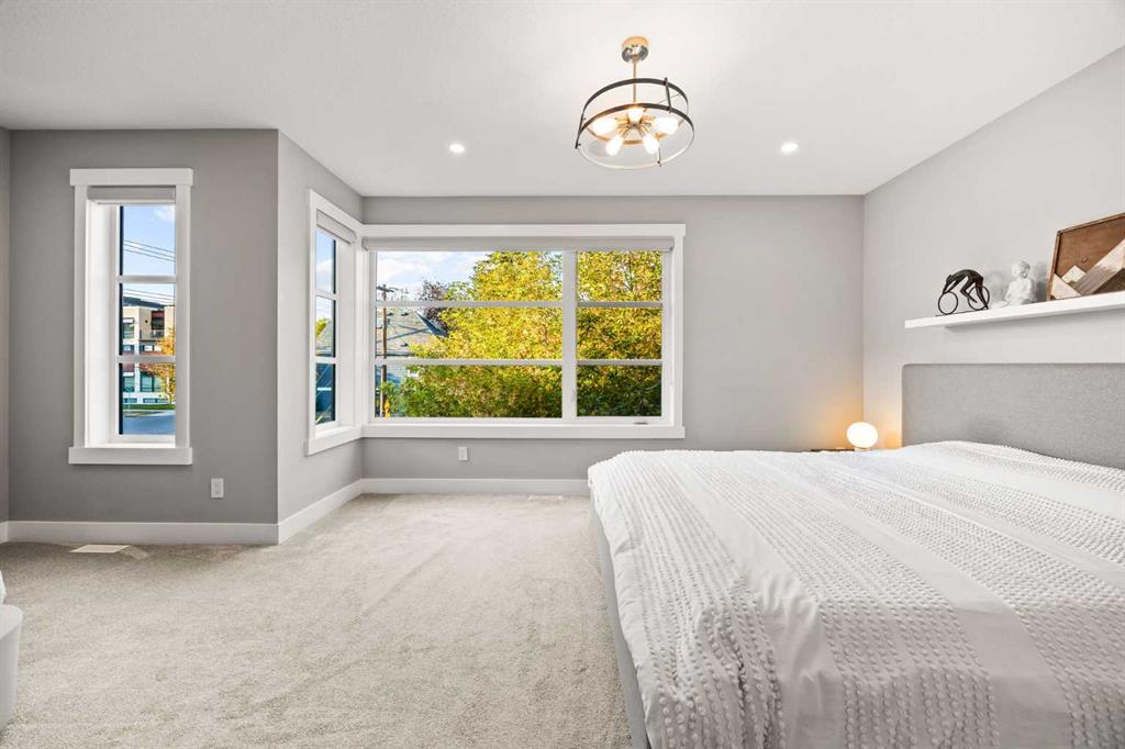 Incredible opportunity to own one of the best priced semi-detached luxury infills in the inner city. A beautiful home in the heart of Bridgeland offering all the perks of city living with no condo or HOA fees. A 5 minute walk from Downtown, Bow River Pathway, and all the amenities the beautiful community of Bridgeland has to offer. Walk or bike to work with the bike lane directly in front of your home. This is not your typical semi-detached property, offering 3 bedrooms + an office with an adjacent rooftop balcony & 3.5 baths, CENTRAL AC, situated on a 36-foot-wide lot, it offers a noticeably more open and spacious feel throughout. Perfectly situated across from Flyover Park, this home features over 2,400 sq. ft. of developed living space designed with comfort and style in mind. Upon entering, you’ll immediately notice the 9 ft ceilings and engineered hardwood flooring that flow seamlessly across the main floor. The bright, wide living room is anchored by a tile-surround gas fireplace with custom built-in shelving, extending naturally into the dining area and open concept gourmet kitchen. The kitchen showcases beautiful quartz countertops, modern white cabinetry, a subway tile backsplash, and stainless steel appliances. A tucked away pantry and 2-piece bathroom complete the main level. The open riser staircase serves as an architectural focal point connecting all levels. On the second floor, you’ll find the serene primary retreat, complete with a walk-in closet and 5-piece spa inspired ensuite. A quiet reading nook within the primary bedroom captures the morning sun through large, bright windows. This level also includes a spacious laundry room for added convenience. Heading up to the third floor, natural light floods the hallway with beautiful downtown views. The open bonus room offers flexible space for a home office, studio, or entertainment area, and opens onto the rooftop deck equipped with a built-in gas line and stunning city skyline views. This level is complete with an additional bedroom and a 4-piece bath overlooking downtown. The fully developed basement includes a spacious media room, perfect for movie nights, a fully equipped wet bar, bedroom, and 4-piece bathroom, ideal for guests or extended family.
