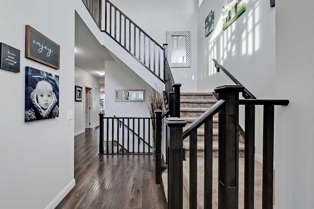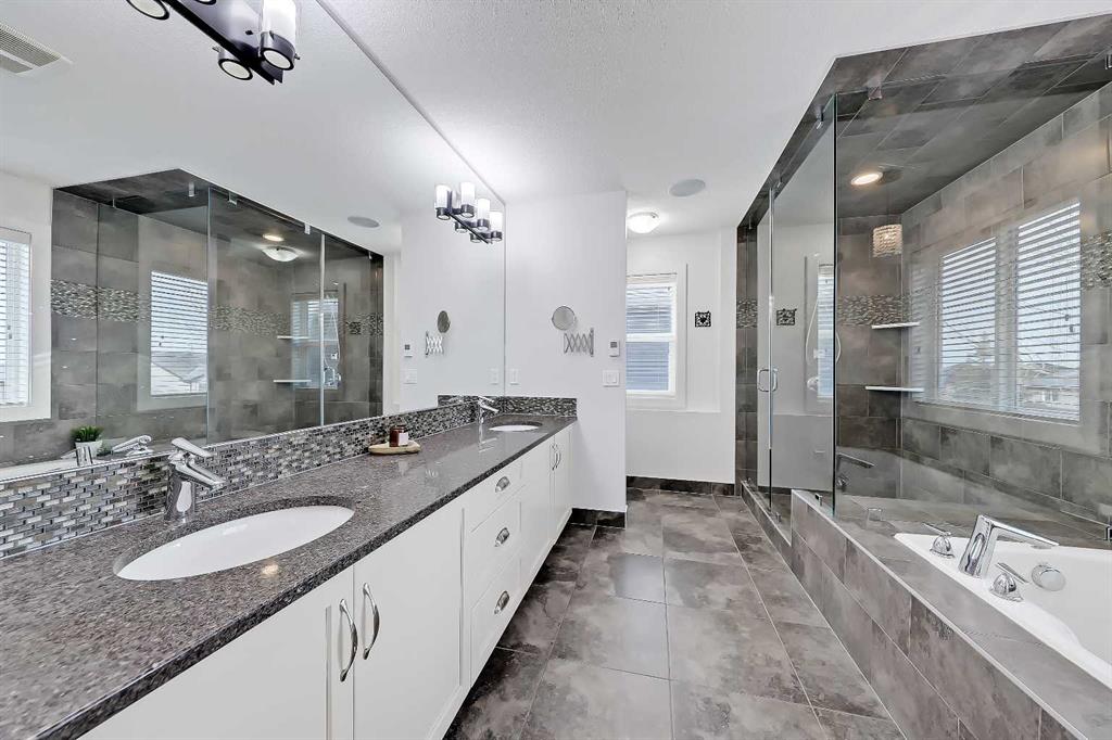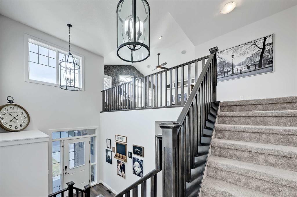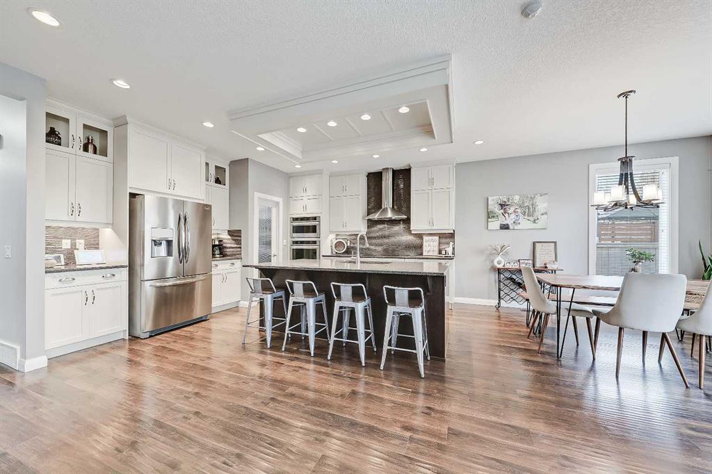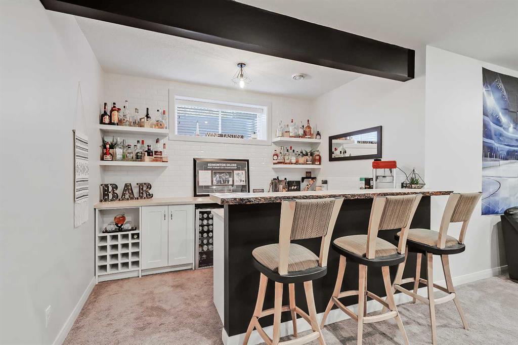 GORGEOUS ESTATE HOME | BACKING GREENSPACE & PATHWAY | OVERSIZED GARAGE | WALKABLE TO AMENITIES! Welcome to this beautifully cared for and extensively upgraded 4-bedroom home in one of Ravenwood's most connected locations. Here, you are literally steps from everything that makes the community special, including 2 schools just down the pathway behind the house, playgrounds, sports fields, outdoor rink, the pump track, pond and pathway system, Amphitheatre Park and the shops, services and restaurants at Kingsview Market and Yankee Valley Crossing. This family-friendly community also boasts quick access in and out of town via the 40 Avenue interchange on the QEII. Designed for comfortable family living, this home offers exceptionally thoughtful function and flow from the moment you step inside. A bright front entry opens to a private office with French doors, perfect for working from home. The open kitchen, dining and living areas form the heart of the property, featuring an upgraded kitchen with abundant full height cabinetry, stainless steel appliances including built-in oven and microwave, glass cooktop, large island, upgraded bulkhead lighting, walk-through pantry and a dining area that leads to the back deck. The living room is warm and inviting with its dramatic stone feature wall and generous natural light. The main level also offers a half bath and an enormous mudroom with custom built-ins that links directly to the oversized 21’5” x 22’11” attached garage and keeps daily life organized. The upper level offers an ideal layout with a bright vaulted bonus room highlighted by a full stone feature wall and a serene primary suite with expansive windows, walk-in closet and a spa-inspired 5-piece ensuite with dual sinks, relaxing oversized steam shower and soaker tub. Two additional large bedrooms, a full bathroom with a dual vanity and a dedicated laundry room with a sink complete this level. The builder-finished basement offers a large recreation area, custom bar perfect for hosting game nights or get togethers, a 4th bedroom, dedicated storage room and another full 4-piece bathroom. Outside, the backyard is a true extension of the home and living space featuring a large deck with a gazebo, mature trees and direct access to the green space and pathway behind. It’s the perfect setting for morning coffees, neighbourhood gatherings or simply relaxing and watching the kids play and enjoy the space. The long list of upgrades and additional features includes in-floor heating in the ensuite and basement bathrooms, dual zone furnace, central AC, Control4 home components, built-in speakers, 9’ ceilings, hand-scraped wide plank laminate, granite island & countertops, gas fireplace, newer fridge (water & ice), dishwasher and dryer, aggregate driveway, 18’10” x 15’5” composite deck with BBQ gas line, shed, pie lot and much more. Thoughtfully designed, beautifully maintained and set within a vibrant, family-focused community, this is Ravenswood living at its best.