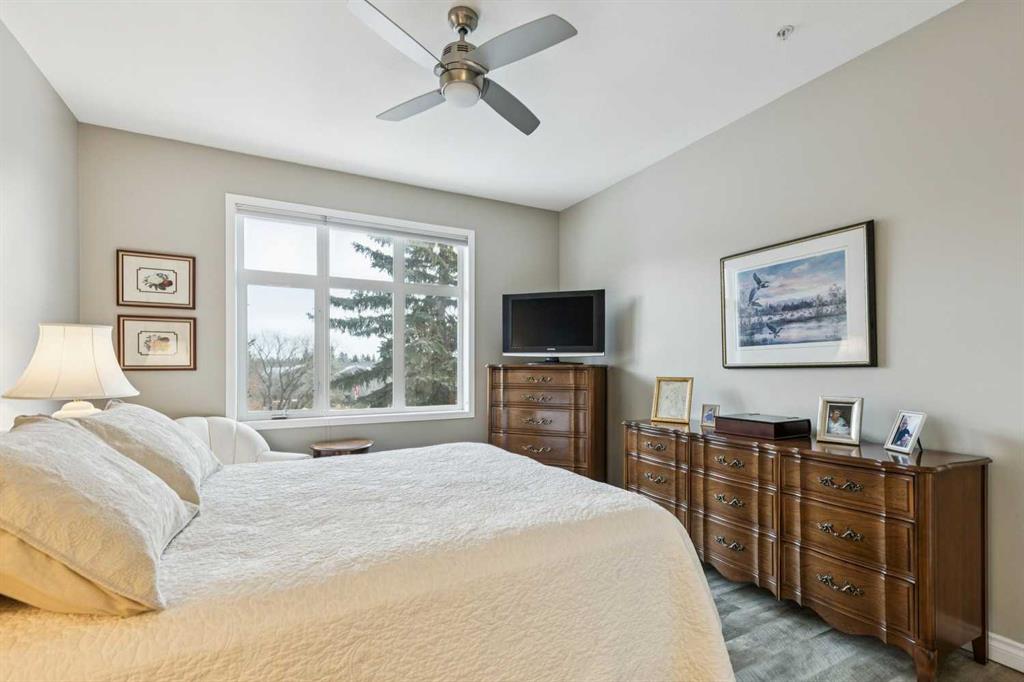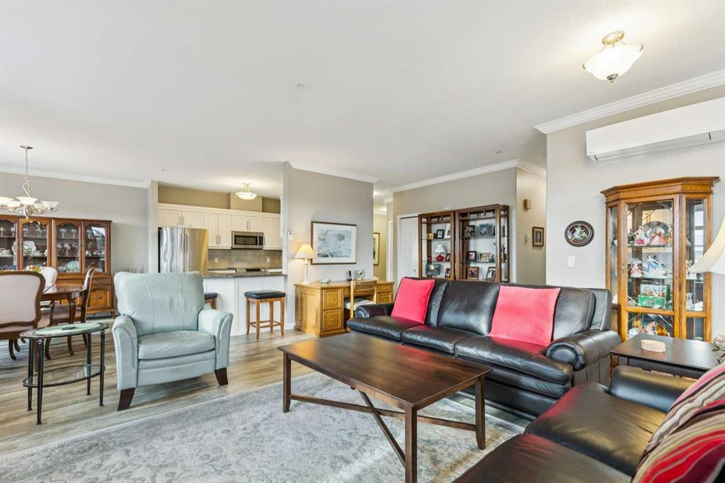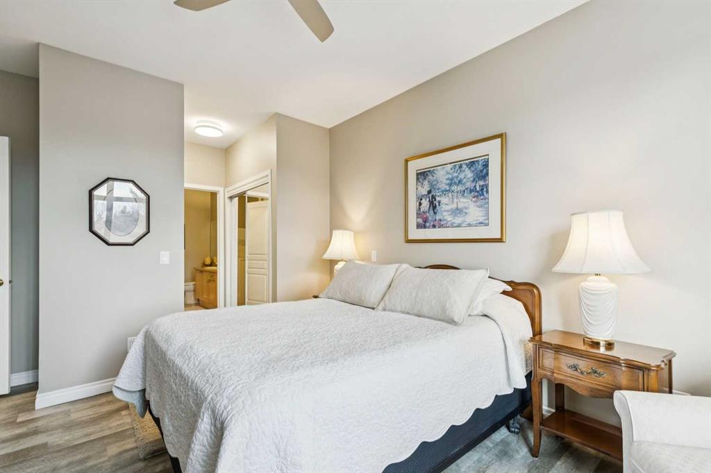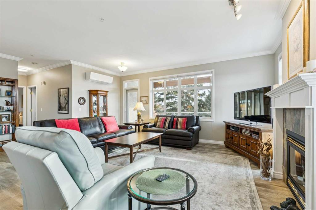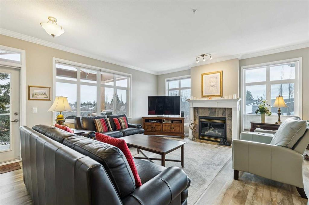 Beautifully Updated 1,307 Sq Ft Condo in Sought After Lake Bonavista. This bright two bedroom, two bathroom home offers exceptional natural light, & a thoughtfully designed layout in one of Calgary’s most desirable lake communities. Impeccably maintained this corner unit is in one of the best locations in this secure, gated complex. The well appointed kitchen features white shaker cabinetry, granite counters, a breakfast bar, & stainless steel appliances including a KitchenAid French door fridge, & a Bosch dishwasher. The open living & dining area is highlighted by 9 ft ceilings, luxury vinyl plank flooring, a gas fireplace, & large east & south facing windows. The spacious primary suite fits a king bed & includes double closets plus an ensuite with dual sinks & a walk in tub. A second bedroom, 3 piece bath, & in suite laundry complete the interior. Enjoy peaceful courtyard views and morning sun from the large balcony complete with a BBQ gas hookup. Additional features include air conditioning, titled underground parking, and an assigned storage unit. The well managed building offers outstanding amenities: a car wash bay, clubhouse with full kitchen, dining areas, an impressive stone fireplace, games & billiards space, fitness centre, 24 seat theatre, two guest suites, & ample visitor parking. All of this in a PRIME location close to public transit / LRT, Southcentre Mall, Avenida, Fish Creek Park, Trico Centre, restaurants, shops, pharmacies, and more.