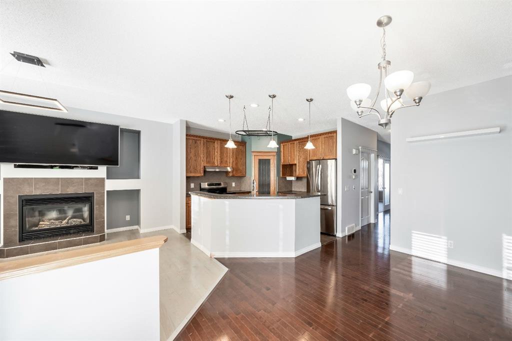 Welcome to 63 Besse Avenue, ideally situated on a quiet, family-friendly street just steps from a children’s playground—an excellent setting for young families looking to enjoy small-town living while remaining close to the city. Recent exterior siding updates enhance the curb appeal as you arrive, setting the tone for what’s inside. The main level welcomes you with hardwood flooring and freshly painted, neutral tones throughout. A large front office with French doors is perfectly positioned near the entry, offering an ideal work-from-home space or quiet study area. The kitchen is designed with both function and family life in mind, featuring stainless steel appliances, a large island with raised eating bar, corner pantry, and beautifully stained oak cabinetry. The spacious dining area easily accommodates large family gatherings or celebrations with friends. Just off the dining space, the bright, south-facing living room is filled with natural light and anchored by a cozy gas fireplace—perfect for winter evenings. Upstairs, the generous primary bedroom includes a walk-in closet and an updated ensuite highlighted by a newly tiled shower. Two additional well-sized bedrooms complete the upper level, offering comfortable space for growing children. The lower level is partially finished, with framing already in place for a large 10’ x 20’ bedroom, a full four-piece bathroom, and additional unfinished space ready for your future family room or flex area. Step outside to the expansive, south-facing deck and backyard—an ideal outdoor space for kids and pets to play, and one of the many reasons families love Langdon living. This welcoming community offers three schools, including a brand-new high school, along with a growing selection of shops, restaurants, medical services, and everyday conveniences. Enjoy the peaceful lifestyle Langdon provides, just minutes east of Calgary. Book your private showing today and see why so many families are choosing to call Langdon home.