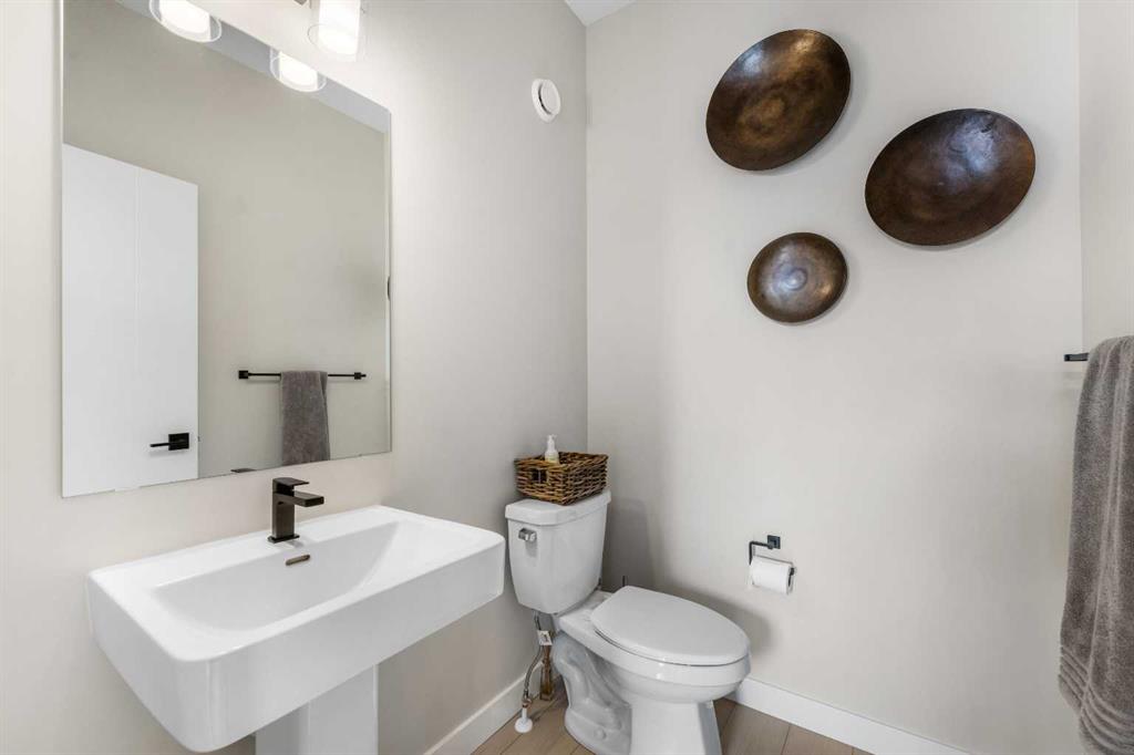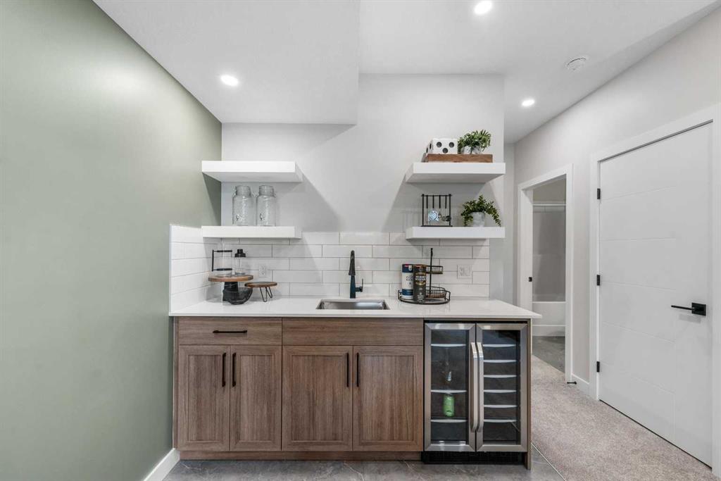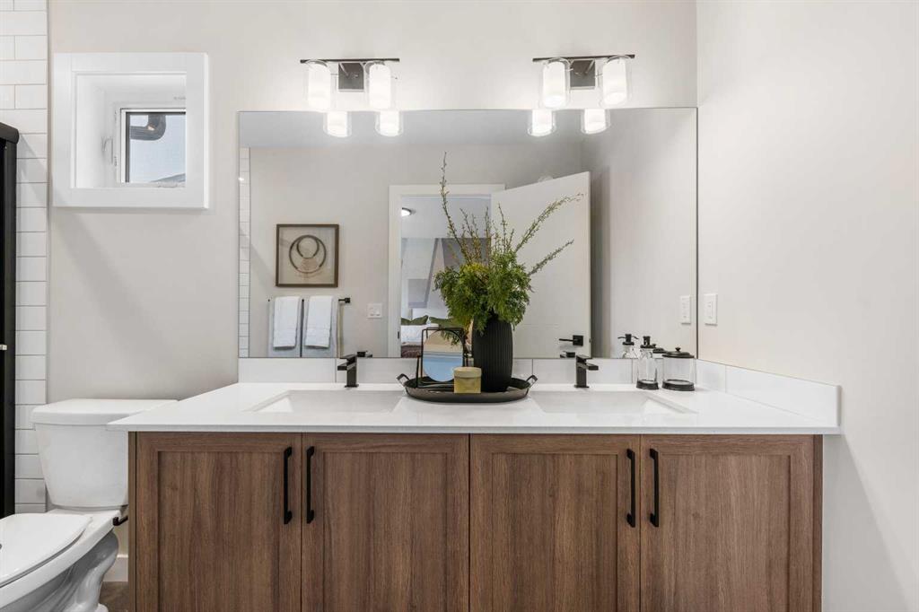 Welcome to the former Edward model showhome by Partners Homes, located in the southeast Calgary community of Logan Landing. This fully finished home offers a well-planned layout, thoughtful finishes, and the added peace of mind of builder’s new home warranty. Additional highlights include central air conditioning and a detached garage that is insulated, drywalled, and heated. The main floor features a welcoming entry with a large front closet, a convenient powder room, and a flexible front room suitable for a home office or additional living space. The kitchen is bright and practical, with a central island, window over the sink, two-tone cabinetry extended to the ceiling, and a walk-in pantry. Open dining and living areas flow comfortably together, while the rear mudroom provides everyday organization. Upstairs, the primary bedroom includes a walk-in closet and a four-piece ensuite with dual sinks and a fully tiled shower. A central bonus room separates the primary bedroom from two additional bedrooms, offering privacy and flexibility. A full bathroom and side-by-side laundry complete this level. The fully developed basement with a separate side entrance adds valuable living space and versatility. This level includes a large open recreation area with a built-in bar, beverage fridge, and shelving, along with an additional bedroom, a full bathroom, and ample storage. Logan Landing offers access to the Bow River, ponds, parks, playgrounds, and an extensive pathway network. The community is minutes from the Seton Urban District with shopping, schools, healthcare, and entertainment, and provides convenient access to Deerfoot Trail. This former showhome presents a rare opportunity to own a fully finished, move-in-ready home in one of Calgary’s newest southeast communities.