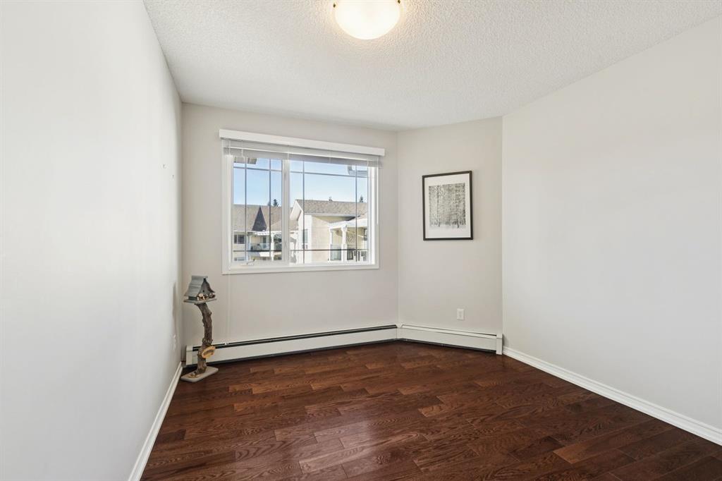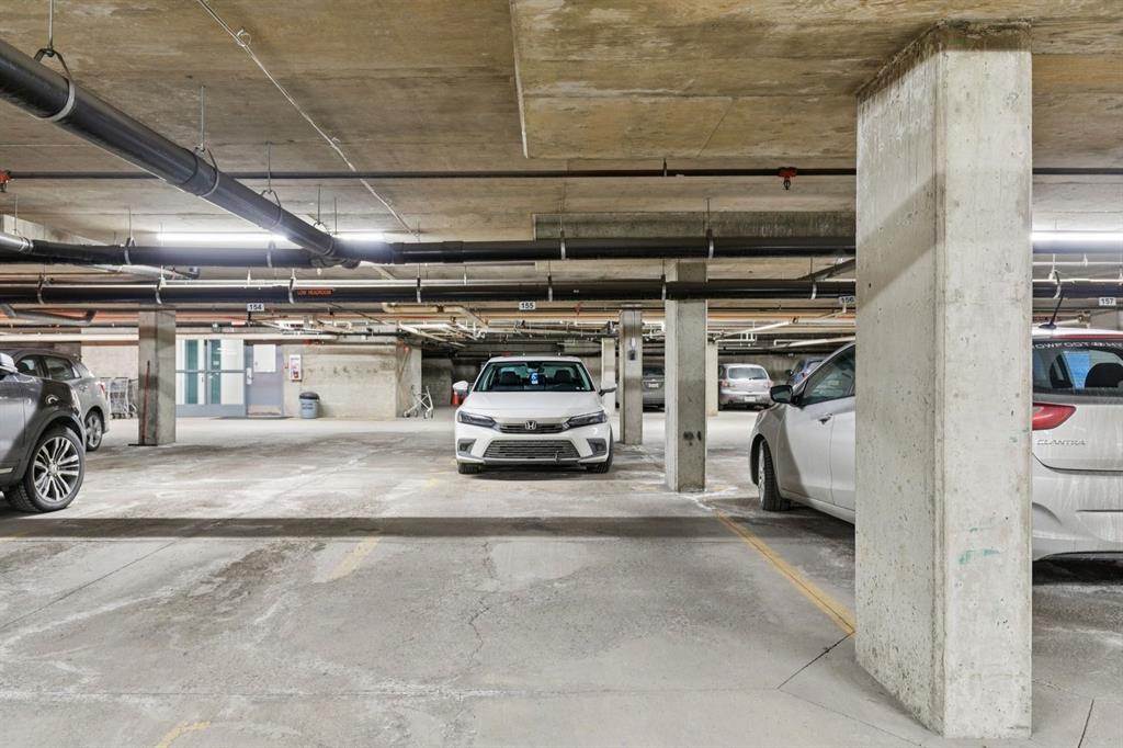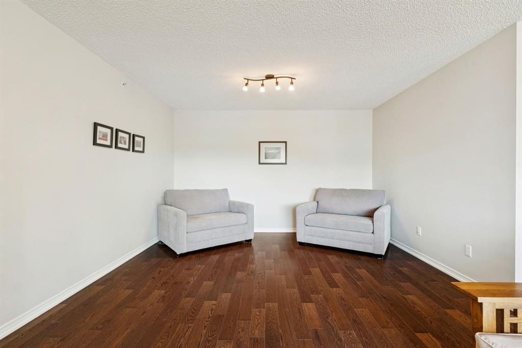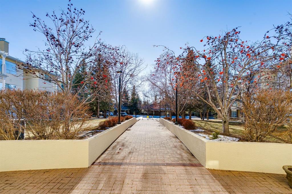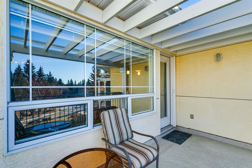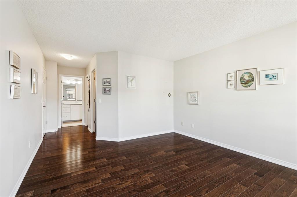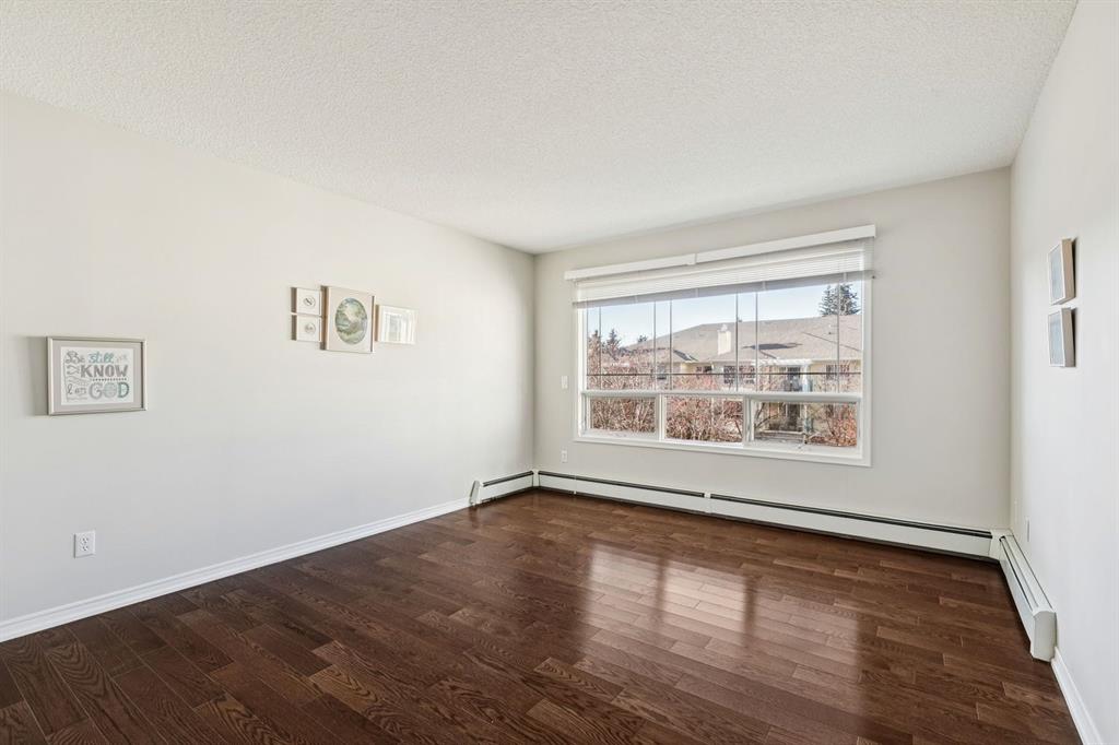 Enjoy peaceful, maintenance free adult living in the sought after community of Palliser at Courtyards West Park. This well managed condominium building offers a top floor, southwest facing home with a bright, open layout designed for comfort and ease, featuring two bedrooms, updated hardwood floors, and a spacious balcony with gas hookup overlooking the tranquil courtyard, perfect for morning coffee or relaxing evenings. A welcoming foyer leads to the formal dining area and a bright, thoughtfully designed kitchen with crisp white shaker style cabinetry, quartz countertops, raised breakfast bar for casual meals, pantry, and newer appliances. The generous living room easily accommodates both a comfortable seating area and a reading nook or home office, and features a cozy gas fireplace for year round enjoyment. Convenient in-suite laundry includes built-in storage, a folding counter, and ample space for a freezer, making daily routines effortless. Down the hall, you’ll find a full bathroom and two spacious bedrooms, including the primary. The primary retreat is a true sanctuary, offering a large sleeping area, walk-in closet, additional linen storage, and a private 4pc ensuite with a deep soaker tub and separate walk-in shower. This unit includes a titled underground parking stall and an assigned, secure caged storage unit, ideal for seasonal items. Residents of Courtyards West Park enjoy outstanding amenities, including a welcoming main floor gathering room with kitchen, library, and sunroom that opens to the beautifully landscaped courtyard, providing wonderful opportunities to socialize, host family, or meet neighbours. Ideally located near parks and walking paths, recreation facilities, Rockyview General Hospital, and the shops and cafés of Glenmore Landing, this well managed adult community offers a relaxed lifestyle with everyday conveniences close at hand.