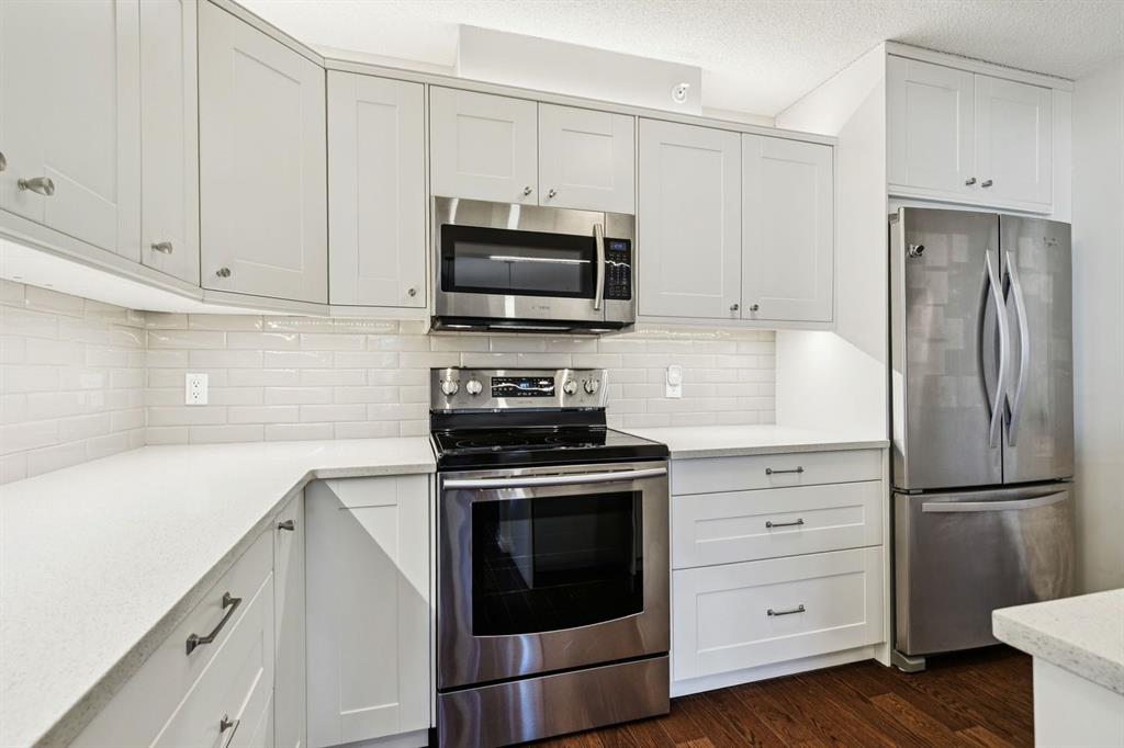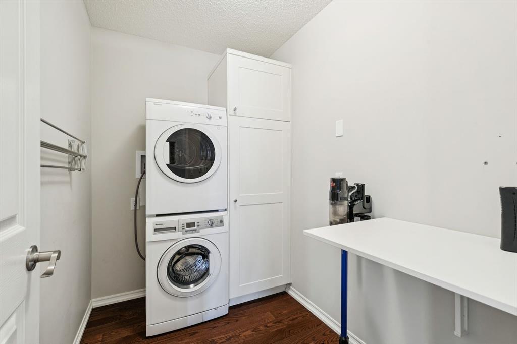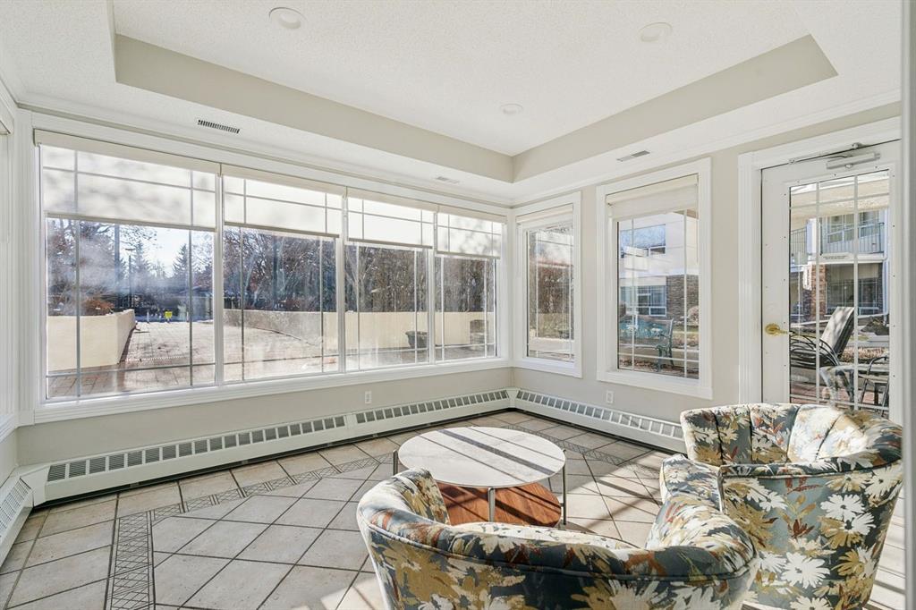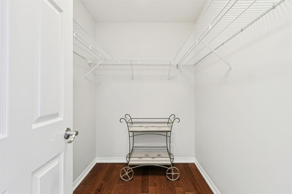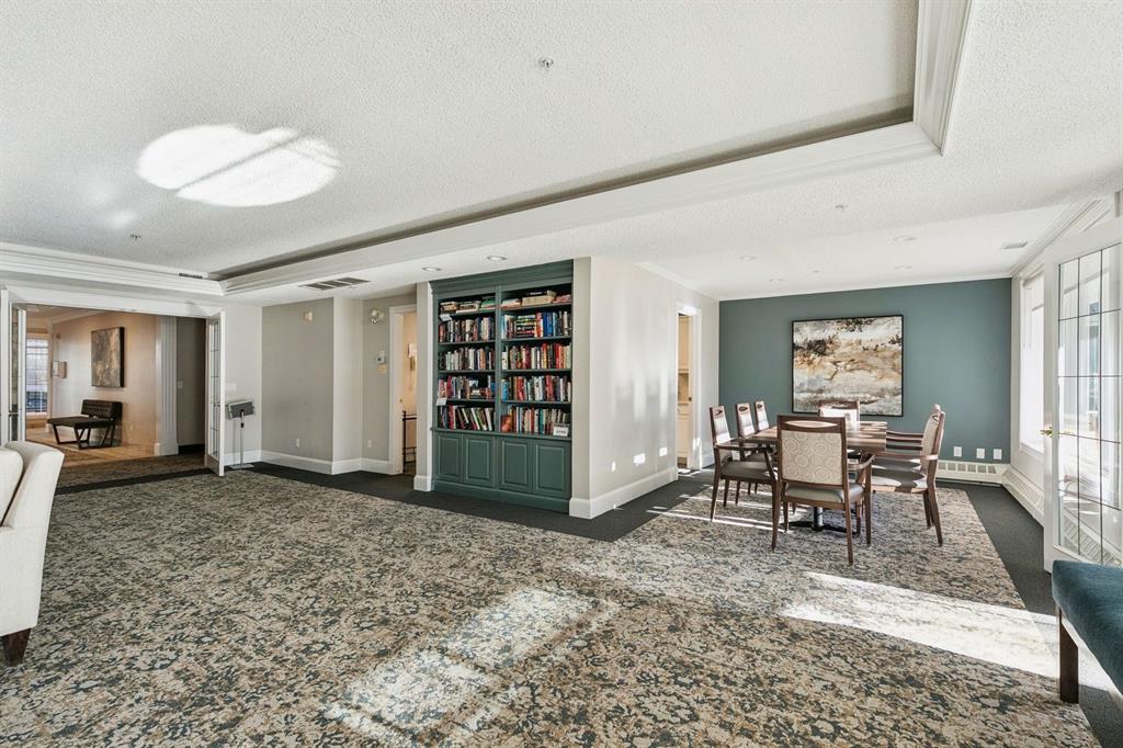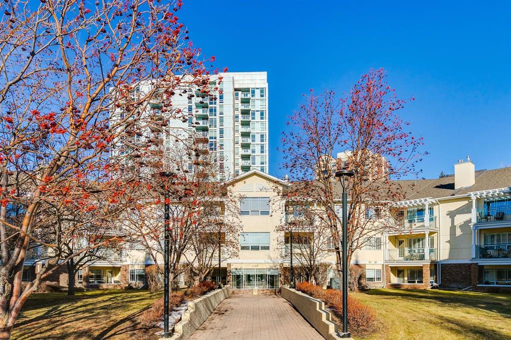 Enjoy peaceful, maintenance free adult living in the sought after community of Palliser at Courtyards West Park. This well managed condominium building offers a top floor, southwest facing home with a bright, open layout designed for comfort and ease, featuring two bedrooms, updated hardwood floors, and a spacious balcony with gas hookup overlooking the tranquil courtyard, perfect for morning coffee or relaxing evenings. A welcoming foyer leads to the formal dining area and a bright, thoughtfully designed kitchen with crisp white shaker style cabinetry, quartz countertops, raised breakfast bar for casual meals, pantry, and newer appliances. The generous living room easily accommodates both a comfortable seating area and a reading nook or home office, and features a cozy gas fireplace for year round enjoyment. Convenient in-suite laundry includes built-in storage, a folding counter, and ample space for a freezer, making daily routines effortless. Down the hall, you’ll find a full bathroom and two spacious bedrooms, including the primary. The primary retreat is a true sanctuary, offering a large sleeping area, walk-in closet, additional linen storage, and a private 4pc ensuite with a deep soaker tub and separate walk-in shower. This unit includes a titled underground parking stall and an assigned, secure caged storage unit, ideal for seasonal items. Residents of Courtyards West Park enjoy outstanding amenities, including a welcoming main floor gathering room with kitchen, library, and sunroom that opens to the beautifully landscaped courtyard, providing wonderful opportunities to socialize, host family, or meet neighbours. Ideally located near parks and walking paths, recreation facilities, Rockyview General Hospital, and the shops and cafés of Glenmore Landing, this well managed adult community offers a relaxed lifestyle with everyday conveniences close at hand.