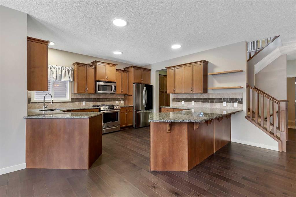 Discover This Impressive 3 + 1 Bedroom Home in Westridge, Okotoks! Explore this stunning home situated in the highly desirable Westridge community. With air conditioning and **3,432 sq ft** of living space, this residence features a recreational room complete with a bar, main floor office, a bonus room on the upper level. This property is conveniently located just steps away from pathway access, perfect for walking and biking enthusiasts. The west-facing, fully fenced backyard is ideal for entertaining guests. Upon entering, you are welcomed by a spacious foyer with a built-in bench. You'll immediately notice the beautiful new engineered hardwood flooring, **9-foot ceilings**, and large windows that fill the space with natural light. The expansive living room with gas fireplace, kitchen, and dining area are designed for comfort and style. The roomy kitchen offers ample cupboard and counter space, along with upgraded stainless steel appliances, including a gas stove. The bright and airy dining room provides access to the west-facing 2 tiered deck. A standout feature of this home is the walk-through pantry that connects to the mudroom, leading to the double attached heated garage. The pantry includes a wall of cupboards for all your storage needs, while the mudroom features built-in benches and hooks for hanging coats. Completing the main level are a convenient office and a half bath. UPPER LEVEL HIGHLIGHTS The upper floor boasts a spacious primary bedroom with a wall mounted electric fireplace, generous walk-in closet and a **5-piece ensuite**. There are two additional bedrooms and a 4-piece bath. A roomy bonus area with a stylish electric wall heater and close at hand is the laundry room. LOWER LEVEL HIGHLIGHTS! The lower level is perfect for gatherings, featuring a large recreation room, a bar equipped with a bar fridge, beer fridge, and wine fridge, fourth bedroom and a 3-piece bath with a sauna. An extra spacious utility room for abundant storage is included. This home not only offers great curb appeal but is also conveniently located near shopping, restaurants, schools, and more. Don’t miss the opportunity to own this beautifully maintained family home, which boasts numerous thoughtful upgrades, including: New engineered flooring throughout the main floor, Updated paneling on the counters (2024)