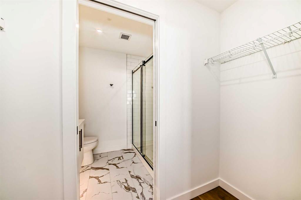 The primary suite includes a private ensuite and ample closet space while the second bedroom is ideal for guests, a home office, or added flexibility. Both bathrooms are finished with sleek, modern details that elevate the overall look and feel of the home.