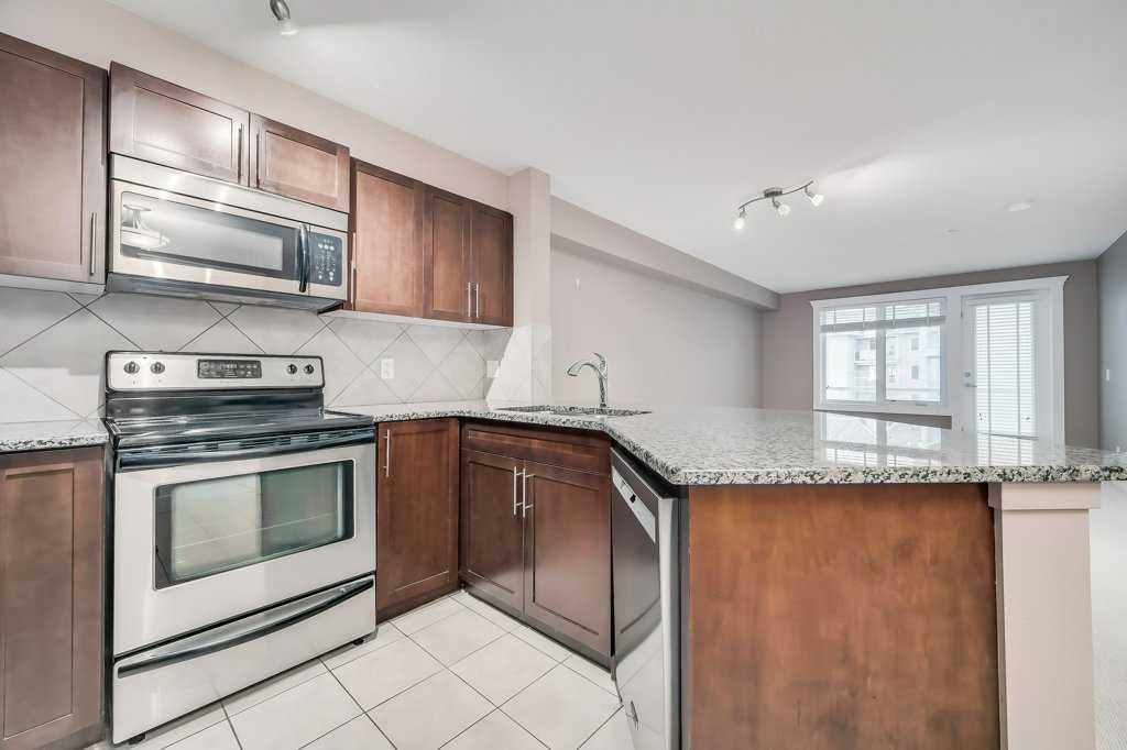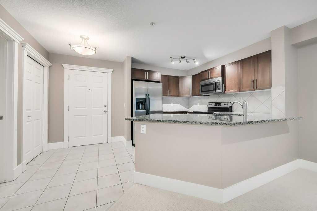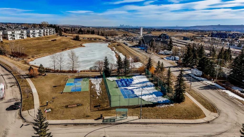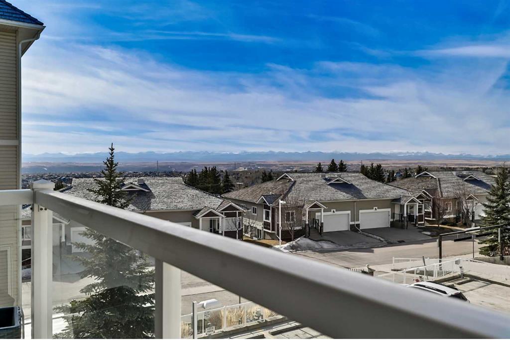 Welcome to this 3rd-floor condo in the desirable community of Rocky Ridge with unobstructed west-facing views of the Rocky Mountains. This well-maintained 1-bedroom plus den unit features a functional open-concept layout, ideal for first-time buyers, downsizers, or investors. The pet-friendly complex offers secure underground resident parking along with ample visitor parking. The kitchen is finished with granite countertops, upgraded cabinetry, stainless steel appliances—including a new dishwasher, sink, and faucet, opening into a spacious living and dining area filled with natural light. Step onto the private balcony to enjoy stunning Rocky Mountain views and evening sunsets. The primary bedroom features a walk-through closet and a 4-piece ensuite with a new toilet, while the versatile den works well as a home office or additional storage. Added conveniences include in-suite laundry, an assigned underground parking stall, and a separate storage locker. Residents enjoy access to on-site amenities including a fitness centre and entertainment room, plus Rocky Ridge Ranch membership with year-round amenities such as a lake, splash park, skating, tennis courts, and basketball. Walking distance to the Tuscany LRT station with quick access to Crowchild Trail, Stoney Trail, shopping, schools, and the YMCA. Move-in ready and easy to show.