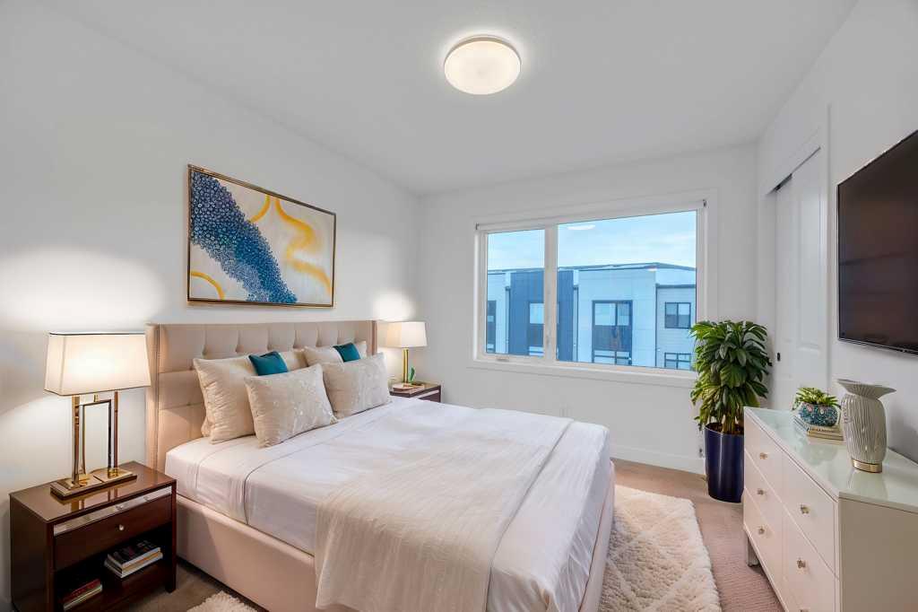 ?Welcome to Unit 306 a rare find featuring 4 bedrooms, 3.5 bathrooms, with Low condo fee at SouthTowns in East Hills Crossing, nestled in the highly accessible community of Belvedere. This stunning townhome offers breathtaking views of Downtown Calgary and the mountains from its expansive second-floor balcony. Boasting 4 spacious bedrooms, 3.5 bathrooms, and a single tendem-car garage to accomodate 2 cars, this home is designed for comfort and convenience. At the entrance on the lower level, there is a full bedroom and a bathroom, perfect to be used as a "Guest bedroom", an office area for parents who like to stay at the main floor. Main level offers a large kitchen, a huge living area with a lot of windows, a separate dining area, a 2pc bathroom and a balcony for your summer barbeque parties. Upstairs, the primary bedroom offers a 4-piece ensuite and a walk-in closet. Two additional bedrooms, a 4-piece bathroom, a laundry area, and a large linen closet complete the upper level. Situated close to a variety of amenities, this home is just steps from a playground, basketball court, restaurants, Costco, Walmart, and numerous other retailers.