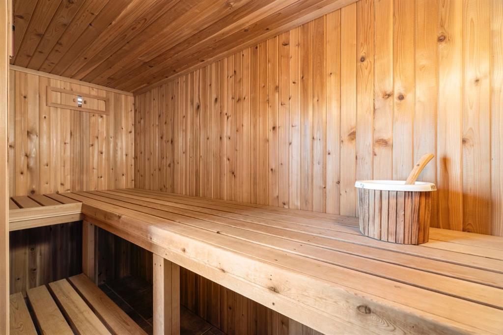 The third-floor primary wing is a sanctuary of alpine luxury: vaulted ceilings, oversized windows, personal seating area, spacious kitchenette, private balcony overlooking lush greenery, dual walk -in closets and your own spa; five-piece bath with jetted tub, cedar lined sauna, with water access, dual vanities, separate glass door shower with frosted windows.