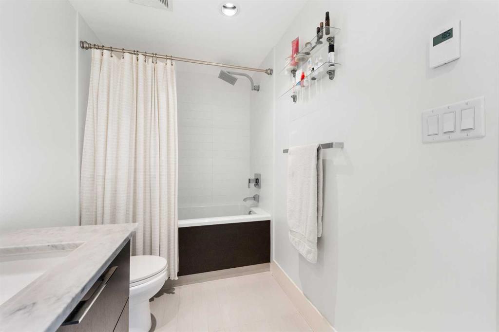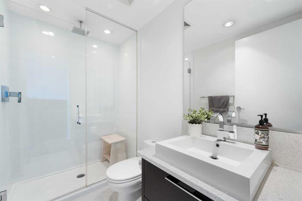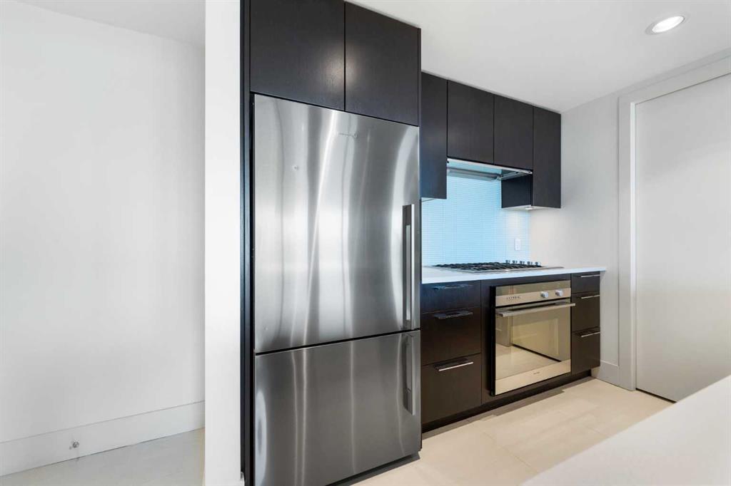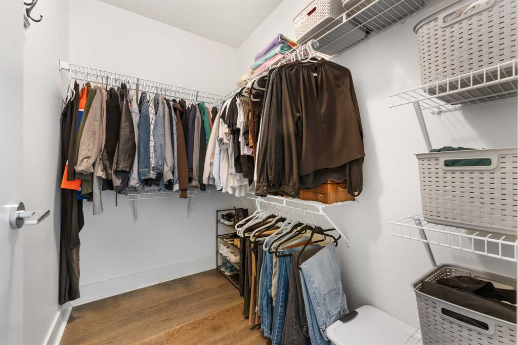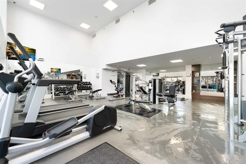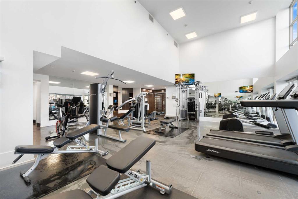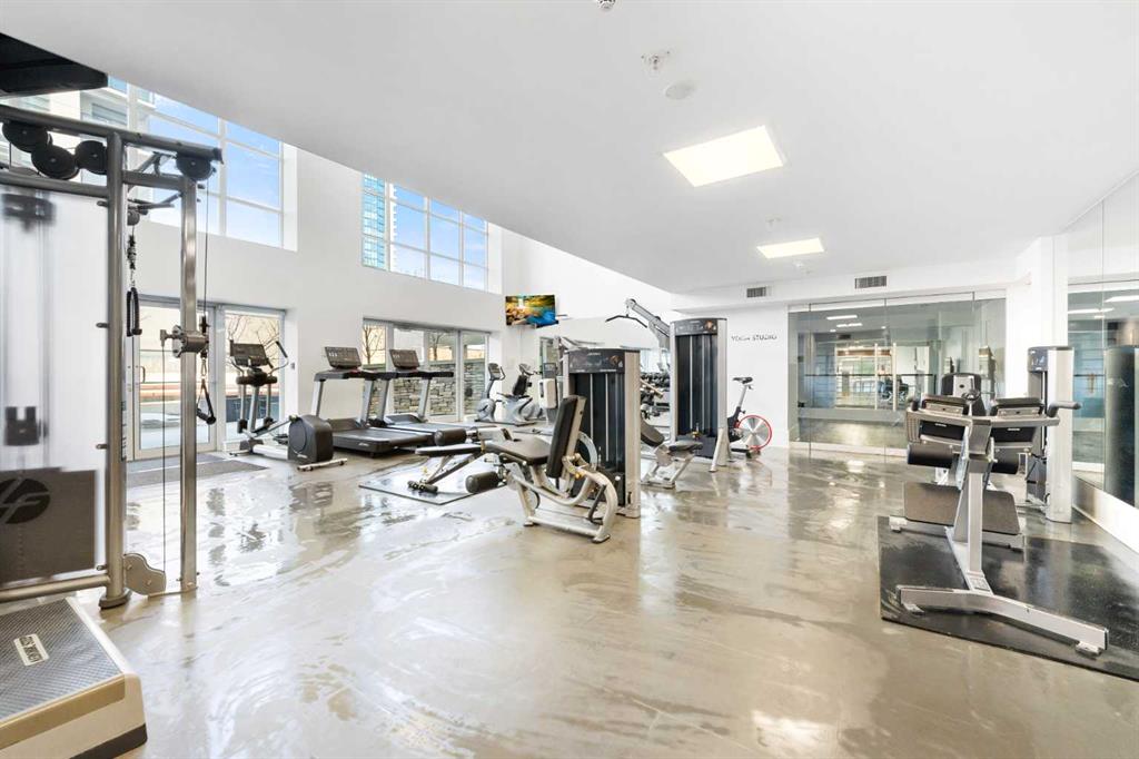 Floor-to-ceiling windows and hardwood flooring throughout enhance the natural light and elevate the space, while in-suite laundry and air conditioning add everyday comfort. Step outside through double sliding doors to your private patio — the ideal place to unwind and enjoy Calgary’s most dramatic sunsets.
