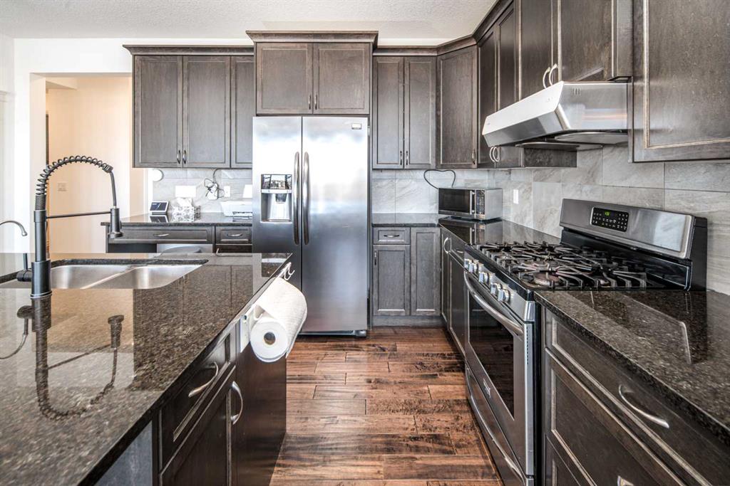 LEGAL SECONDARY SUITE | MORTGAGE HELPER | WALKOUT BASEMENT | BACKING ONTO POND & GREEN SPACE. Enjoy one of the best pond and green space views in the area from this exceptional, move-in-ready home. Backing directly onto a serene pond and green space, this property offers breathtaking views that can be enjoyed from the oversized deck, perfect for summer entertaining. The main floor features a bright, open-concept layout with oversized north-facing windows that flood the home with natural light throughout the day. The chef-inspired kitchen boasts beautiful granite countertops, ample cabinetry, and generous workspace, seamlessly connecting to a cozy living room—ideal for everyday living. Just off the kitchen, an oversized breakfast nook overlooks the pond, creating the perfect spot to start your day. Upstairs, you’ll find two spacious bedrooms and a luxurious primary suite. The primary bedroom easily accommodates a king-size bed and features a stunning ensuite with an oversized soaker tub, dual sinks, and a thoughtfully designed walk-in closet to showcase your wardrobe. The additional bedrooms are oversized and include built-in closets with ample storage. A bonus room completes the upper level, offering an excellent space for family movie nights, games, or relaxing together. The walkout basement is truly one of a kind, featuring tall ceilings and a legal secondary suite—an excellent mortgage helper. The high-quality secondary kitchen offers extensive counter space and storage, while the large bedroom with extra-large windows and a 3-piece bathroom with a walk-in shower provides comfort for guests or tenants. The spacious living area is filled with natural light from large windows and a glass door that leads directly to the walkout backyard and adjacent green space—perfect for kids to play. This home is designed to balance functionality and elegance throughout. Additional highlights include a professionally landscaped and fully fenced yard, concrete walking path way around the whole house, and an oversized driveway. Radon system, A new school and park currently under construction across the street further enhance the long-term value of this location. This exceptional property must be seen to be fully appreciated.