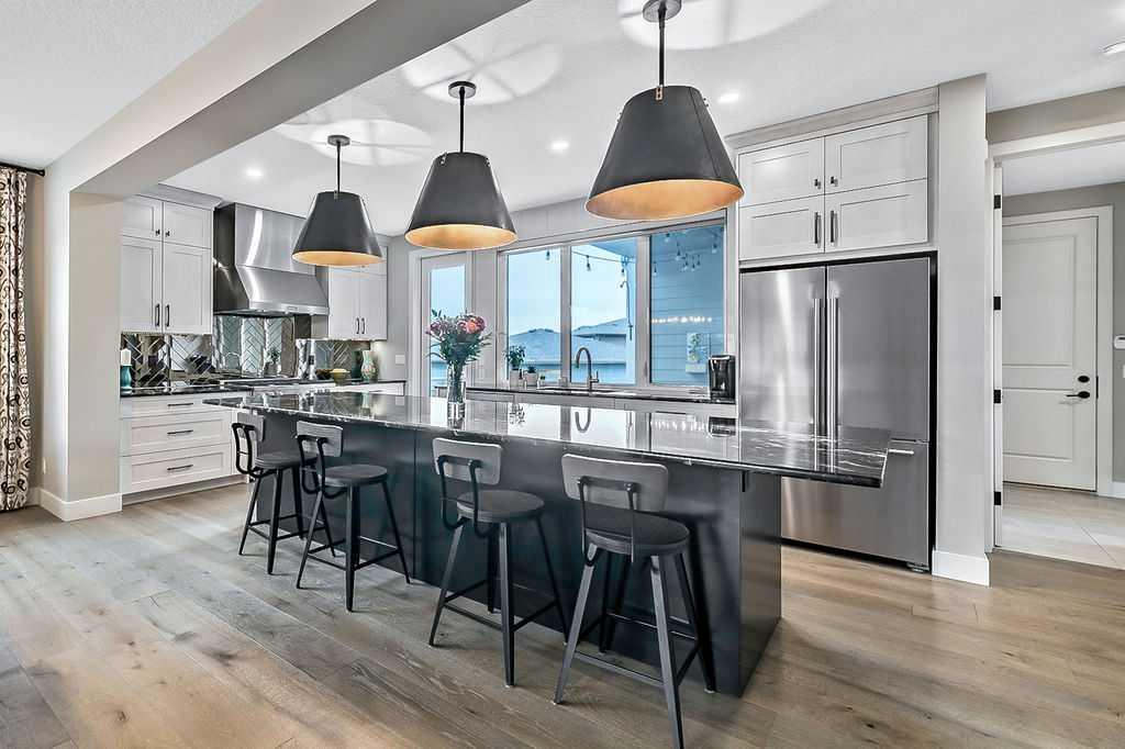 Welcome to this stunning, METICULOUSLY CARED FOR home in the one of a kind Mickelson Golf Course and lake community of Harmony. Situated steps from a greenspace, this home has great curb appeal and captures your attention with a full front verandah that invites you to sit and enjoy the serene surroundings. Step inside to a bright and sunny open floor plan that creates an amazing first impression. The breathtaking kitchen features high end appliances including a heavy duty Miele hood fan and a Miele 6-burner gas stove with gas oven. The trendy white cabinetry, a huge island and granite countertops add a touch of elegance to this functional space, perfect for any home chef. Throughout the main floor, beautiful hardwood floors lead you to a cozy den, ideal for a home office or quiet retreat. The spacious living room is a true highlight, showcasing a fireplace feature wall that serves as the perfect centerpiece for gatherings. Upstairs, you'll find a great sized bonus room, a convenient laundry room and three great sized bedrooms. The extra large primary bedroom is a luxurious escape, complete with a spa inspired ensuite and a generous walk in closet. The fully developed basement offers even more living space and includes a fully SELF CONTAINED FOURTH BEDROOM WITH ITS OWN LAUNDRY, walk in closet and 4 piece ensuite; also a 2 piece bathroom and huge games/family room, perfect for entertaining or relaxing with loved ones. With nearly 2,800 square feet of thoughtfully designed space, this FOUR BEDRROM FAMILY HOME features a floor plan that effortlessly accommodates a variety of lifestyles. Move in and enjoy the incredible amenities Harmony has to offer including two private lakes, miles of beautiful pathways, parks, playgrounds, the future Village Centre, a WORLD CLASS MICKELSON GOLF COURSE and quick easy access to the mountains.