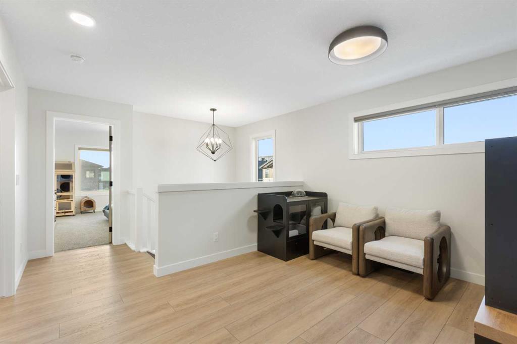 The first thing you notice isn't just the new-home scent; it’s the sheer volume of light. Because this 2024 Cardel build sits on a prime corner lot with massive south-facing windows, the interior doesn't just catch the sun—it amplifies it. Stepping inside, the vibe is unmistakably sleek and modern, stripping away visual clutter to focus on clean lines and open space. Unlike standard floorplans that close off the lower levels with a door, the owner opted for an open, finished stairwell that descends gracefully, maintaining a visual connection that makes the 2,131 square feet feel even more expansive.